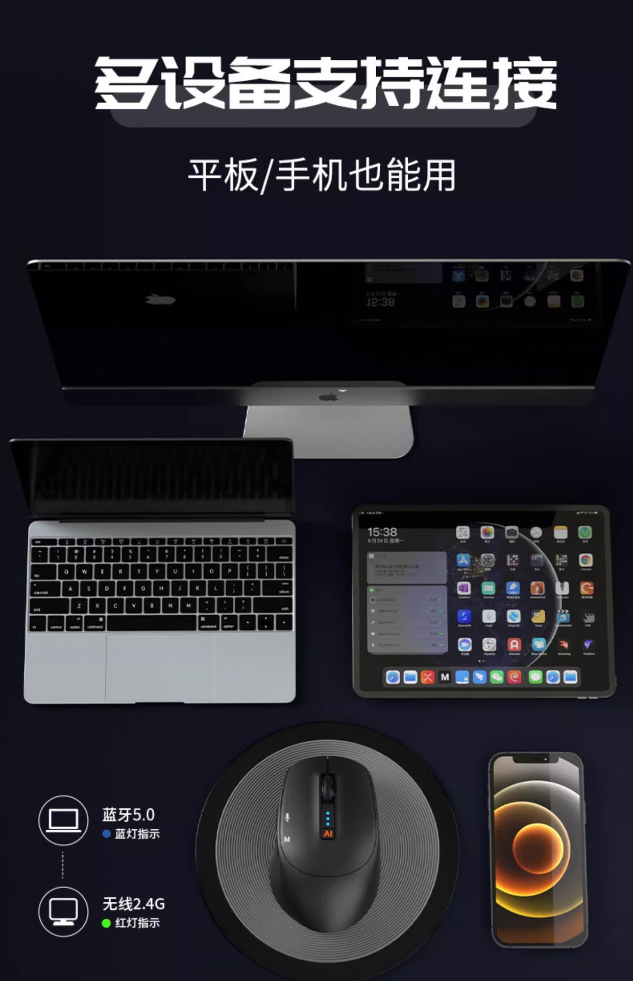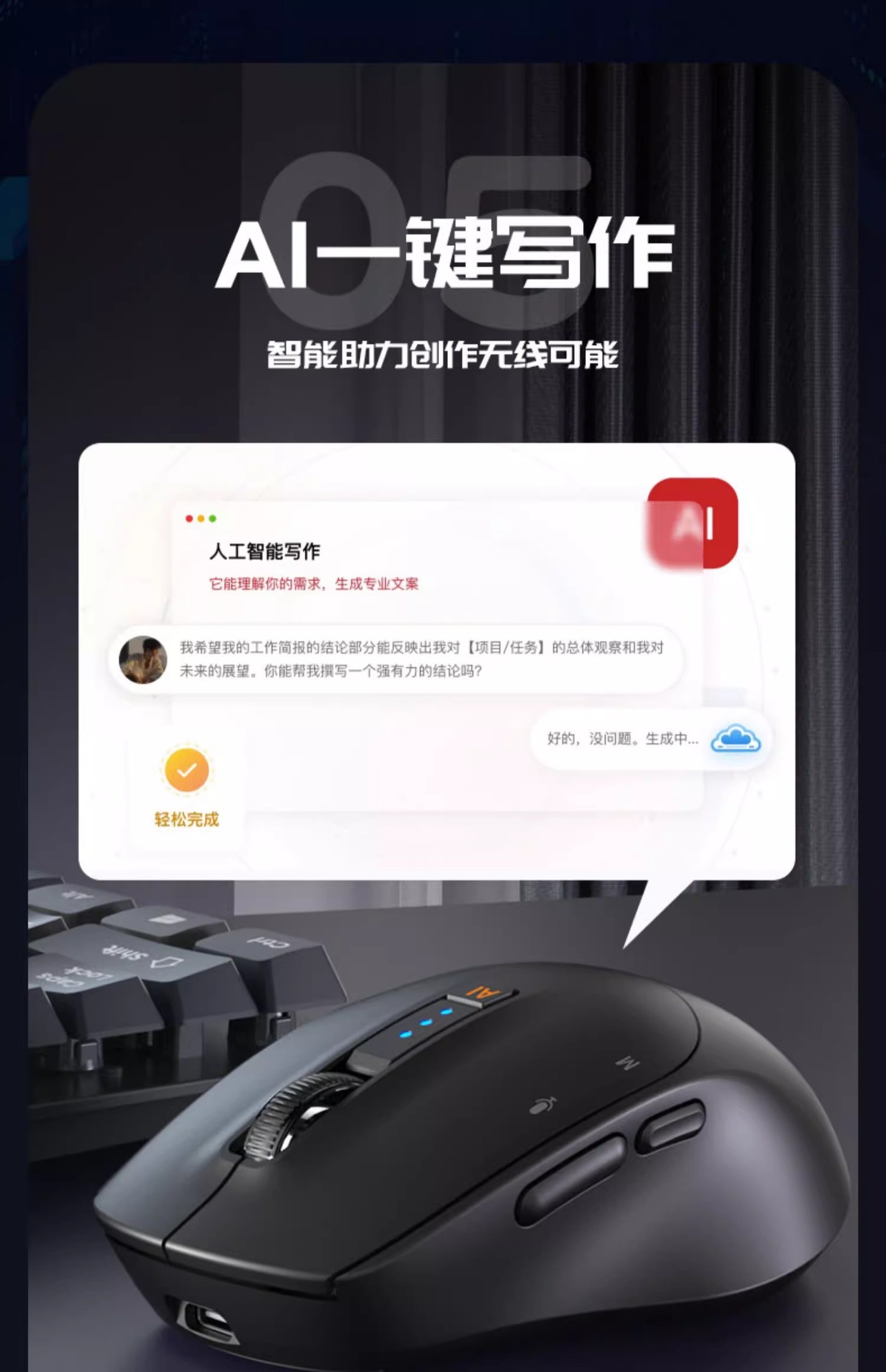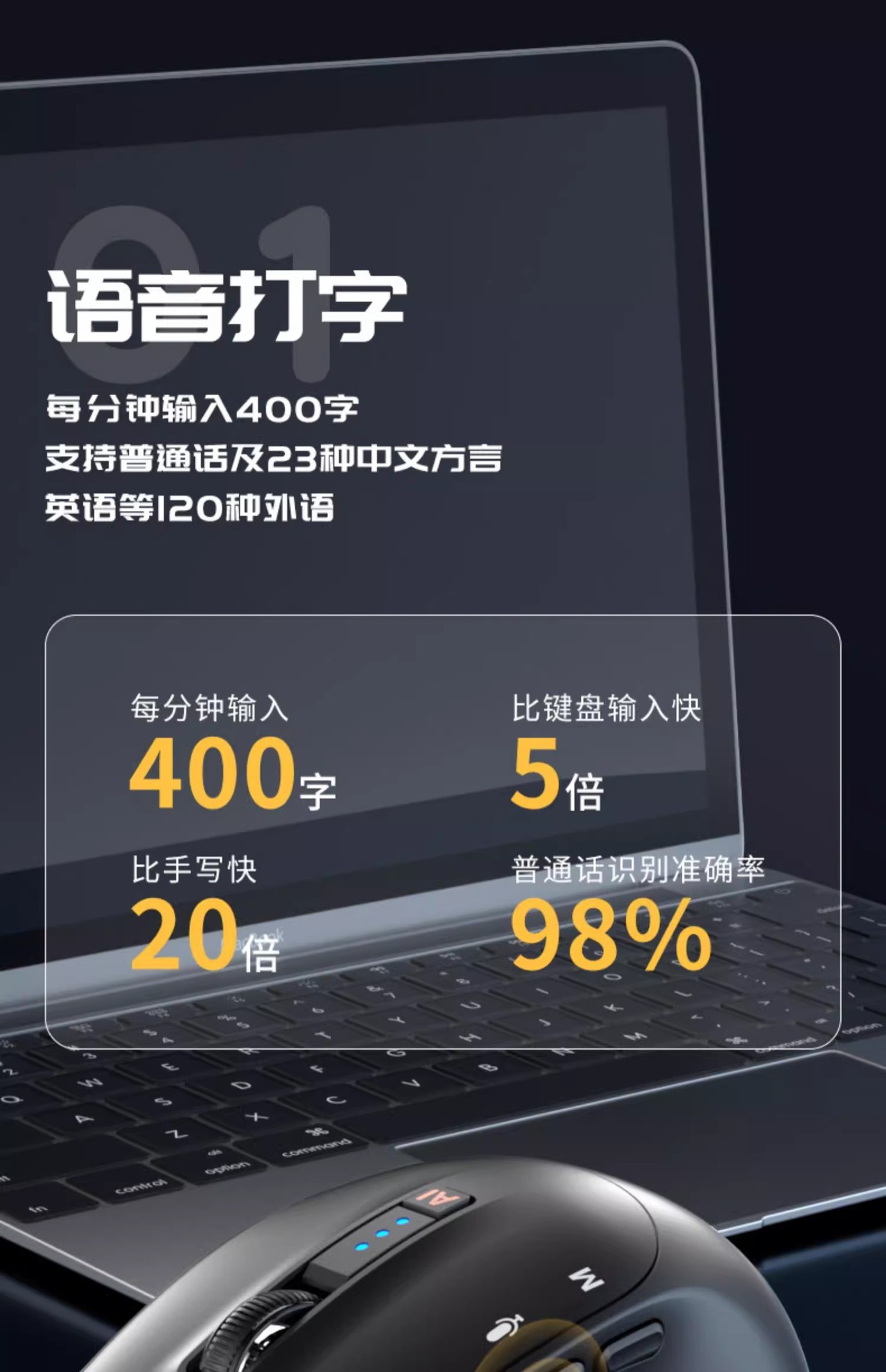 AI 마우스 스마트 쓰기 음성 타이핑 번역 Bluetooth DeepSeek Tencent Yuanbao KIMIPPT 라이트 오피스