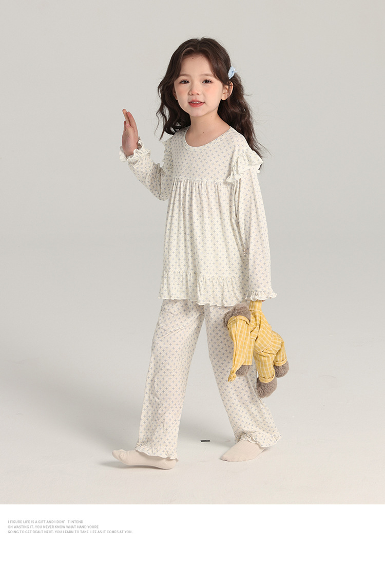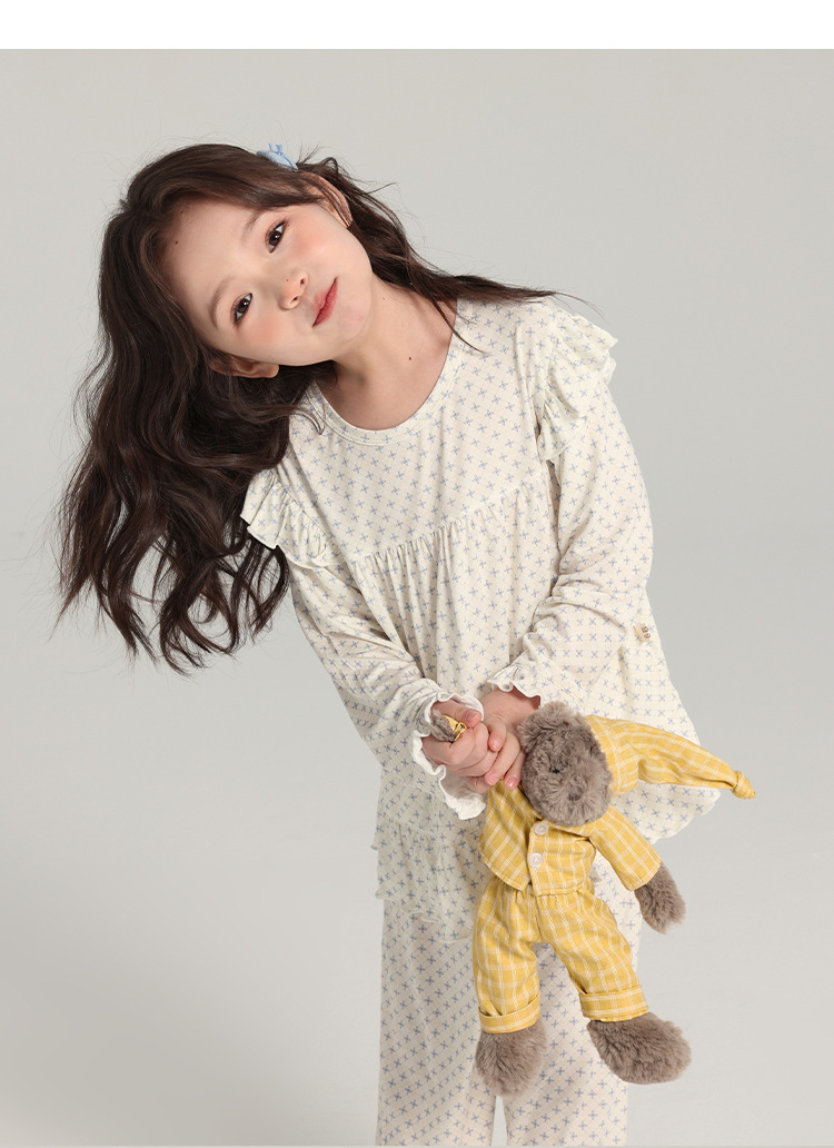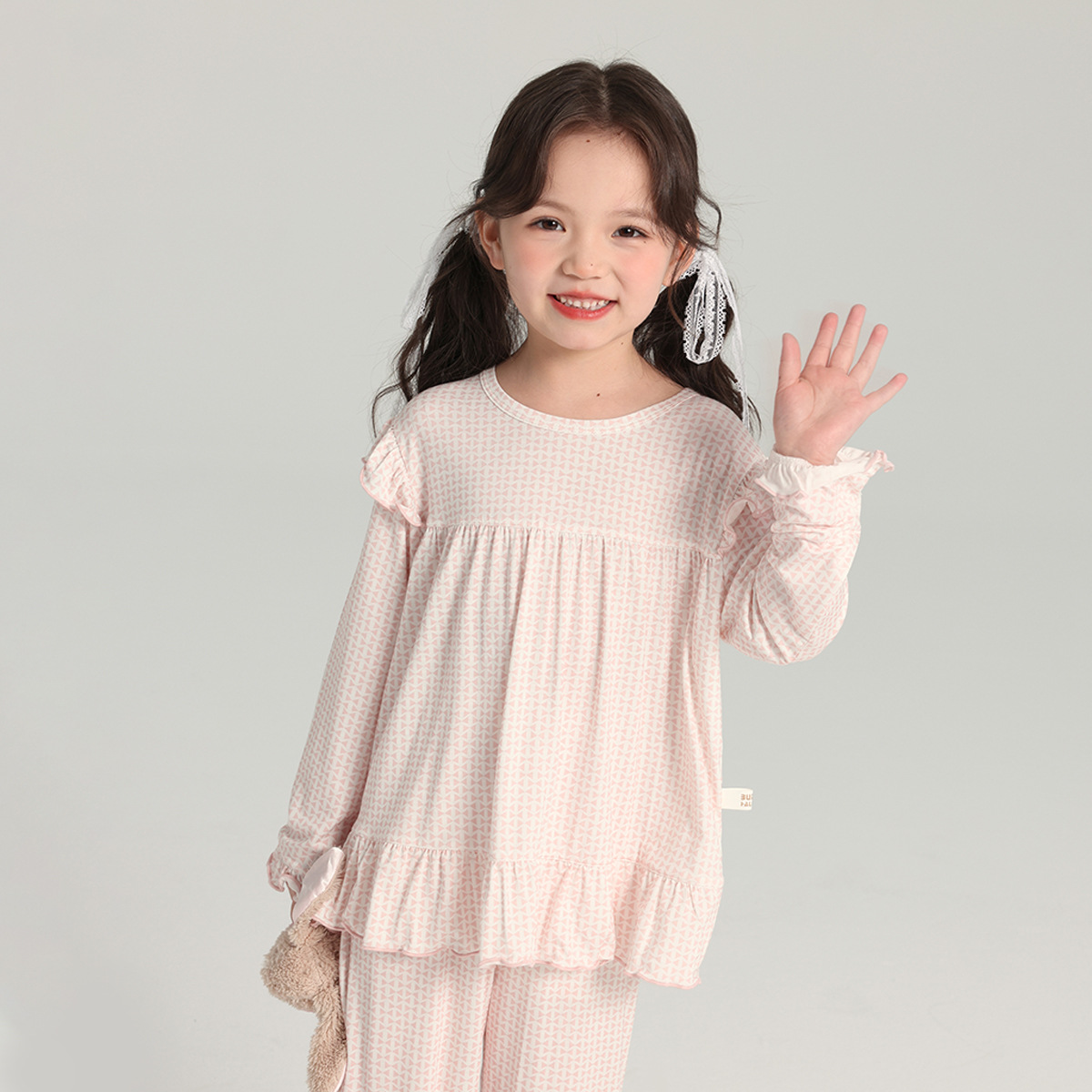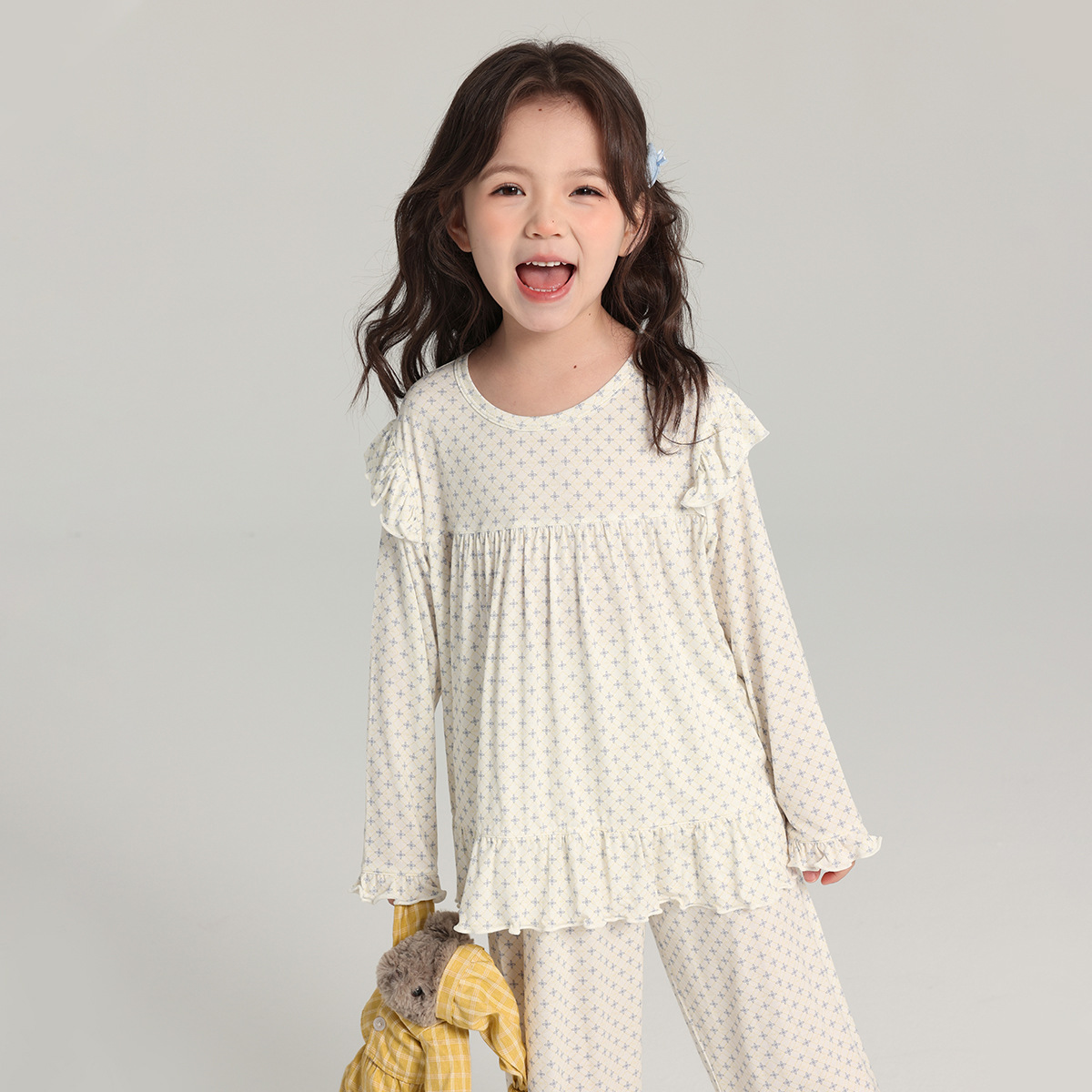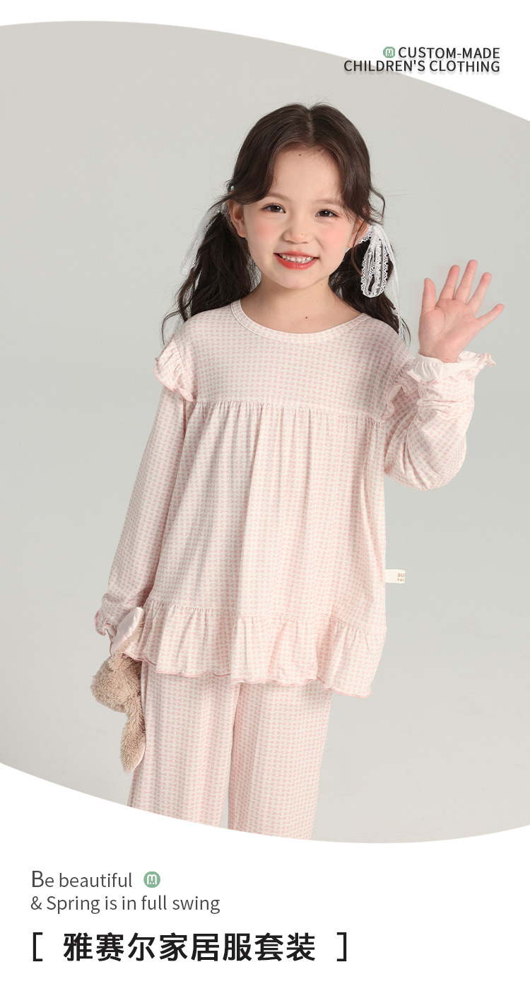 푸딩 하루 2025 봄 새 여아 홈 옷 세트 봄 친절한 편안한 야세르 파자마 세트 봄과 가을