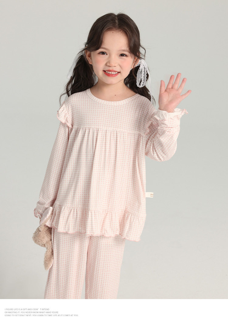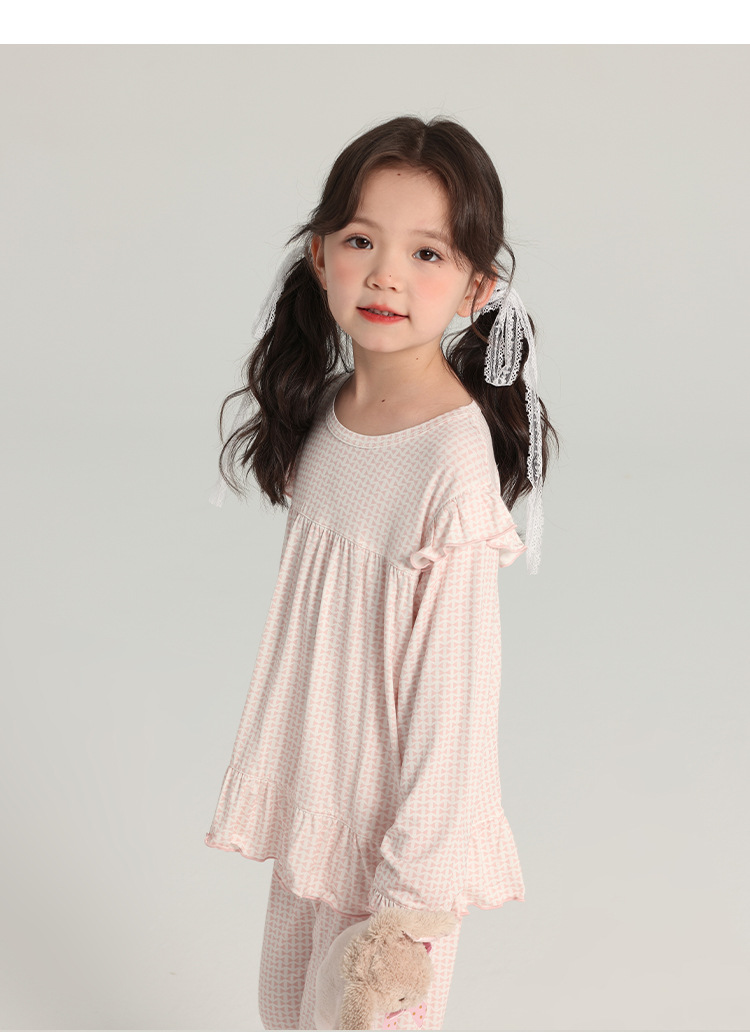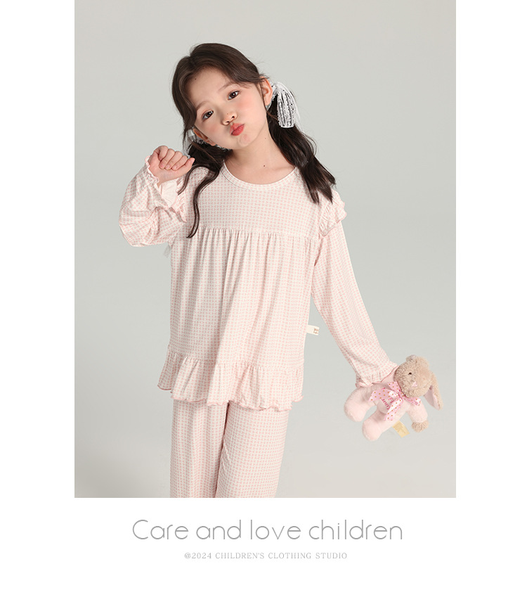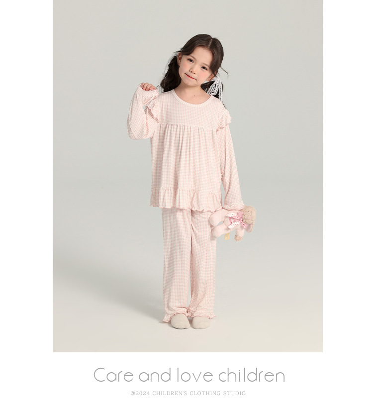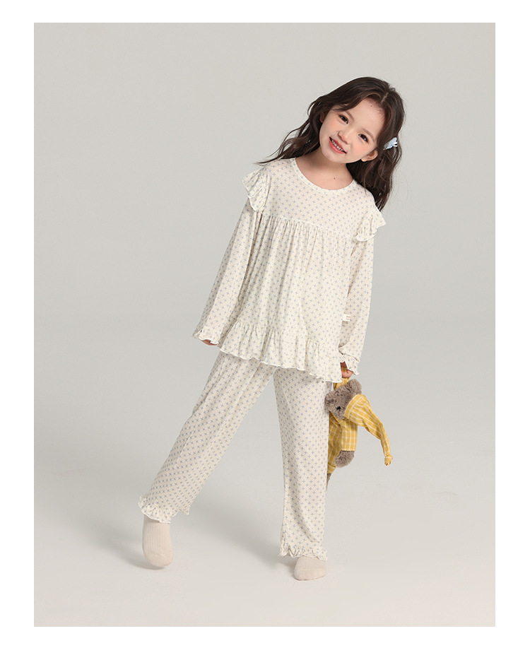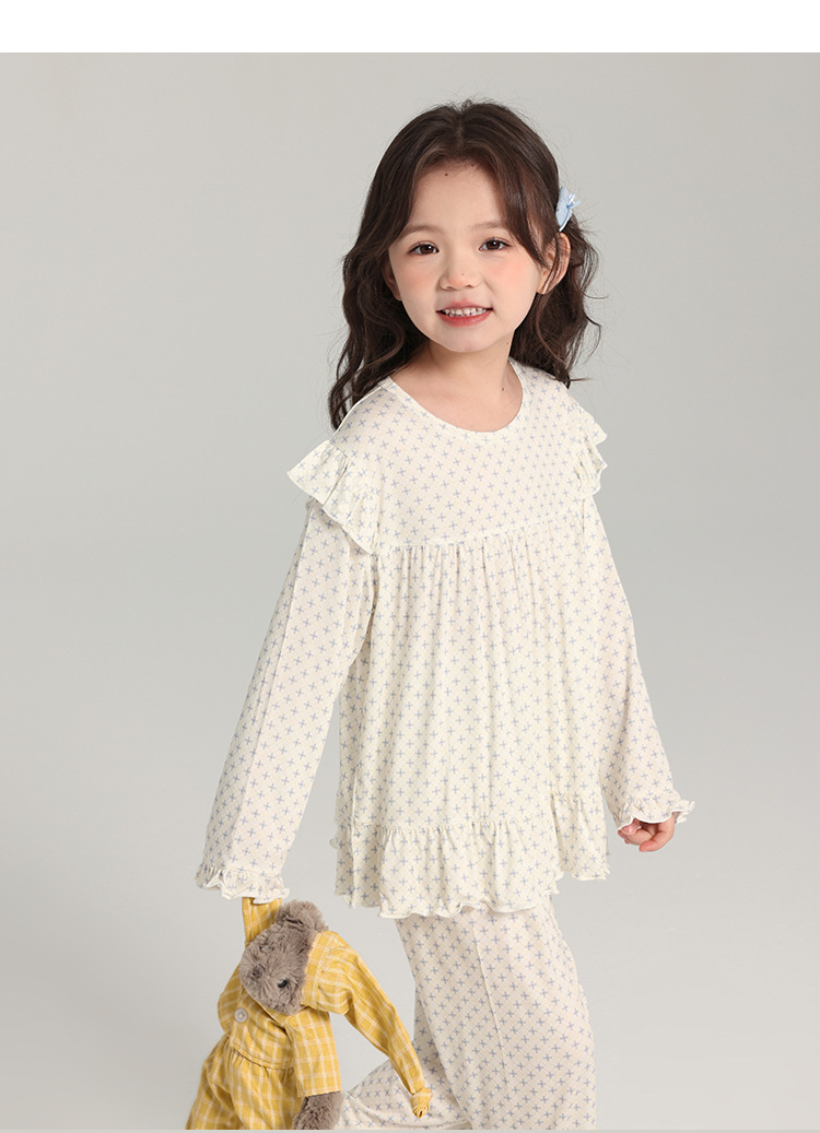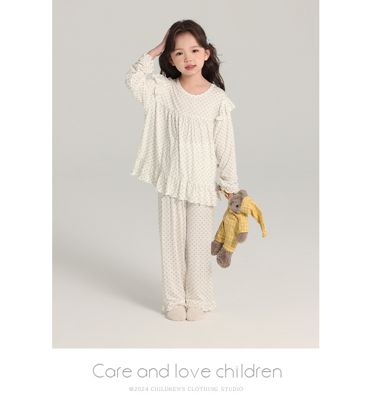 푸딩 하루 2025 봄 새 여아 홈 옷 세트 봄 친절한 편안한 야세르 파자마 세트 봄과 가을