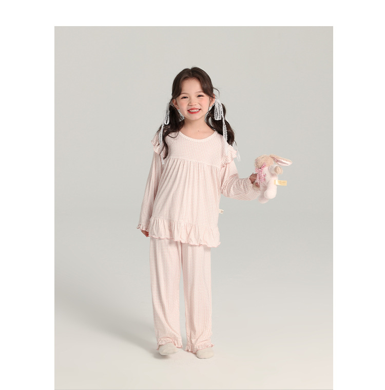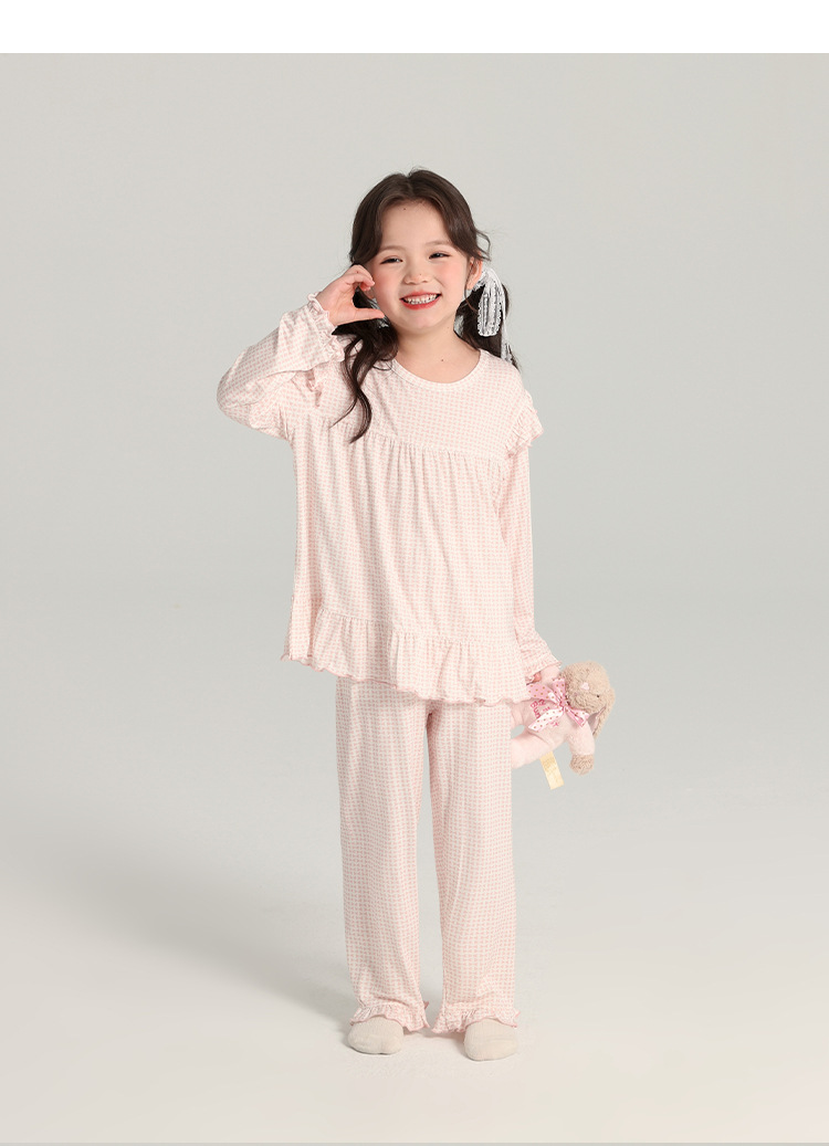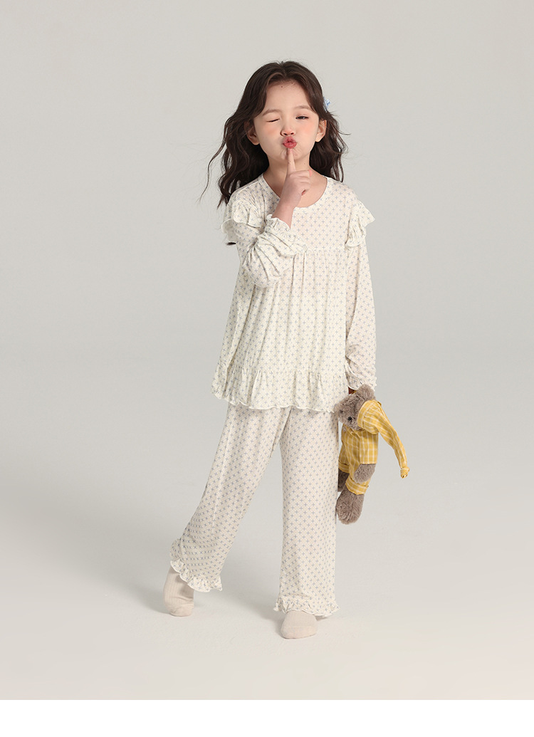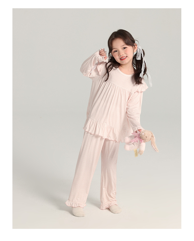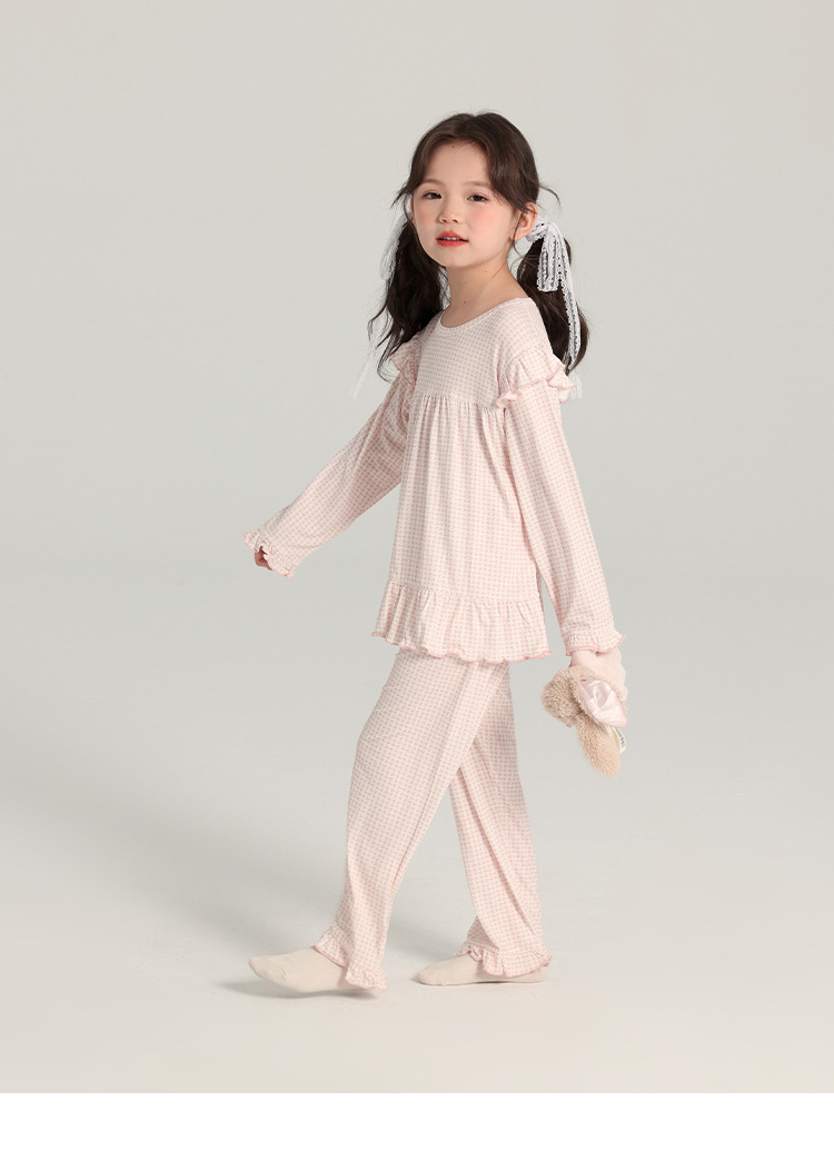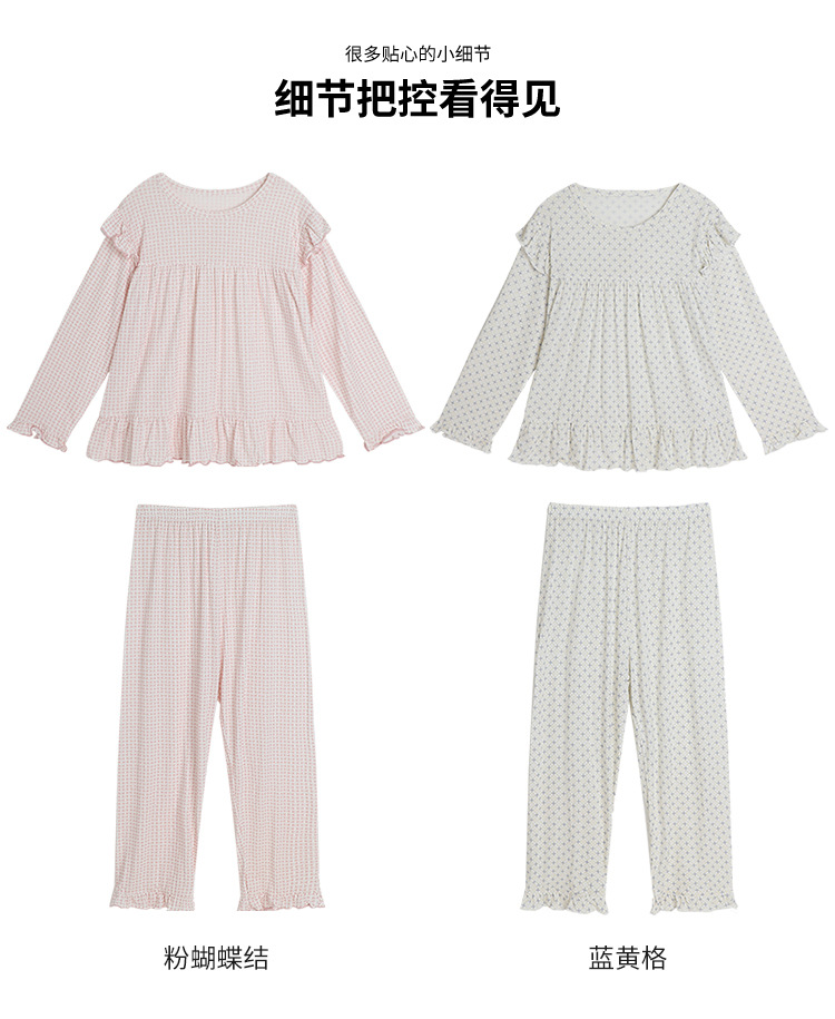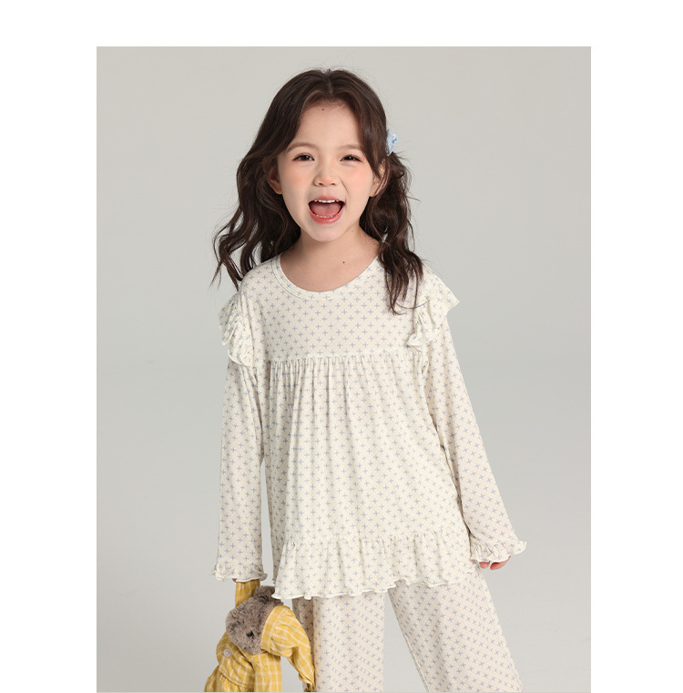 푸딩 하루 2025 봄 새 여아 홈 옷 세트 봄 친절한 편안한 야세르 파자마 세트 봄과 가을