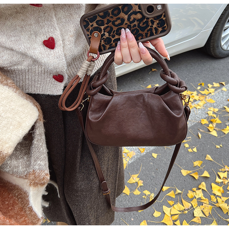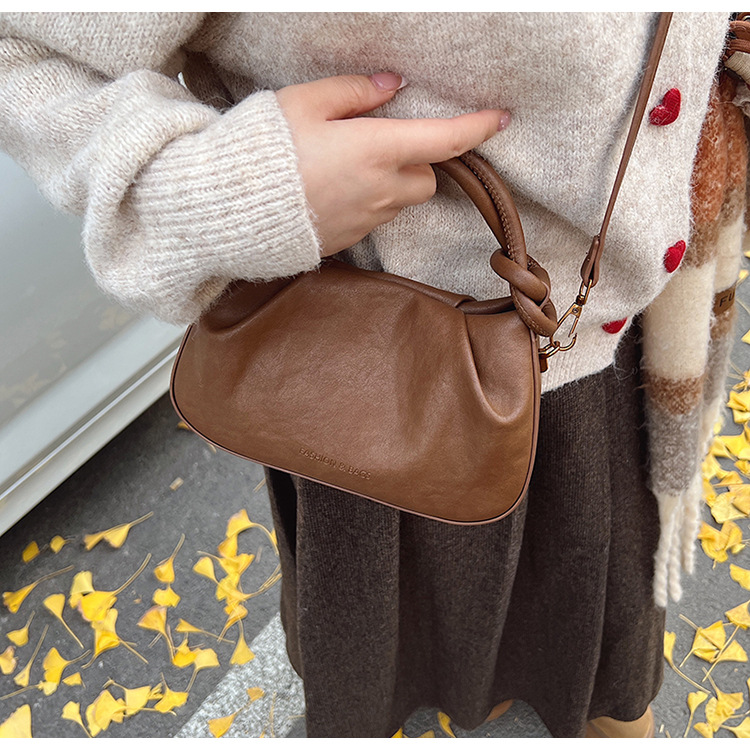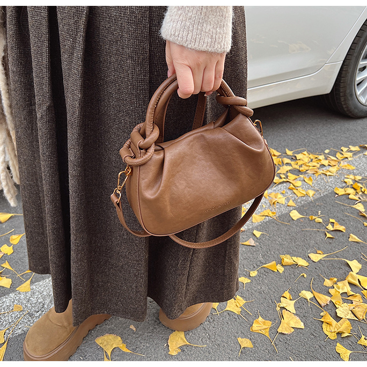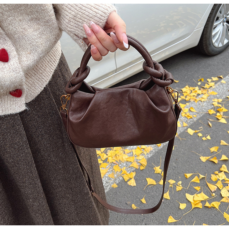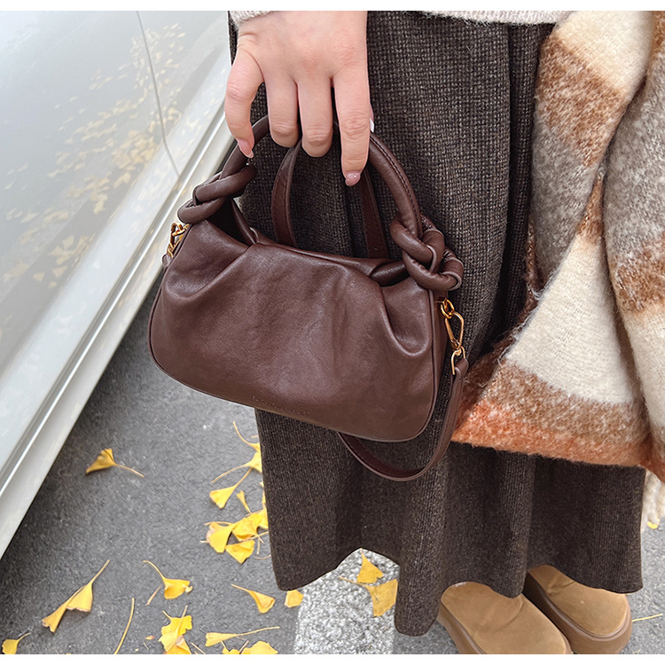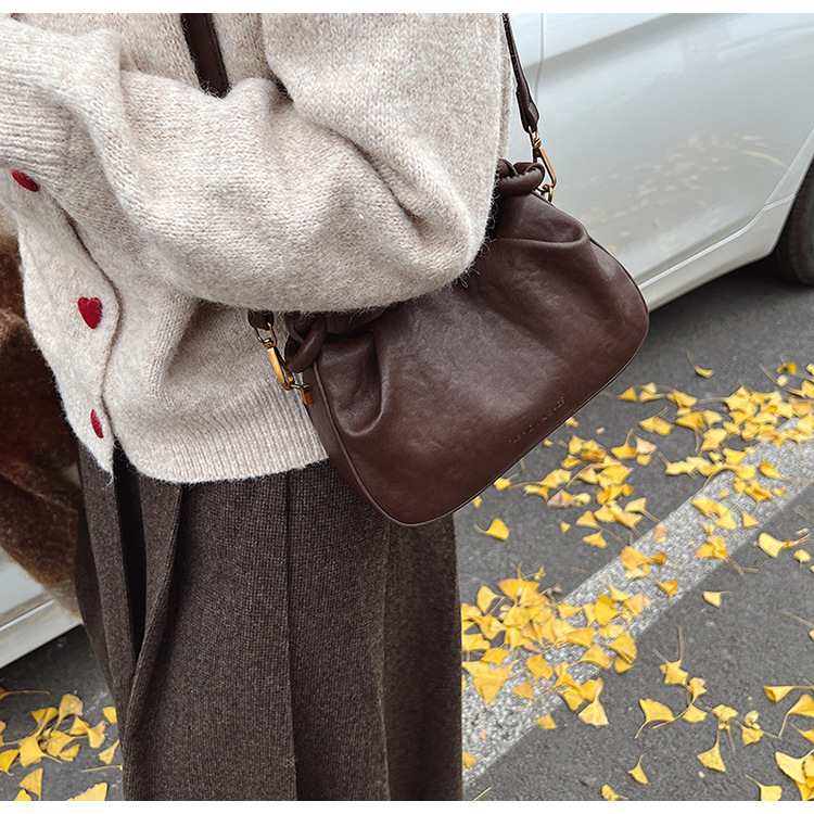 여성용 가방 하이 엔드 텍스처 PU 솔리드 컬러 작은 크라우드 소싱 백 빈티지 체인 크로스 바디 백 주름 휴대용 클라우드 백 만두 백스토어 가기