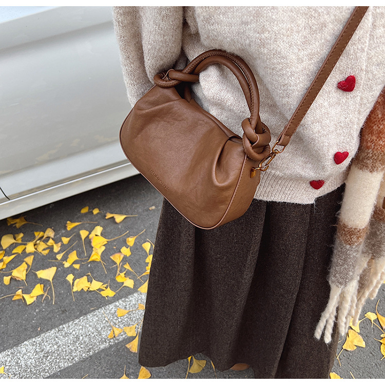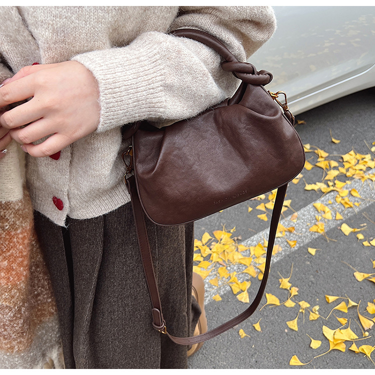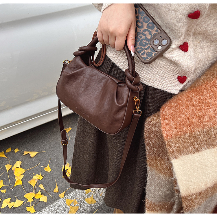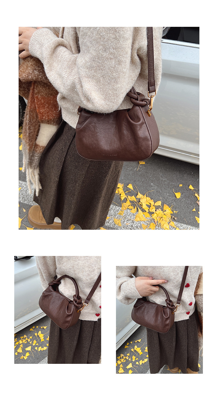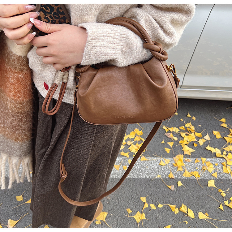 여성용 가방 하이 엔드 텍스처 PU 솔리드 컬러 작은 크라우드 소싱 백 빈티지 체인 크로스 바디 백 주름 휴대용 클라우드 백 만두 백스토어 가기