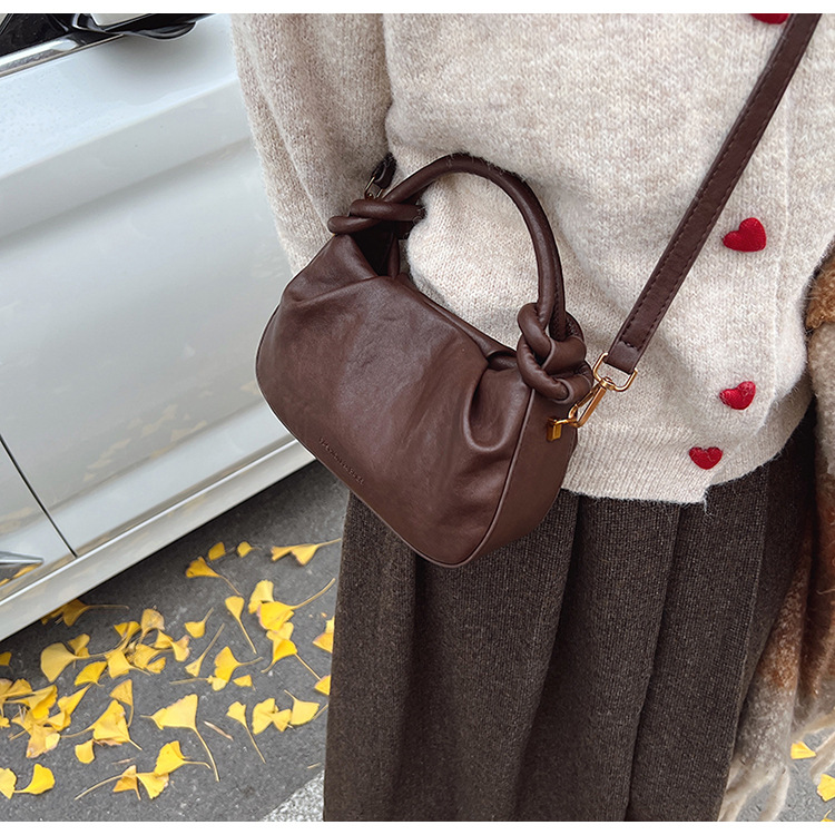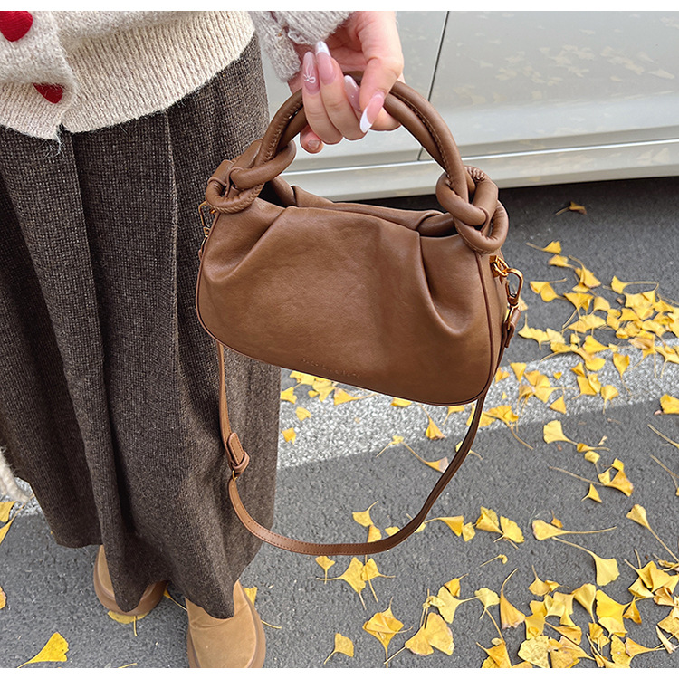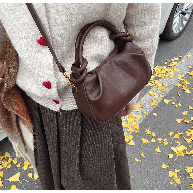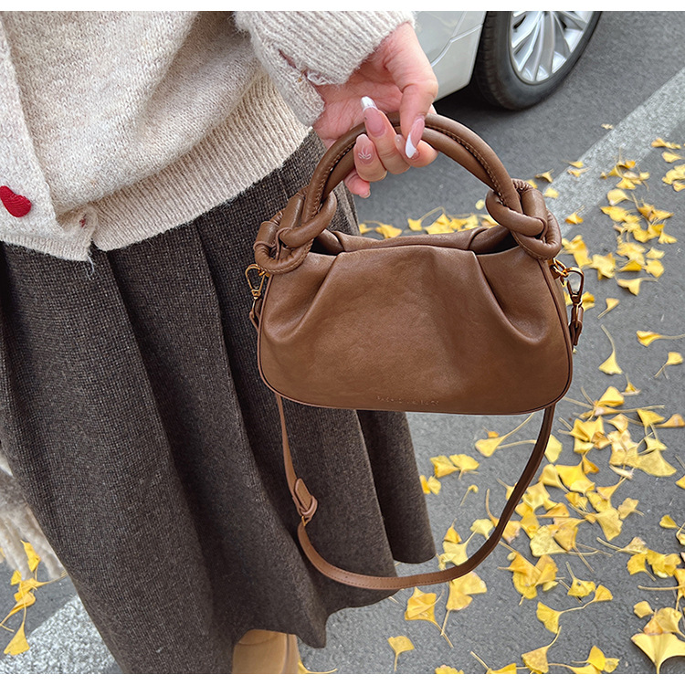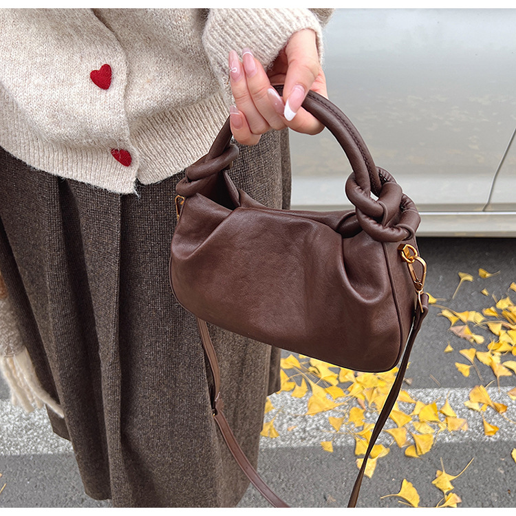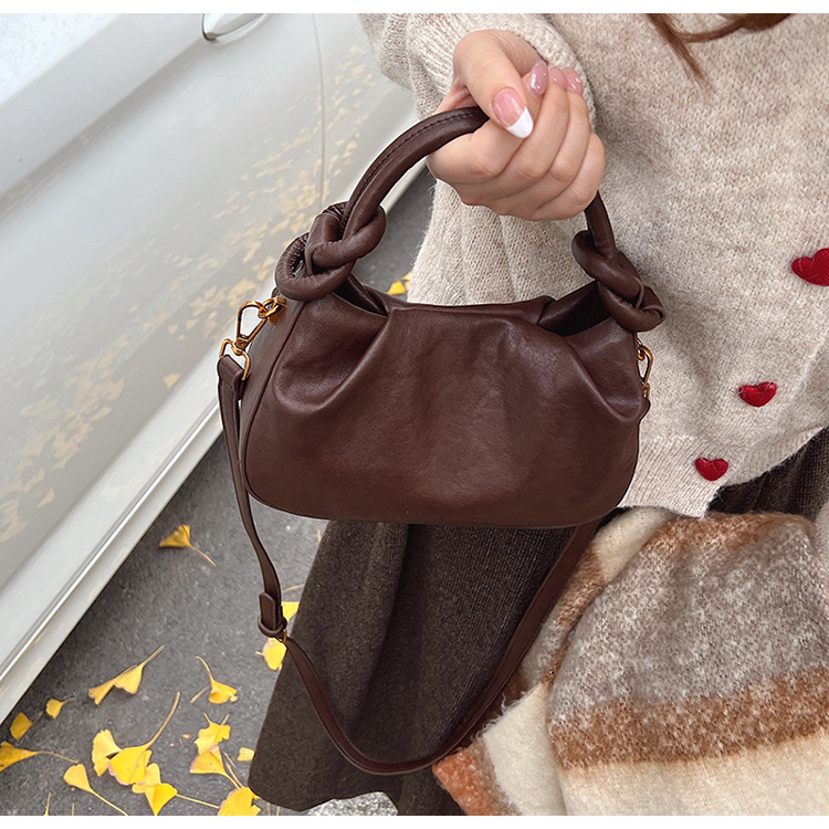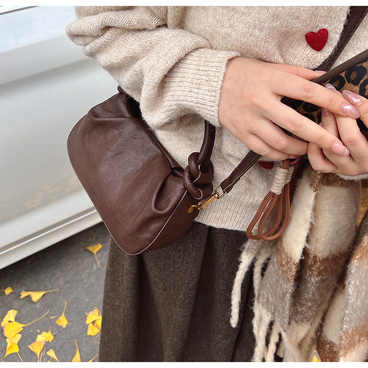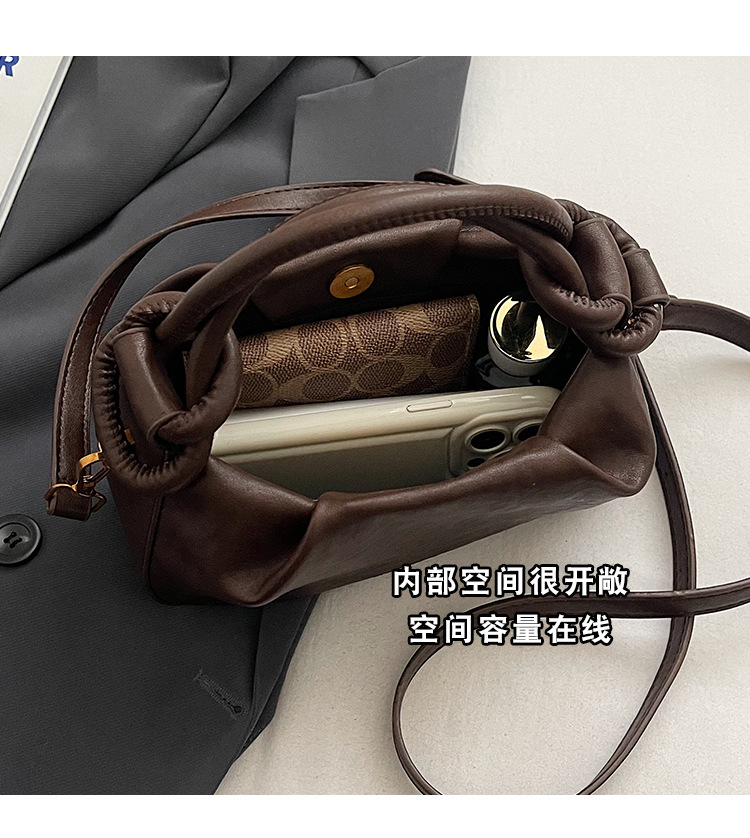 여성용 가방 하이 엔드 텍스처 PU 솔리드 컬러 작은 크라우드 소싱 백 빈티지 체인 크로스 바디 백 주름 휴대용 클라우드 백 만두 백