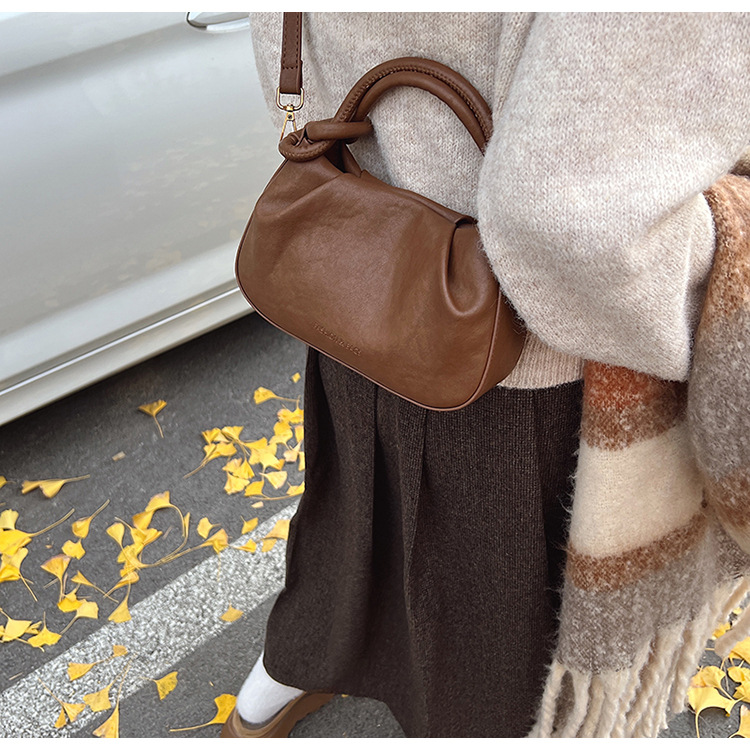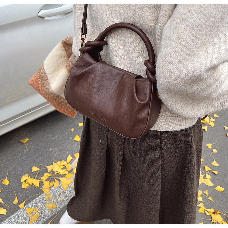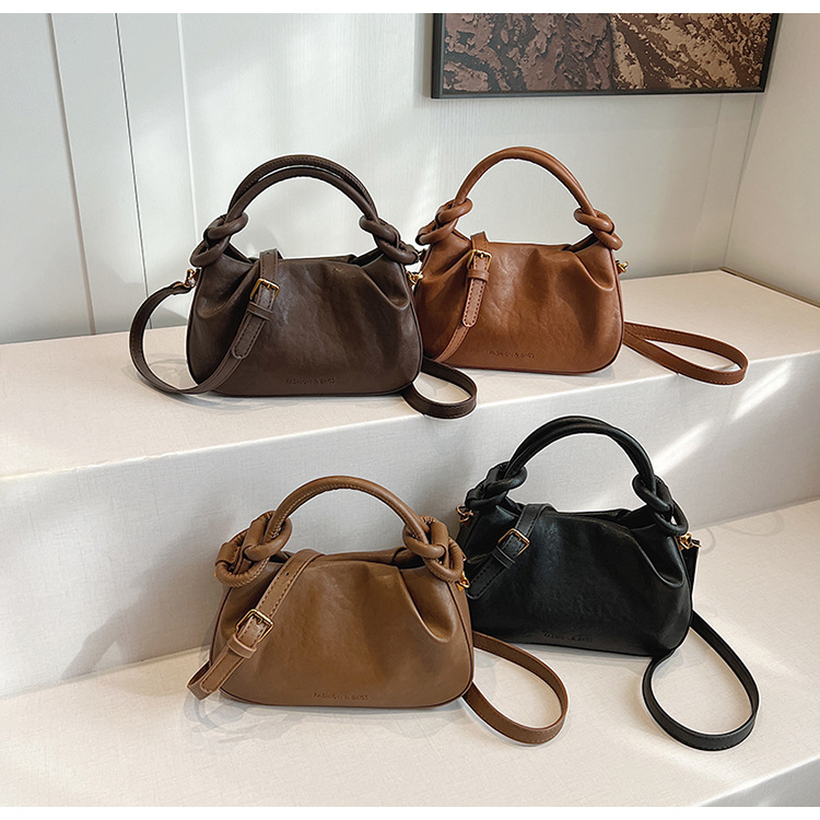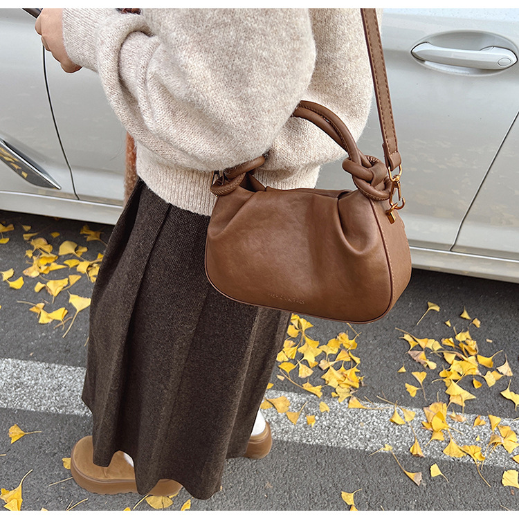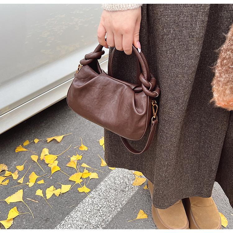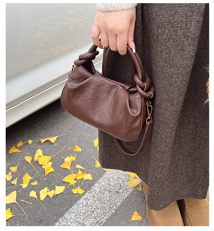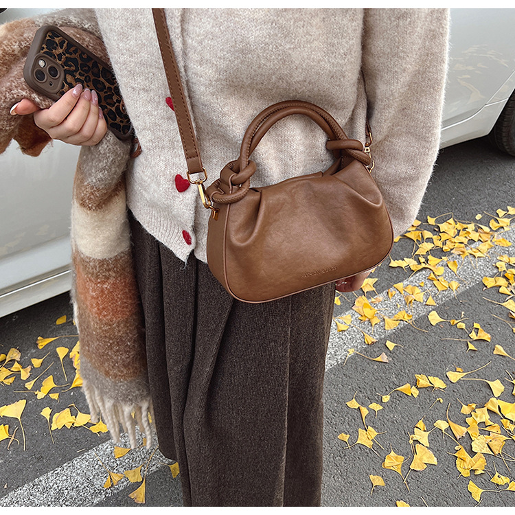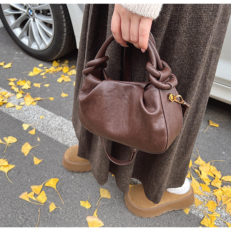 여성용 가방 하이 엔드 텍스처 PU 솔리드 컬러 작은 크라우드 소싱 백 빈티지 체인 크로스 바디 백 주름 휴대용 클라우드 백 만두 백