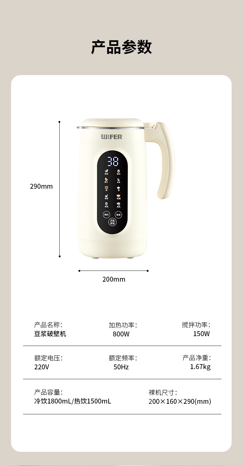 • 베이지 두유기계 1800ml [316라이너] QHD-004Q