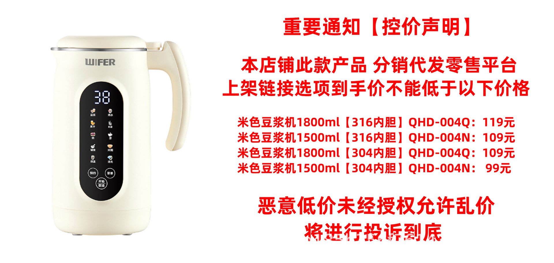 • 베이지 두유기계 1800ml [304라이너] QHD-004Q