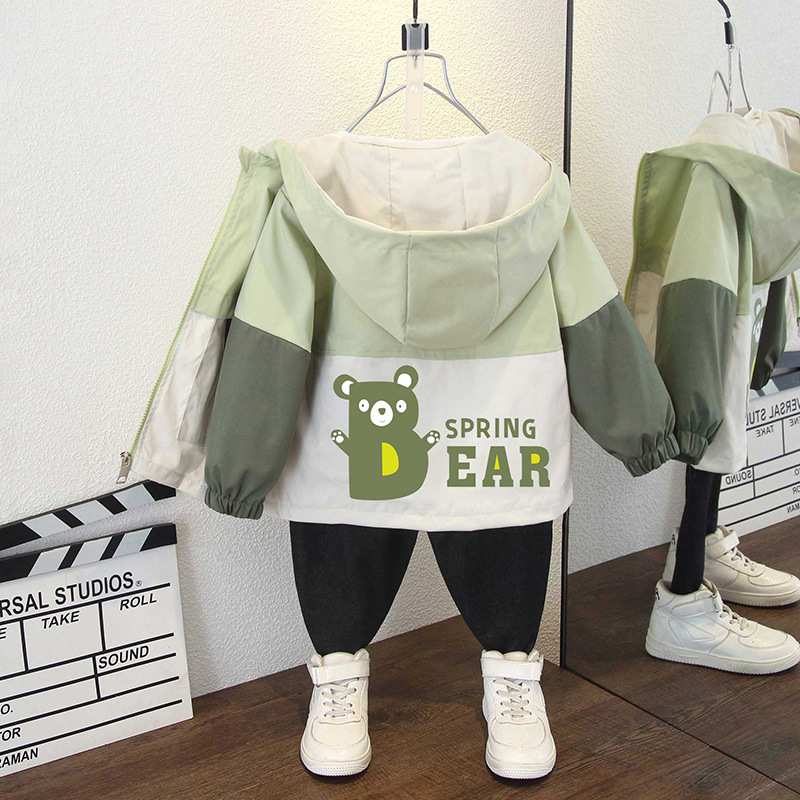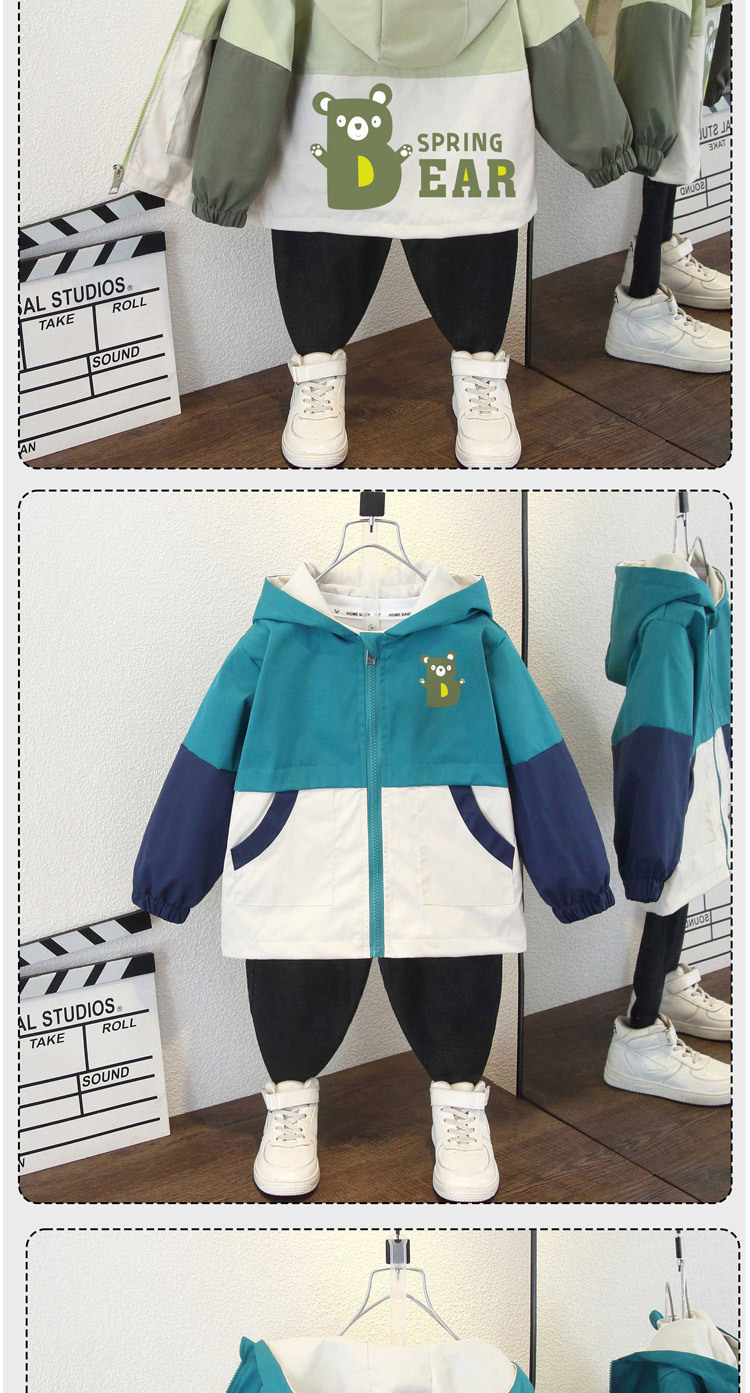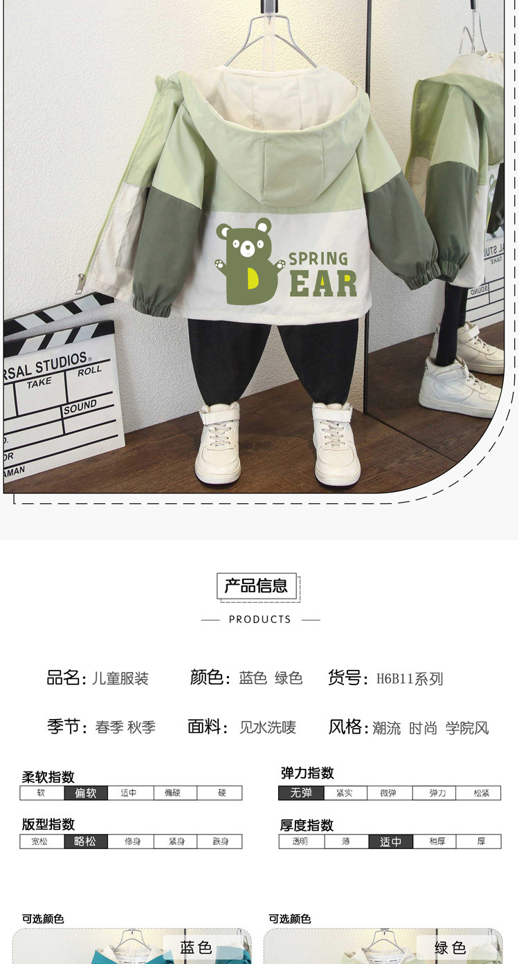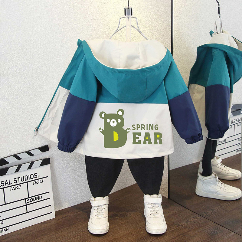 어린이 코트 봄과 가을 2025 새로운 소년의 얇은 봄 재킷 남자 아기의 후드 컬러 차단 재킷 탑스토어 가기