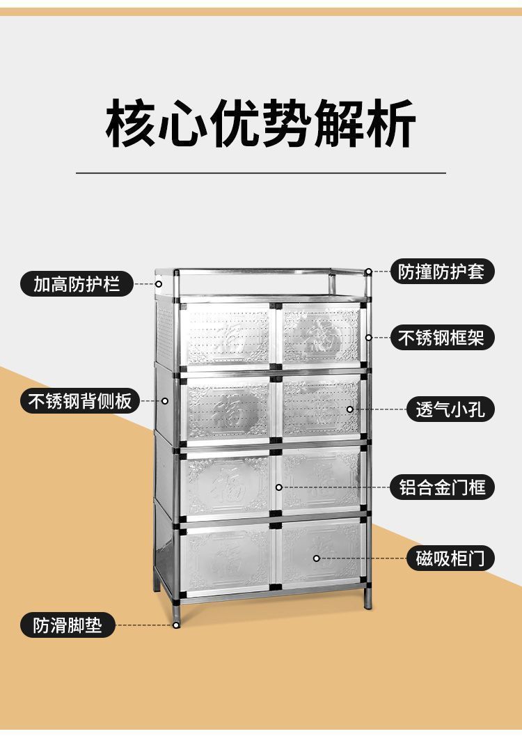 스테인레스 스틸 두꺼운 간단한 찬장 캐비닛 사이드 보드 차 캐비닛 저장 캐비닛 가정용 스토브 다기능 주방 캐비닛
