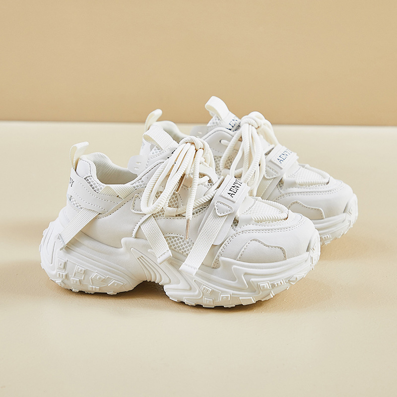 봄 2025 학생 화이트 토레 신발 여성 메쉬 통기성 틈새 캐주얼 싱글 레이어 신발 두꺼운 단독 증가 스포츠 트렌디 신발스토어 가기