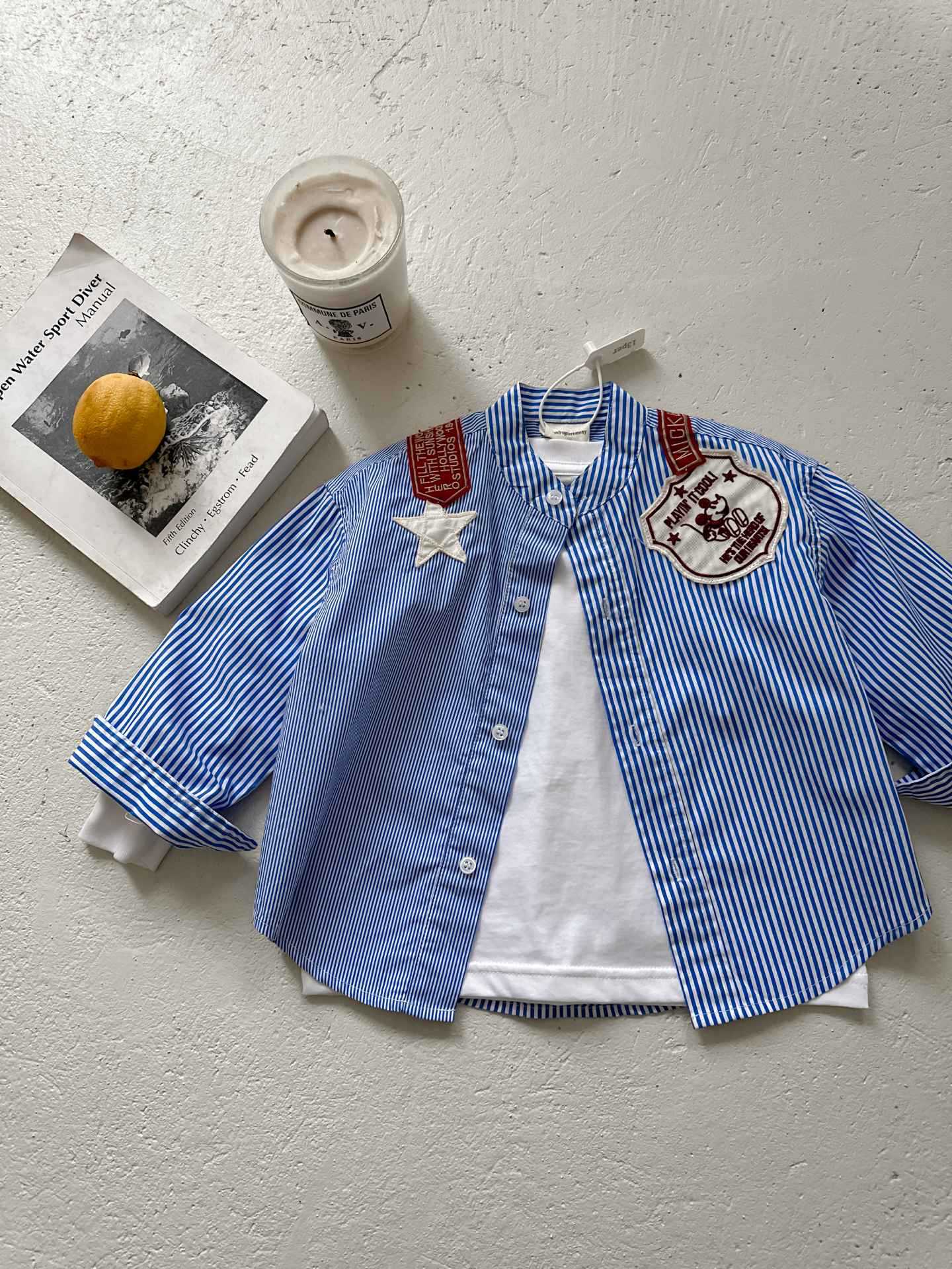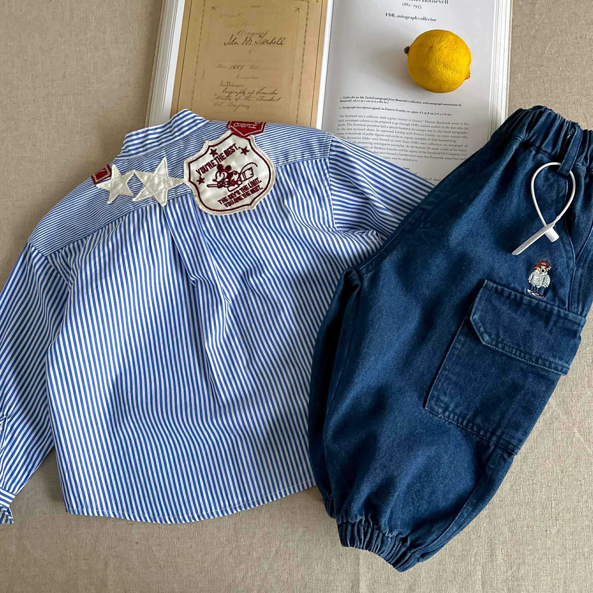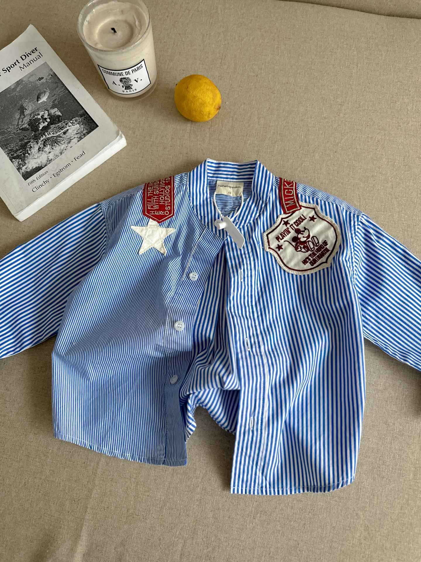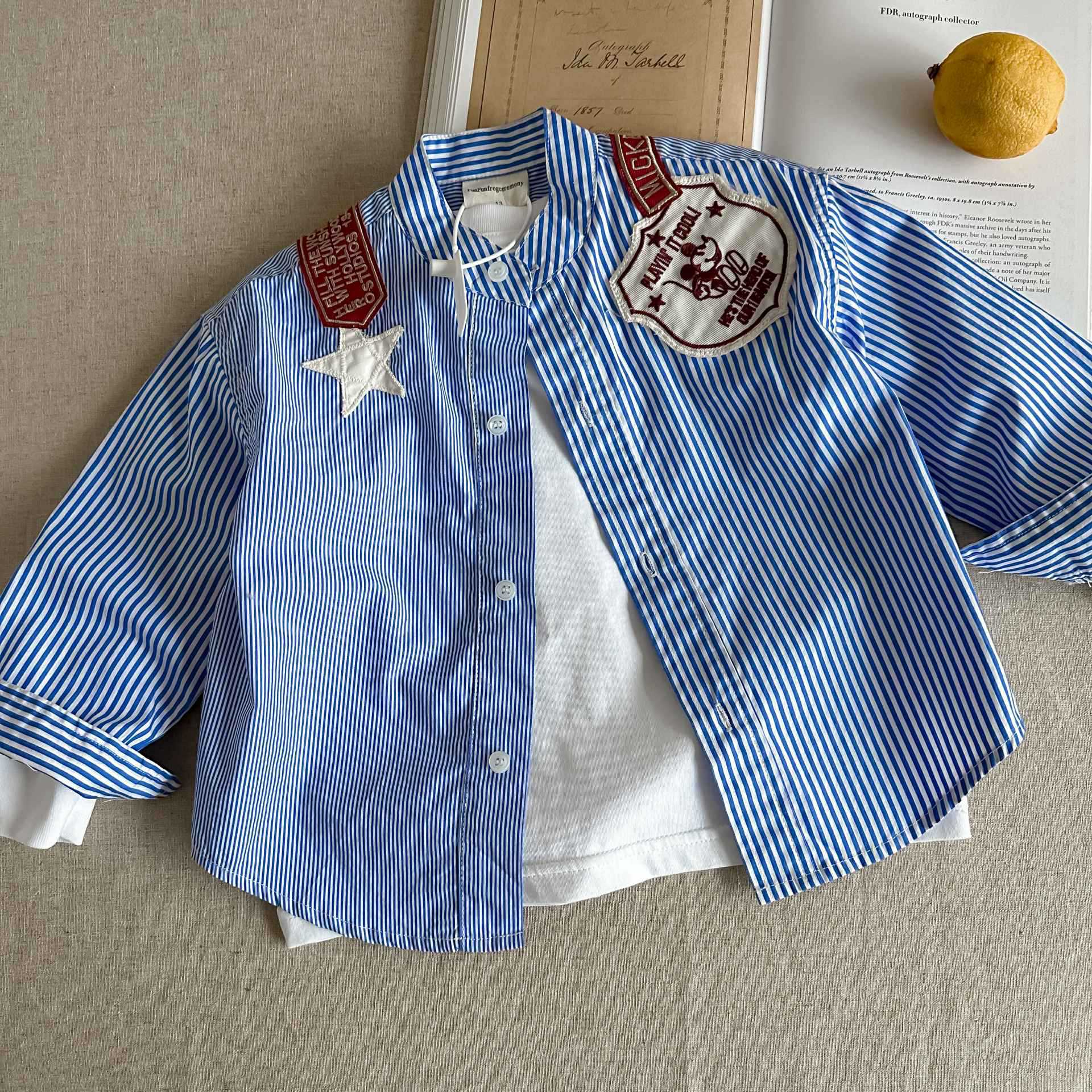줄무늬 셔츠 남자 2025 봄 새로운 어린이 만화 최고 서양 스타일 아기 라벨 셔츠 여성스토어 가기