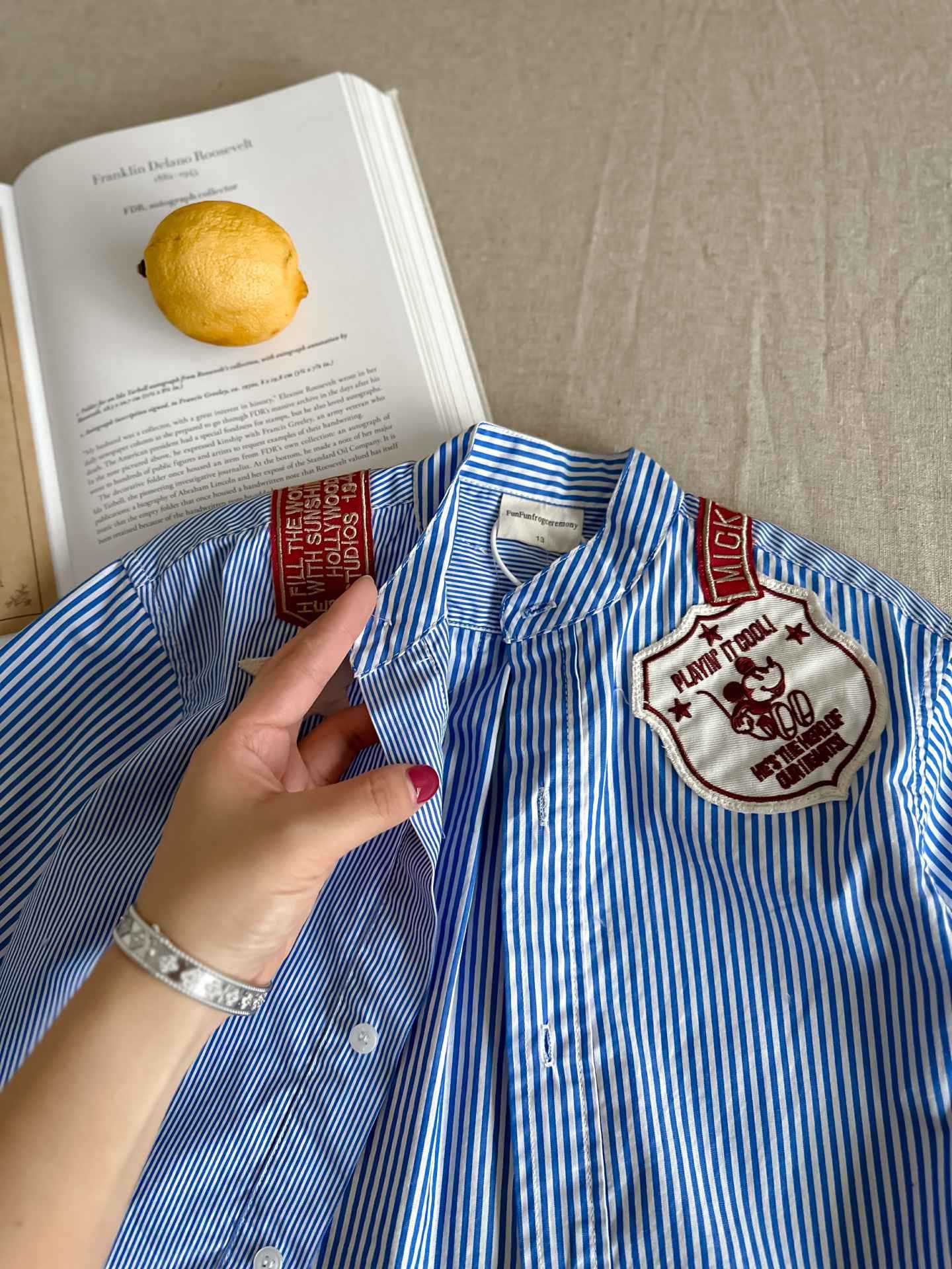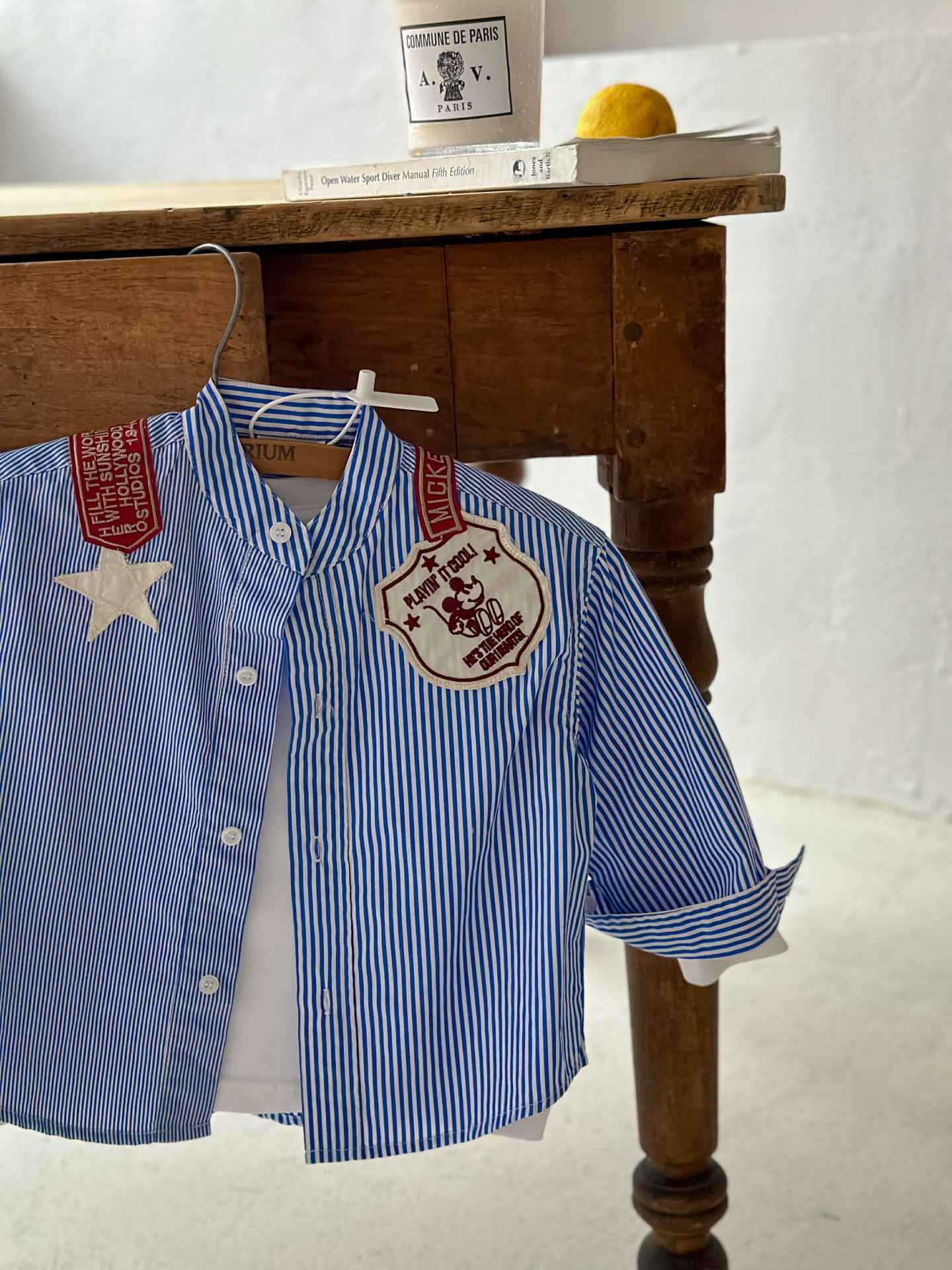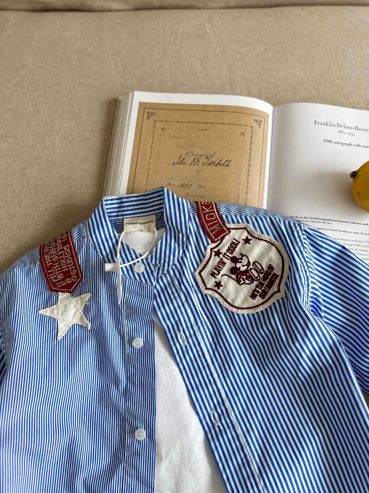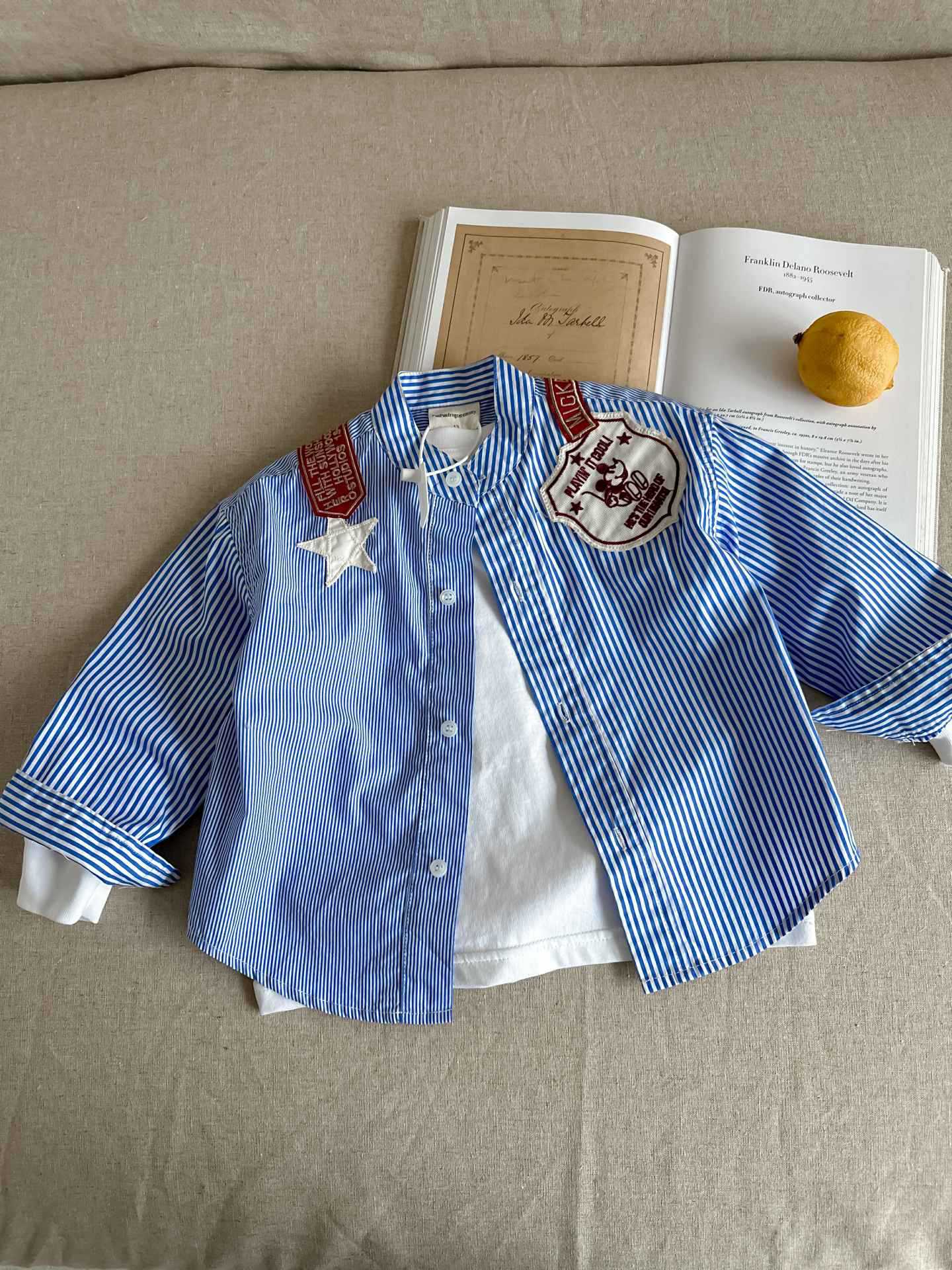 줄무늬 셔츠 남자 2025 봄 새로운 어린이 만화 최고 서양 스타일 아기 라벨 셔츠 여성스토어 가기