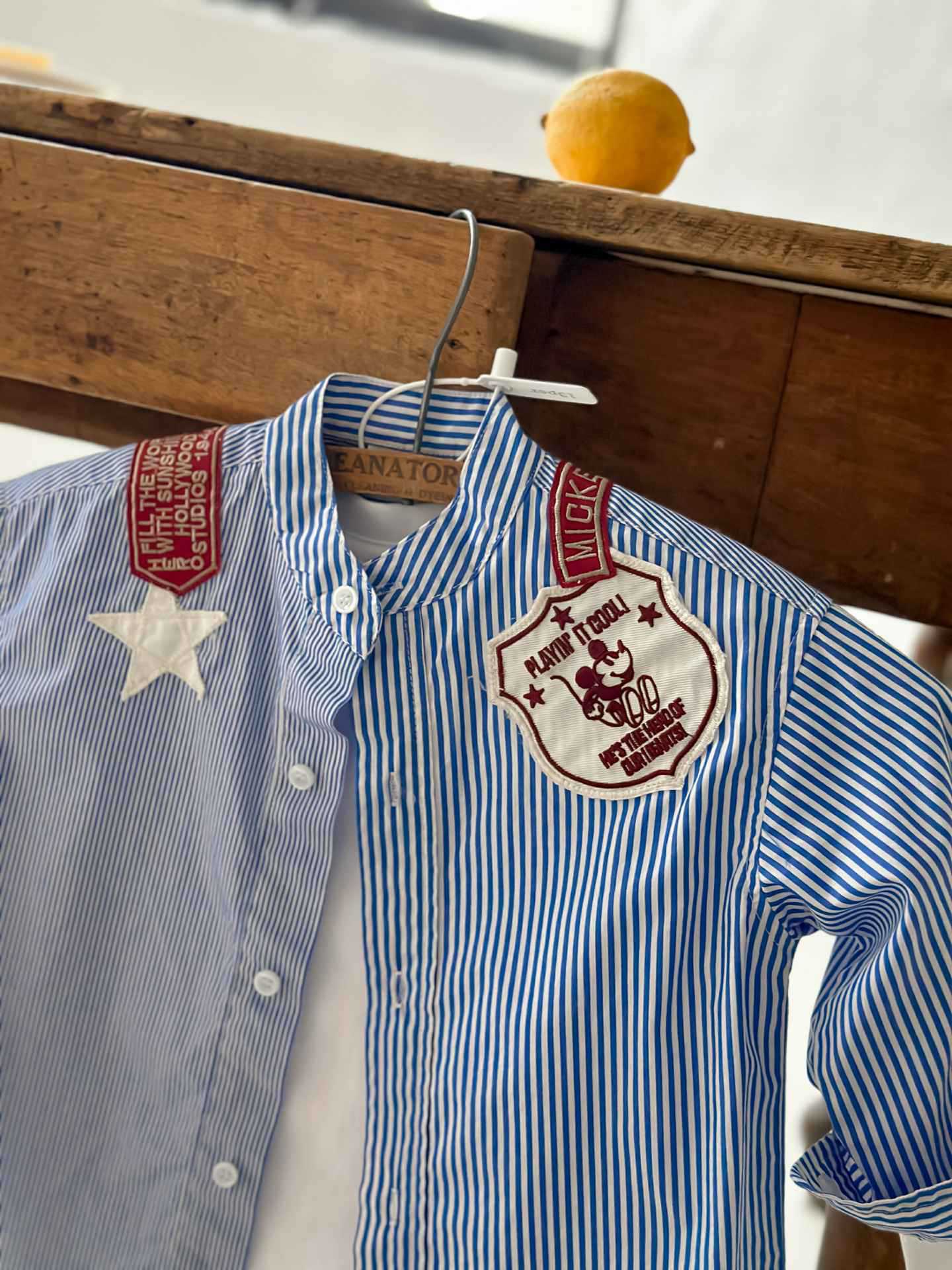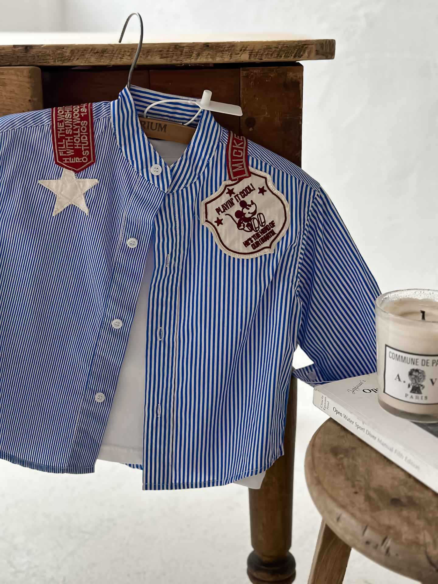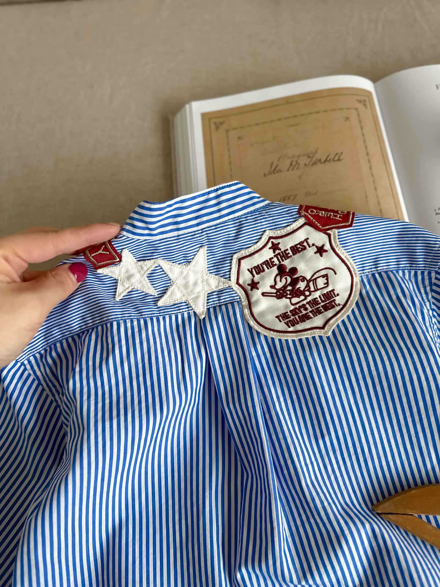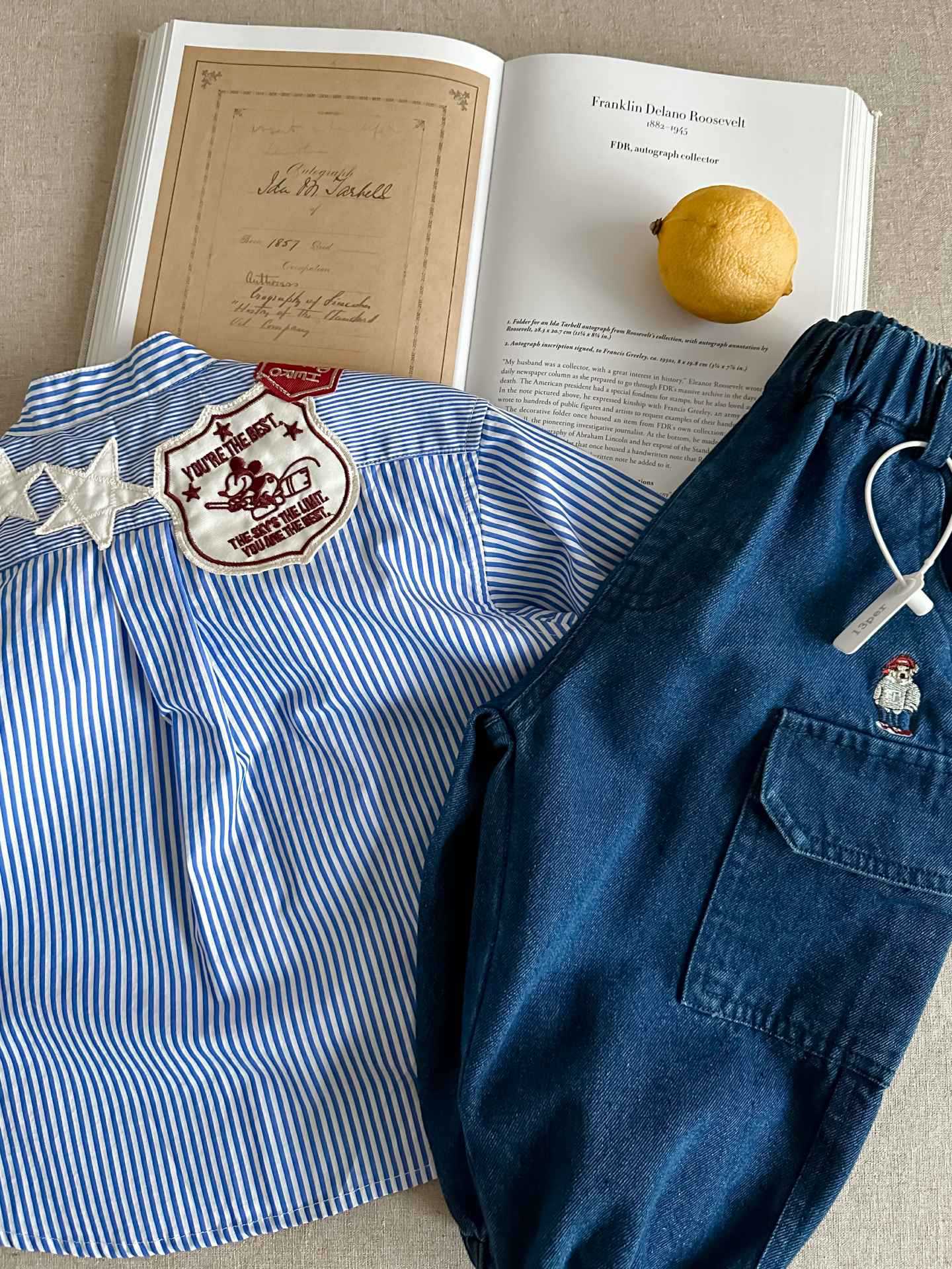 줄무늬 셔츠 남자 2025 봄 새로운 어린이 만화 최고 서양 스타일 아기 라벨 셔츠 여성스토어 가기