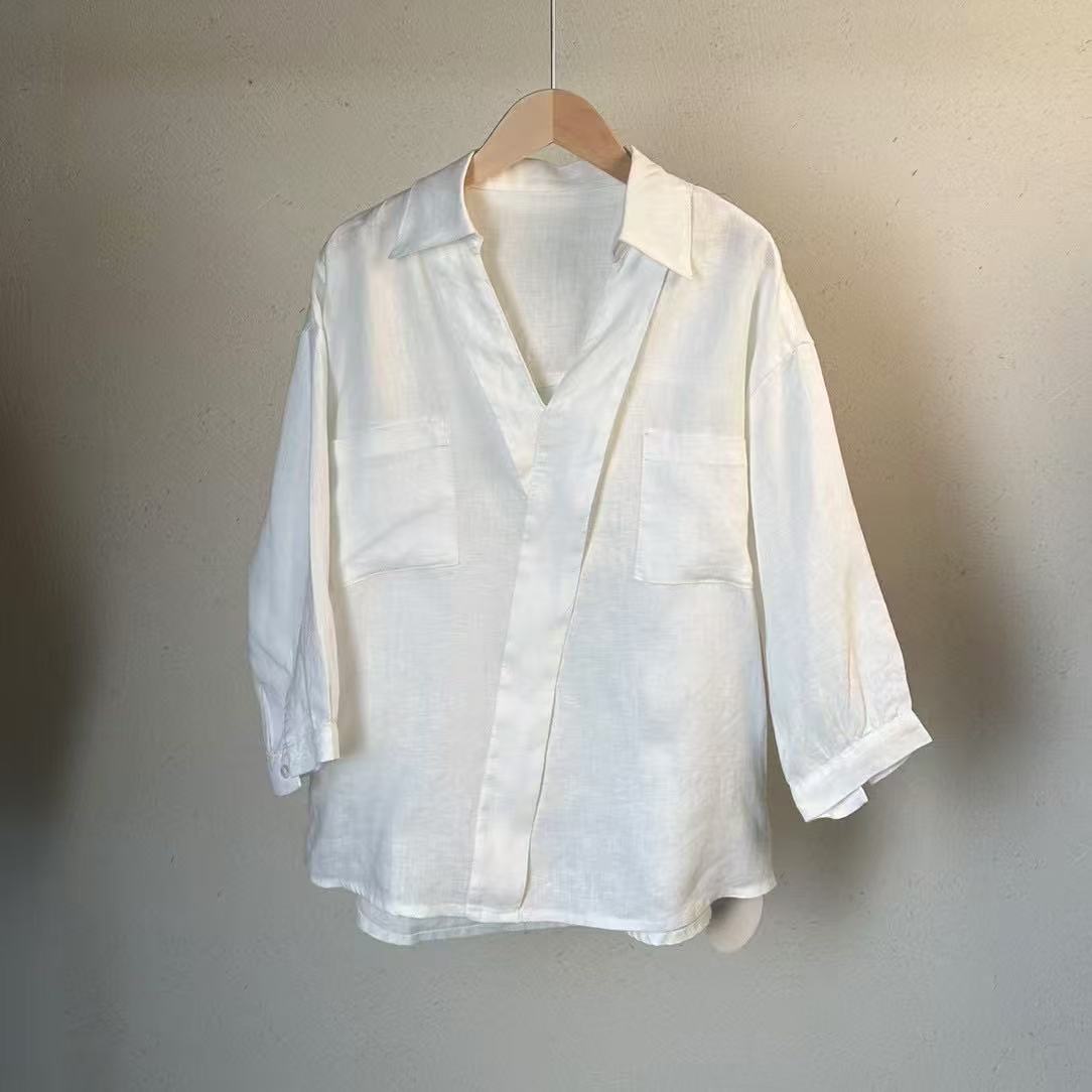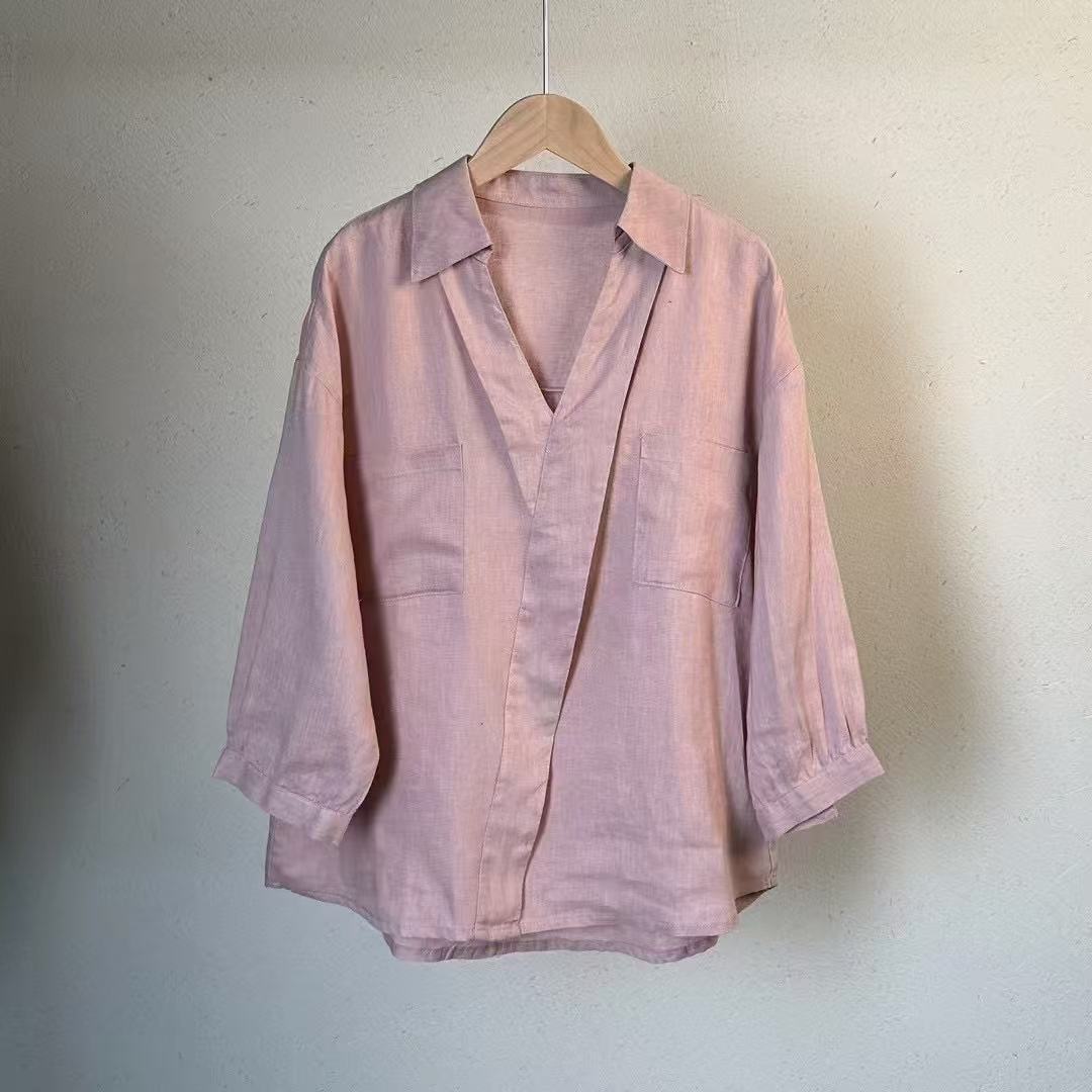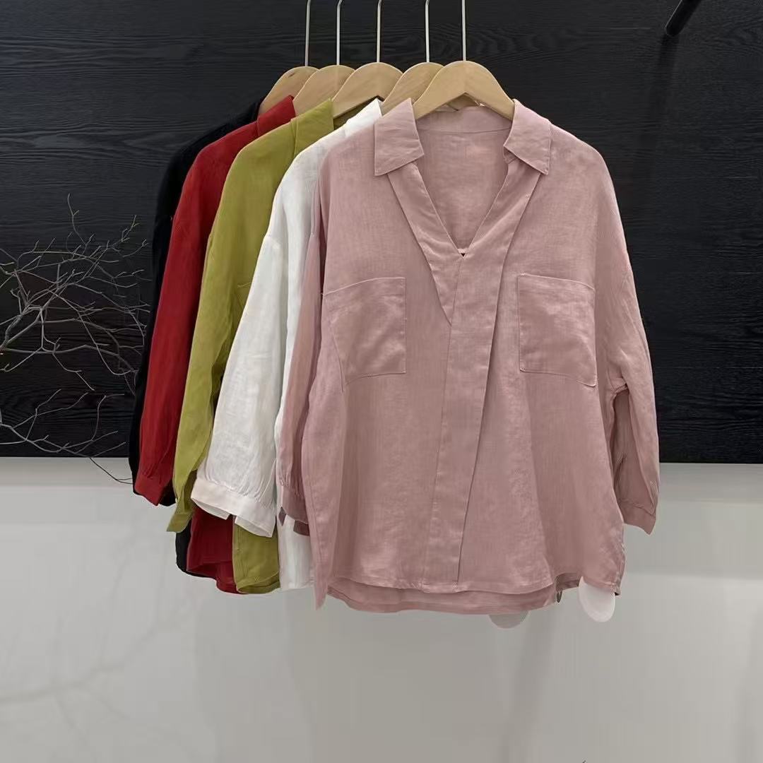스프링 라이트 럭셔리 하이 엔드 에이지 감소 리넨 셔츠 유럽식 래드 백 루즈 플러스 사이즈 통근 체 라르 탑