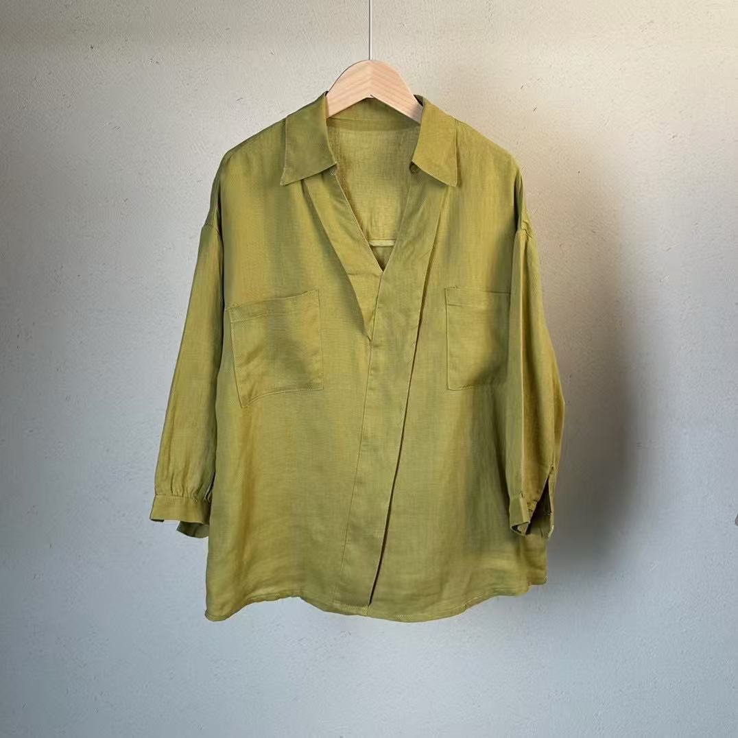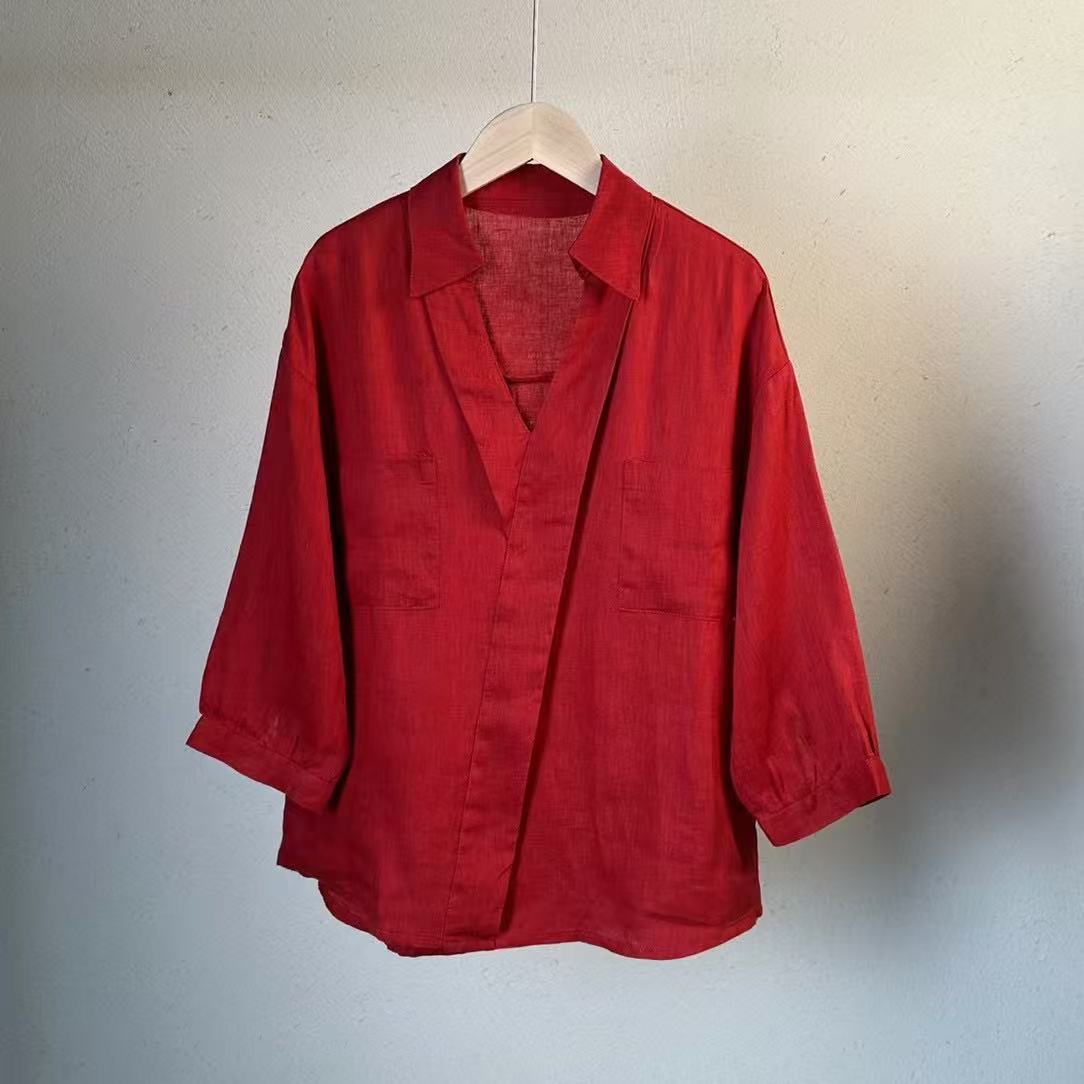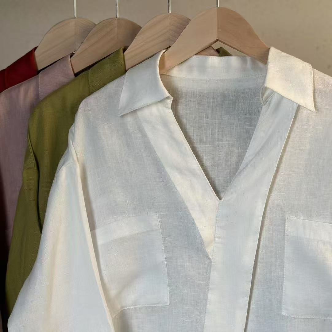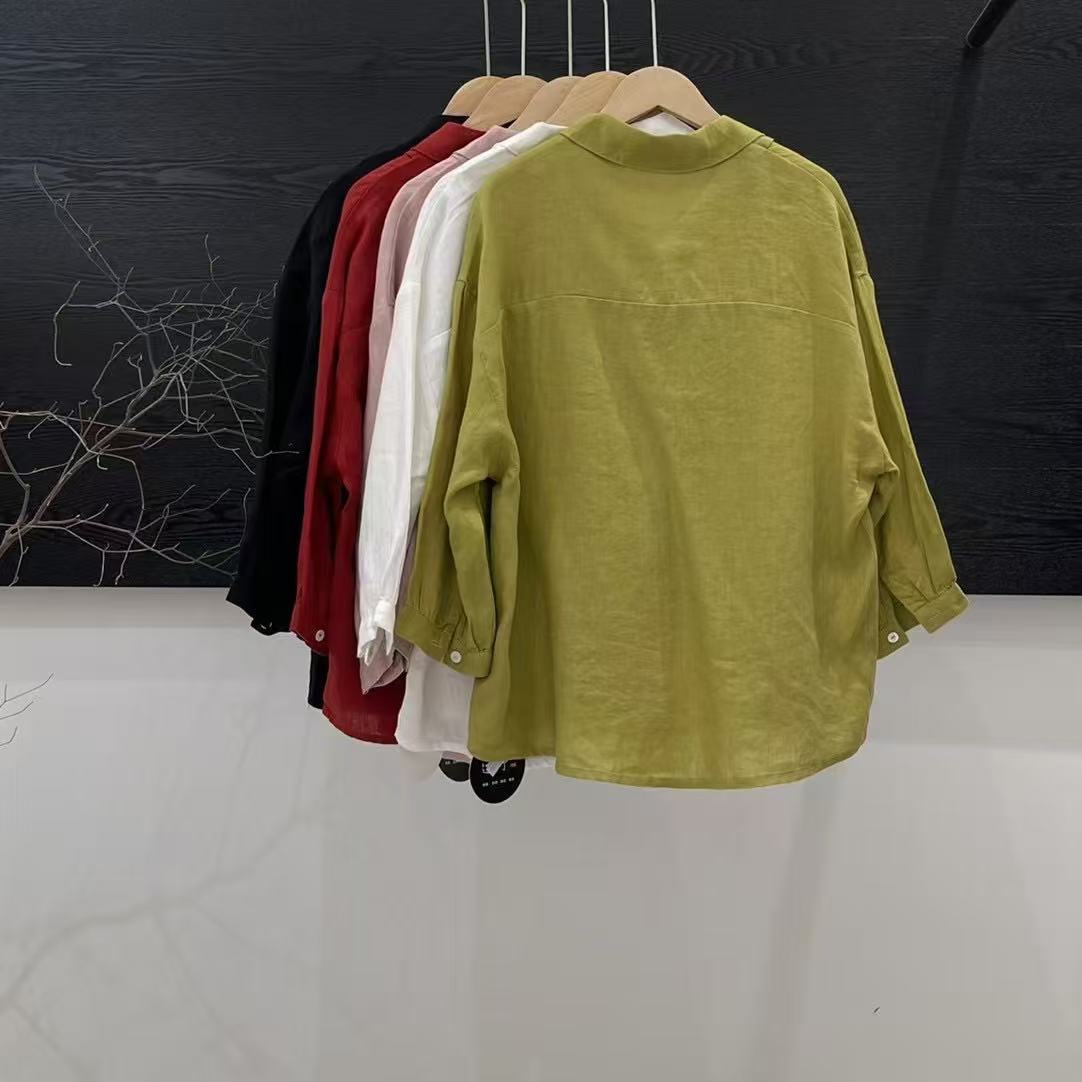 스프링 라이트 럭셔리 하이 엔드 에이지 감소 리넨 셔츠 유럽식 래드 백 루즈 플러스 사이즈 통근 체 라르 탑스토어 가기
