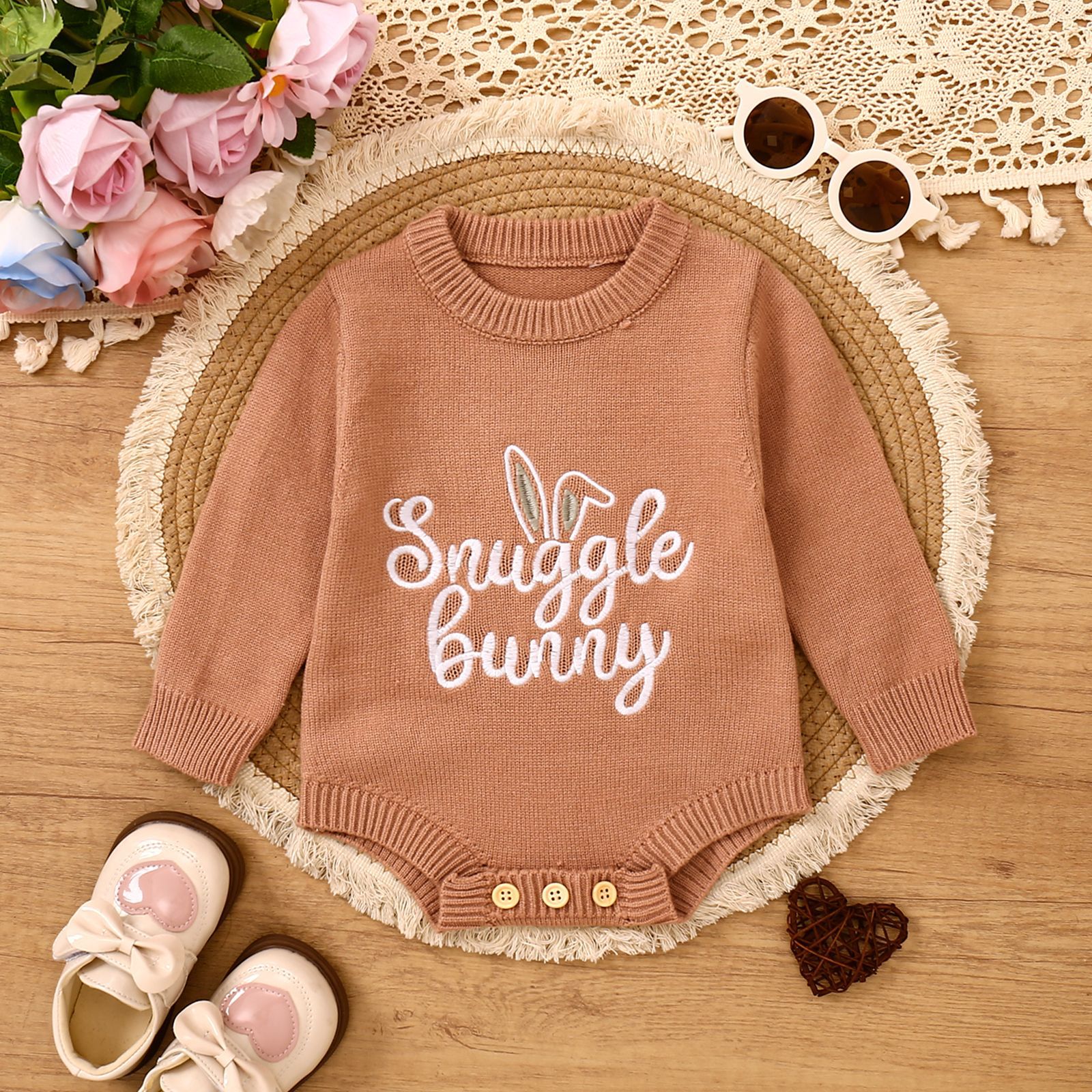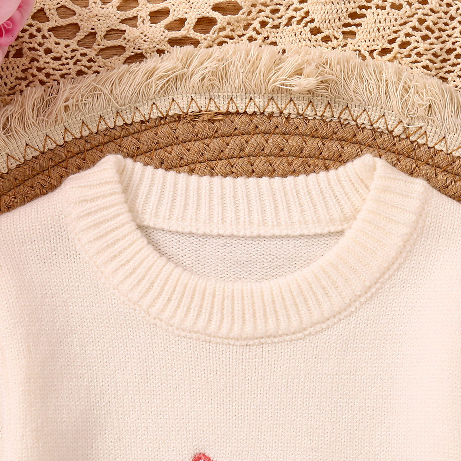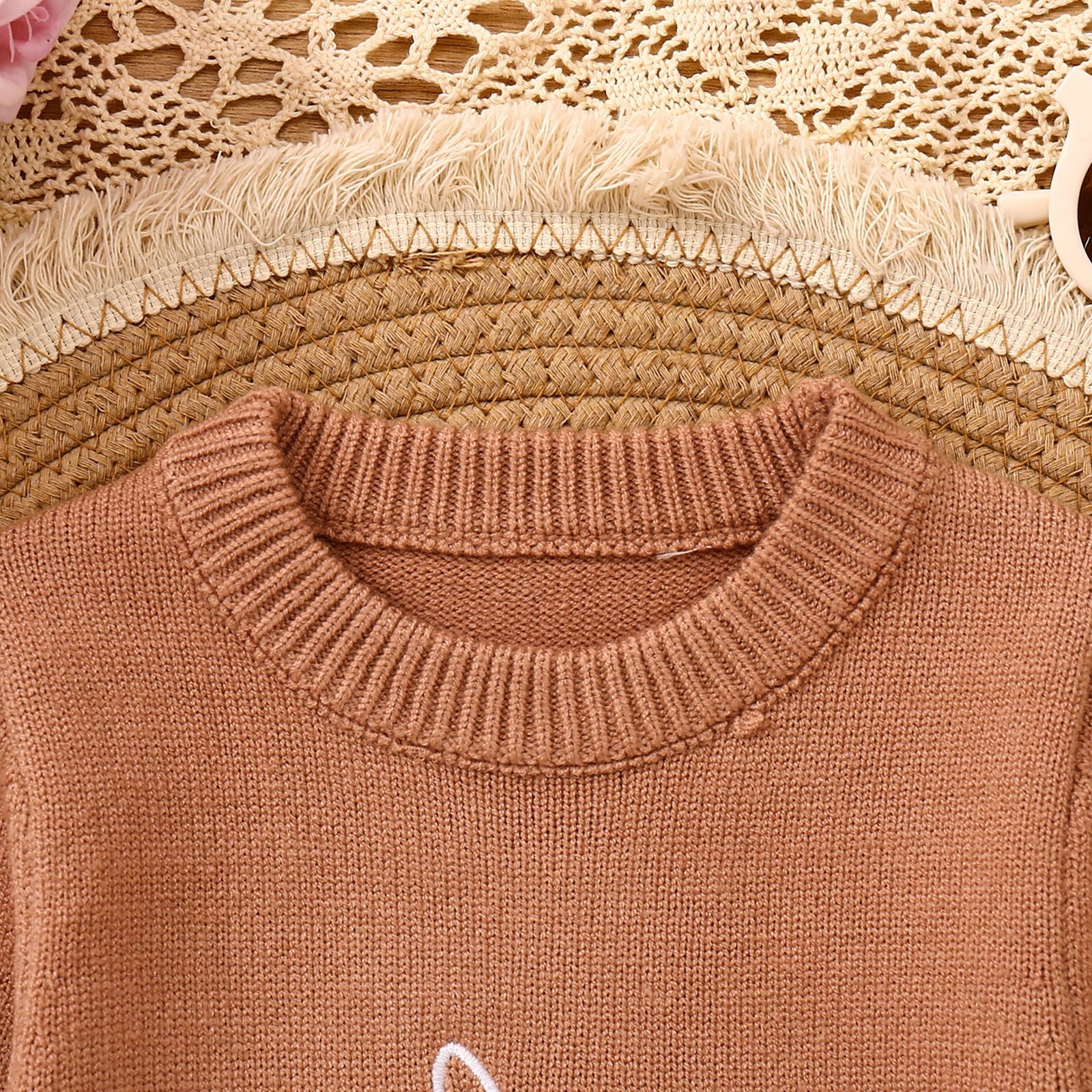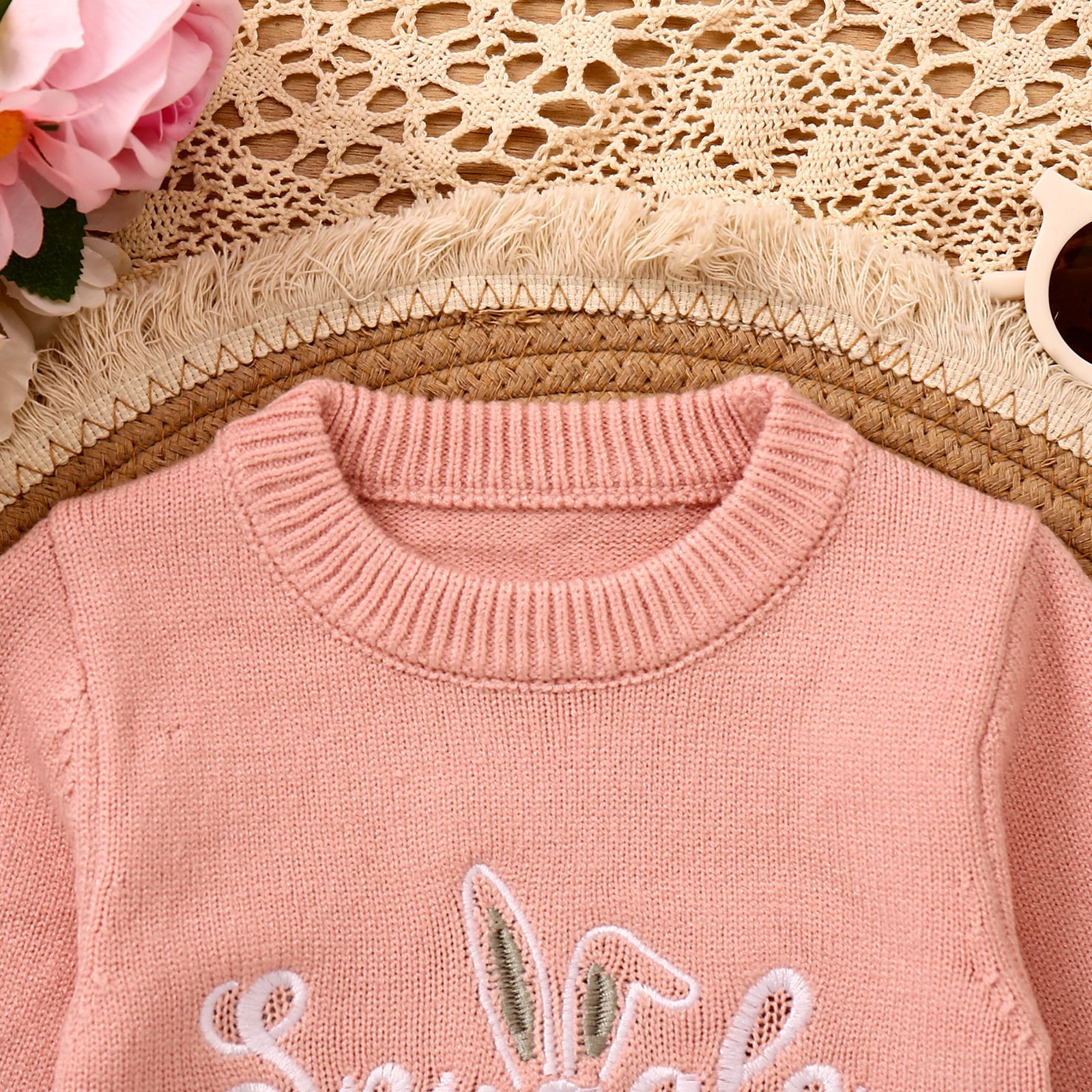 어린이 스웨터 등산 부활절 토끼 귀 편지 수 놓은 승무원 긴 소매 스웨터