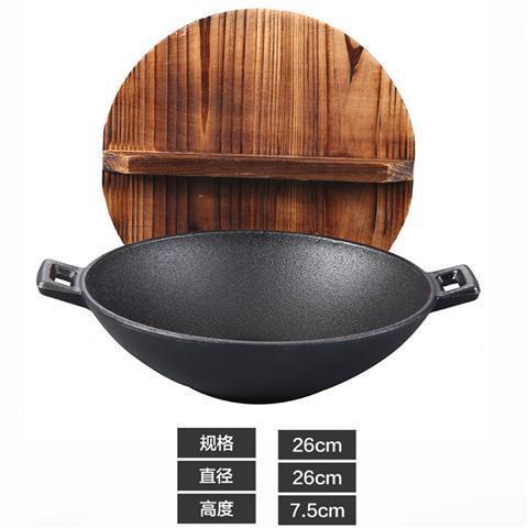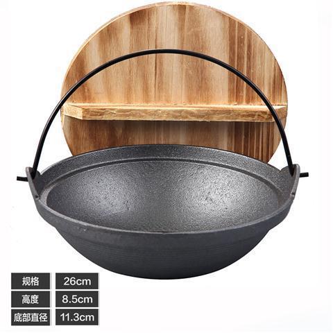 • 26cm 주철 나사형 냄비(나무 뚜껑 포함)