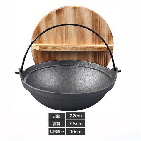 • 22cm 주철 나사형 냄비(나무 뚜껑 포함)