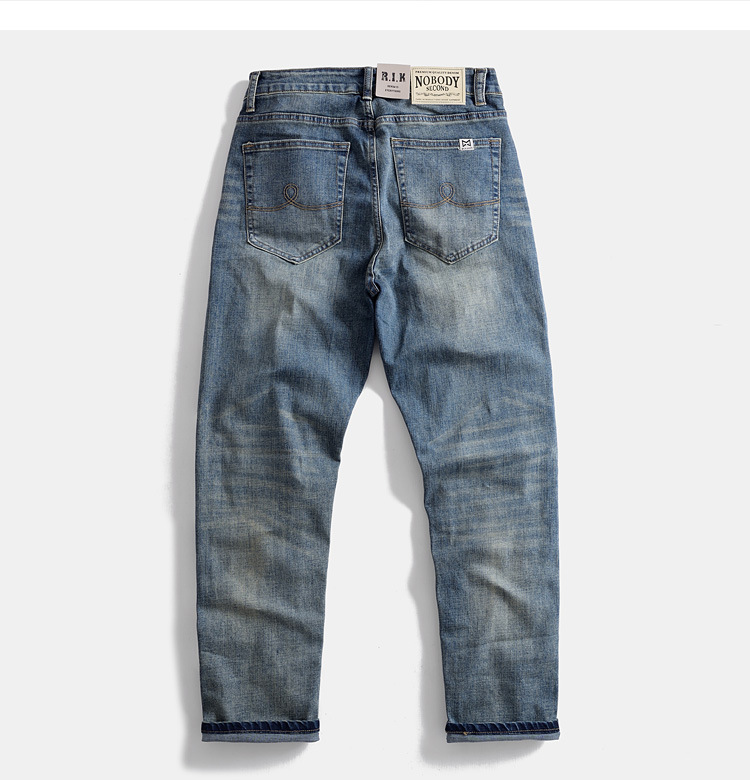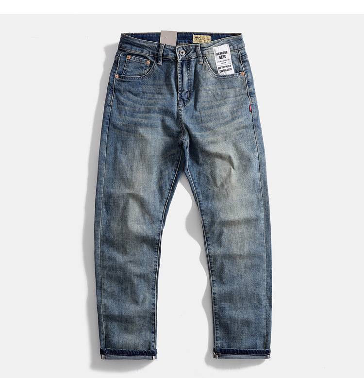 빈티지 향수 데님 바지 일본 스트레치 캐주얼 세탁 스트레이트 블루 아미 카지 미국 남성 바지스토어 가기
