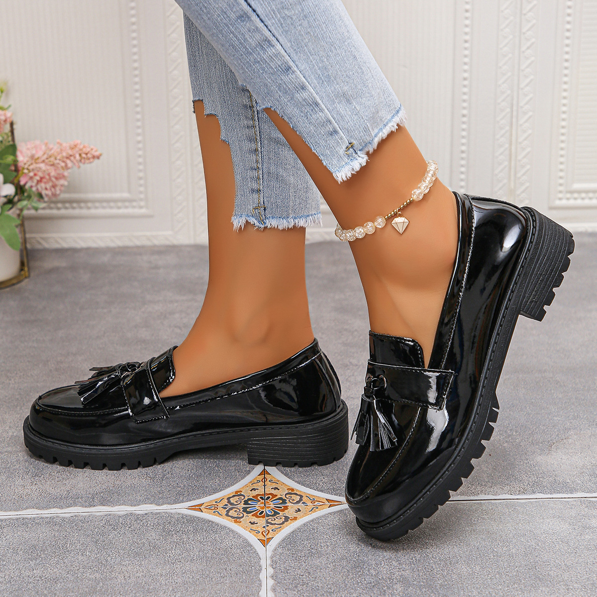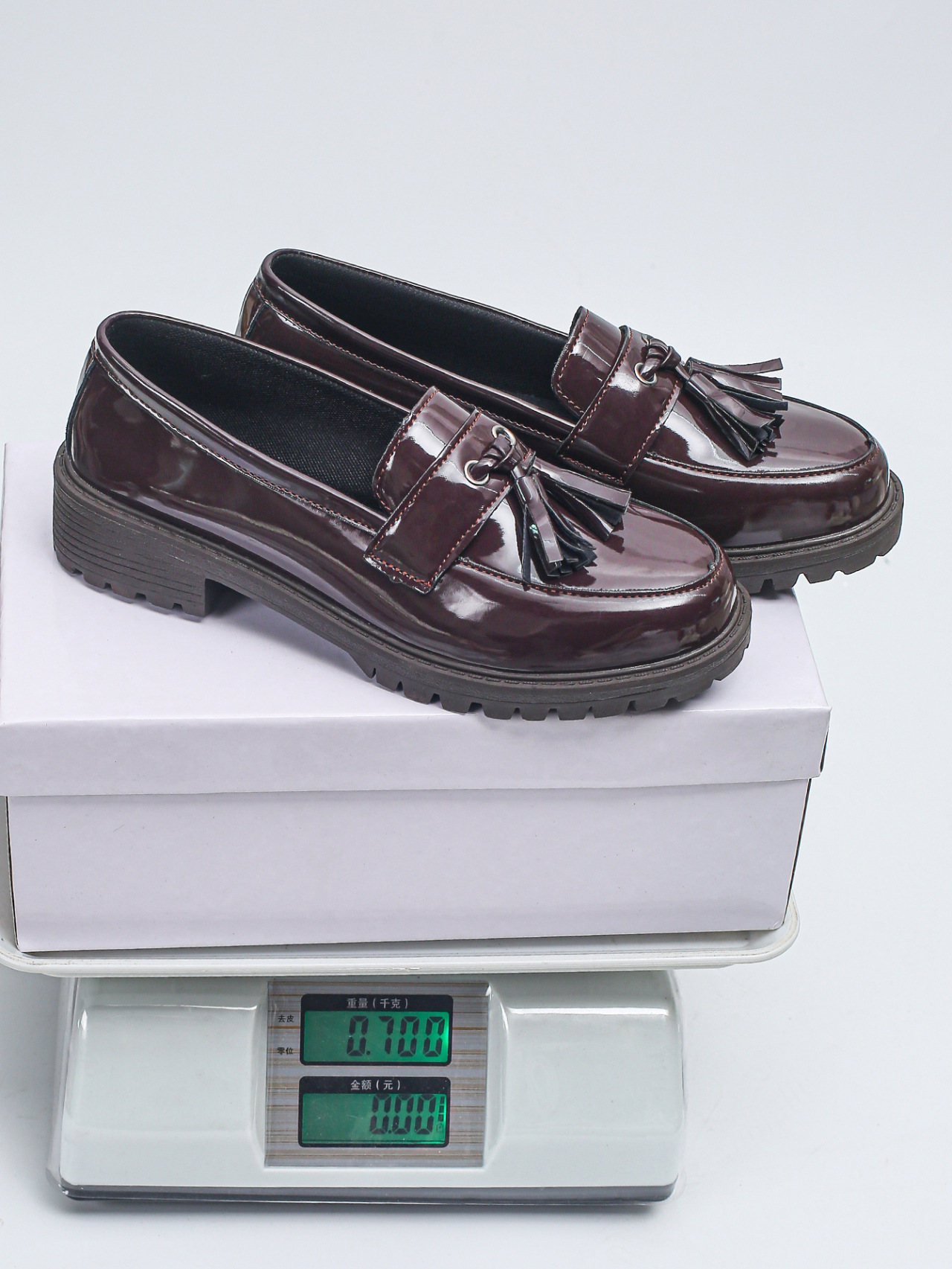 대외 무역 플러스 사이즈 봄과 가을 새로운 영국 스타일의 두꺼운 밑창 작은 가죽 신발 페달 술 로퍼 신발 여성 도매