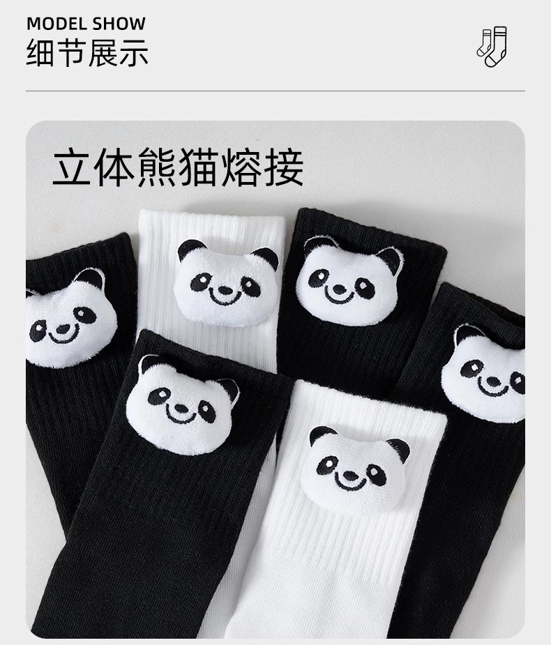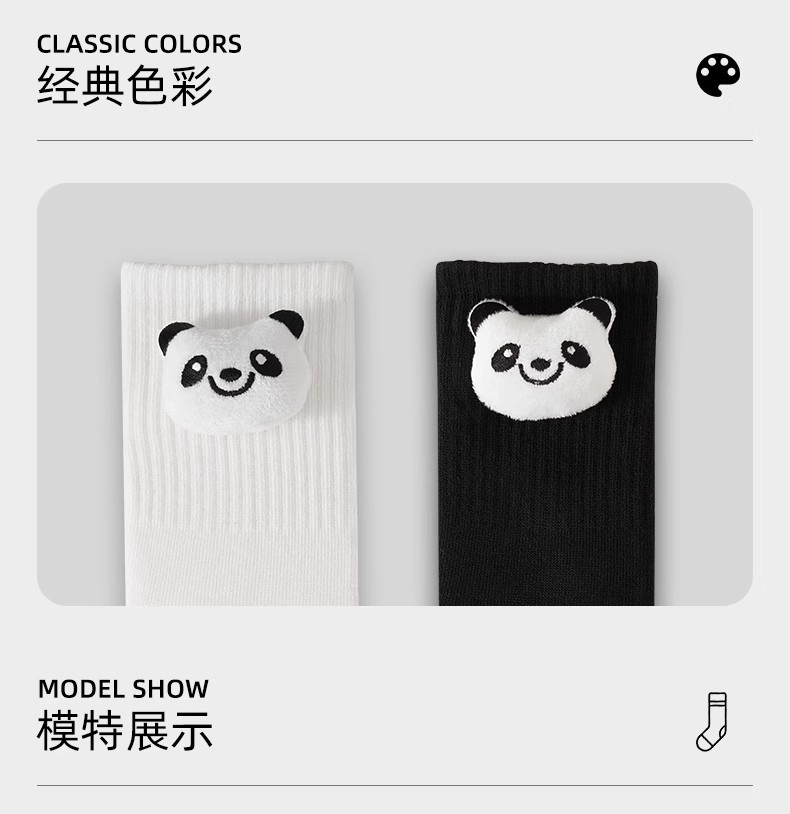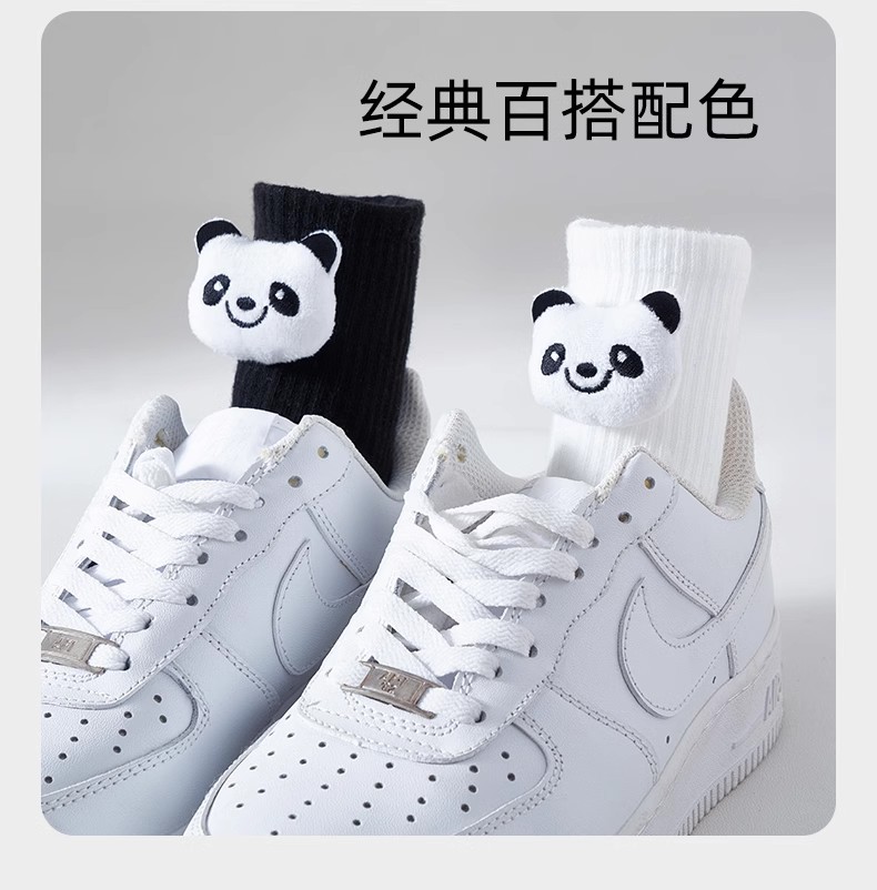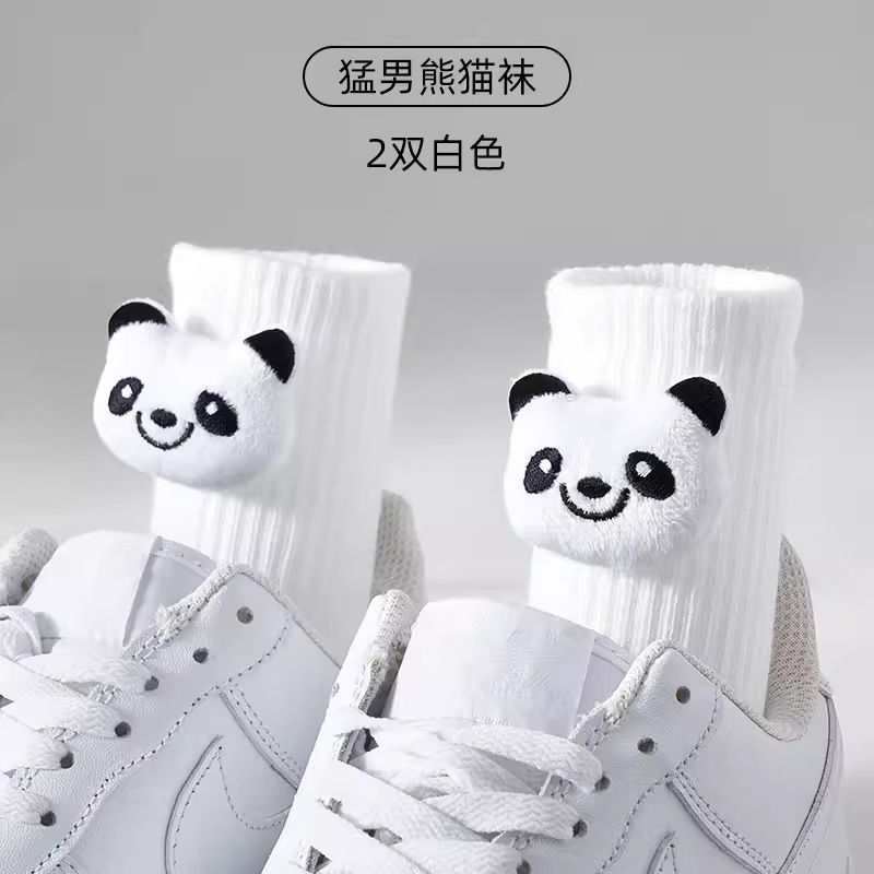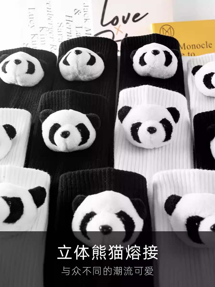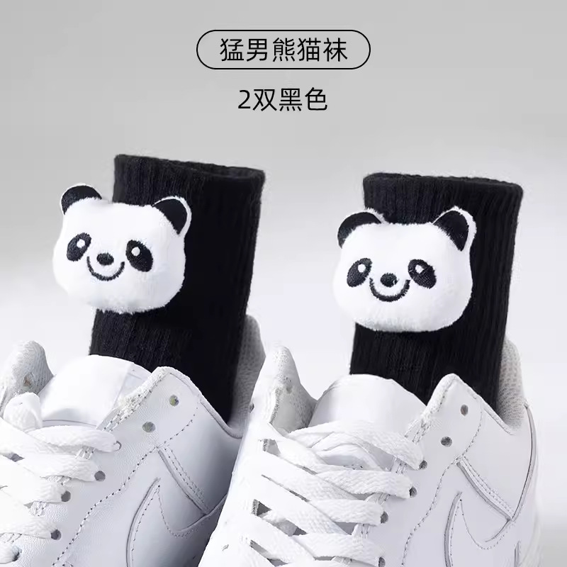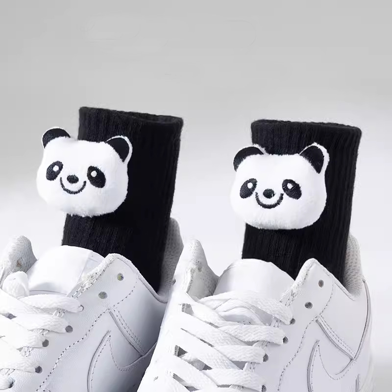 인터넷 인기 강아지 귀여운 팬더 인형 양말 여성용 코마사면 흑백 중간 길이 한국 인스타 감성 귀여운 어린이용
