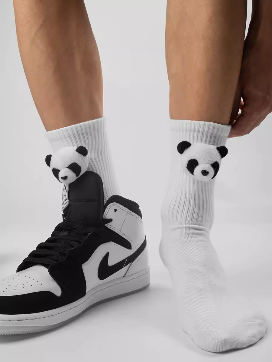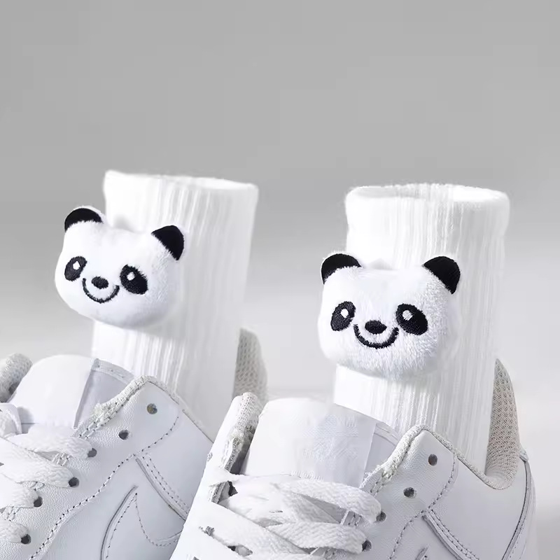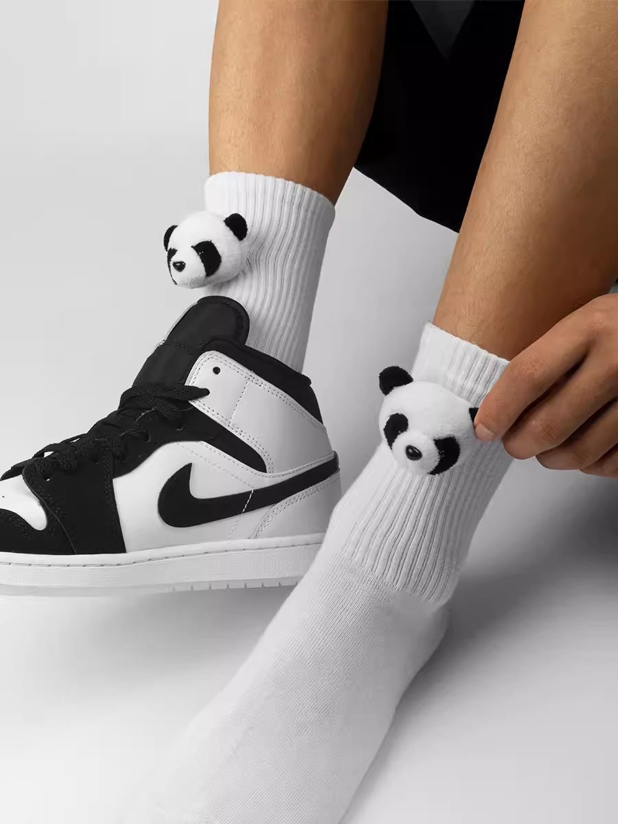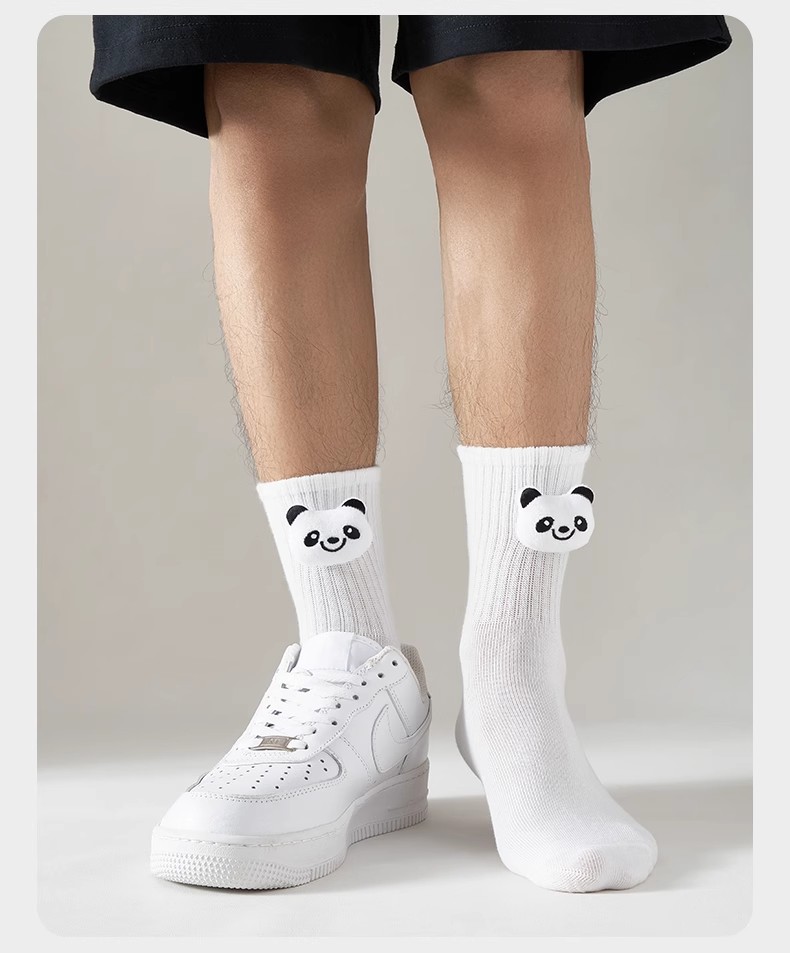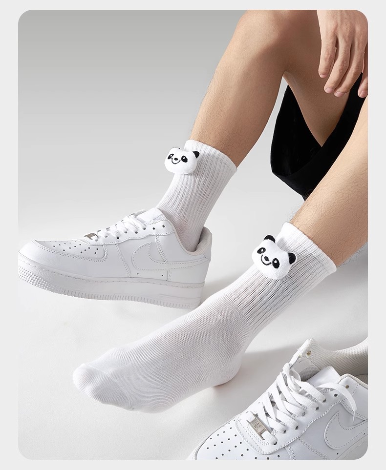 인터넷 인기 강아지 귀여운 팬더 인형 양말 여성용 코마사면 흑백 중간 길이 한국 인스타 감성 귀여운 어린이용