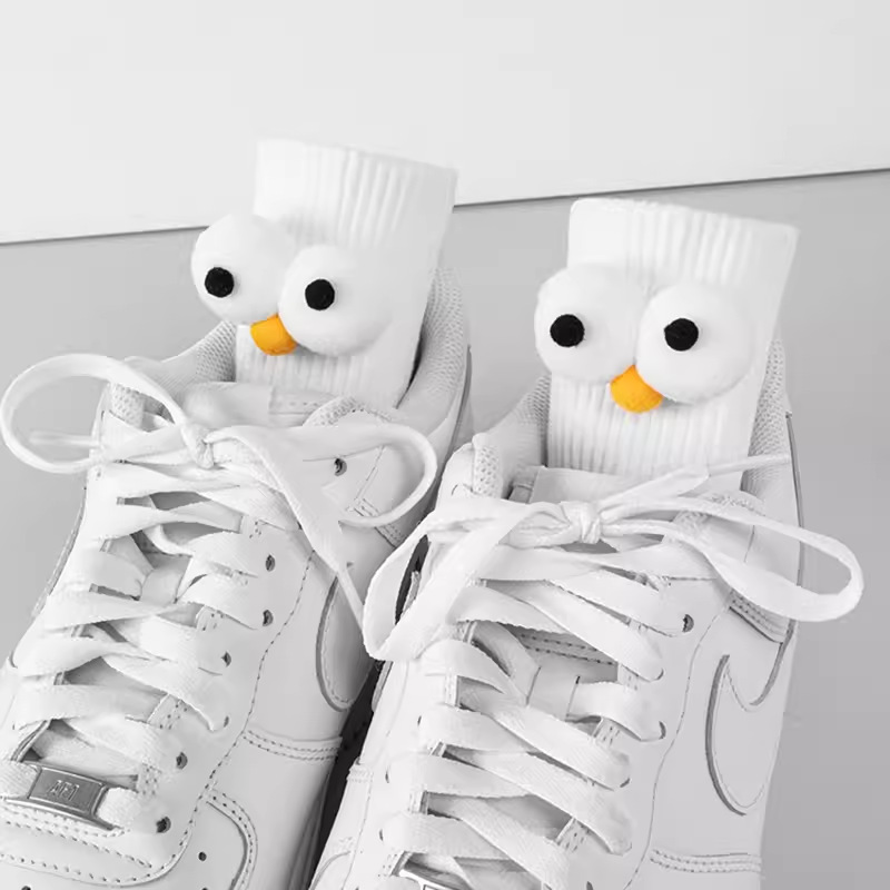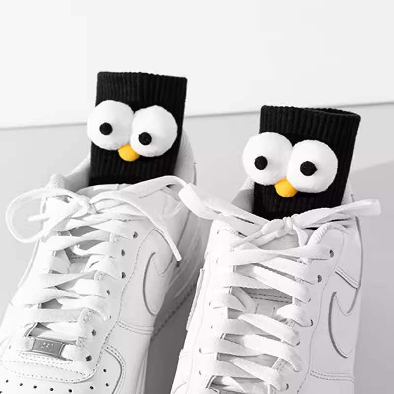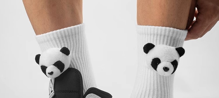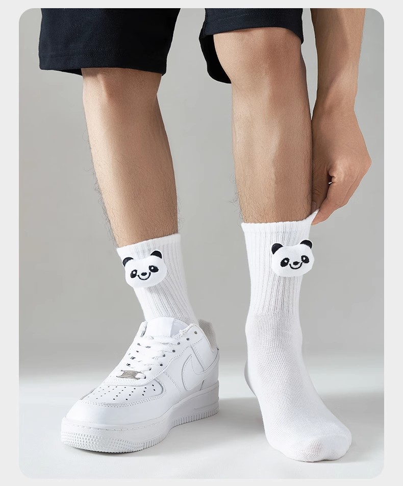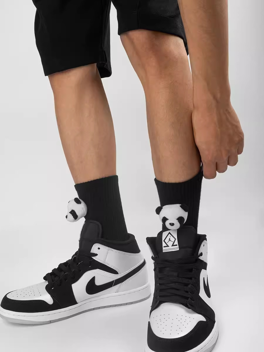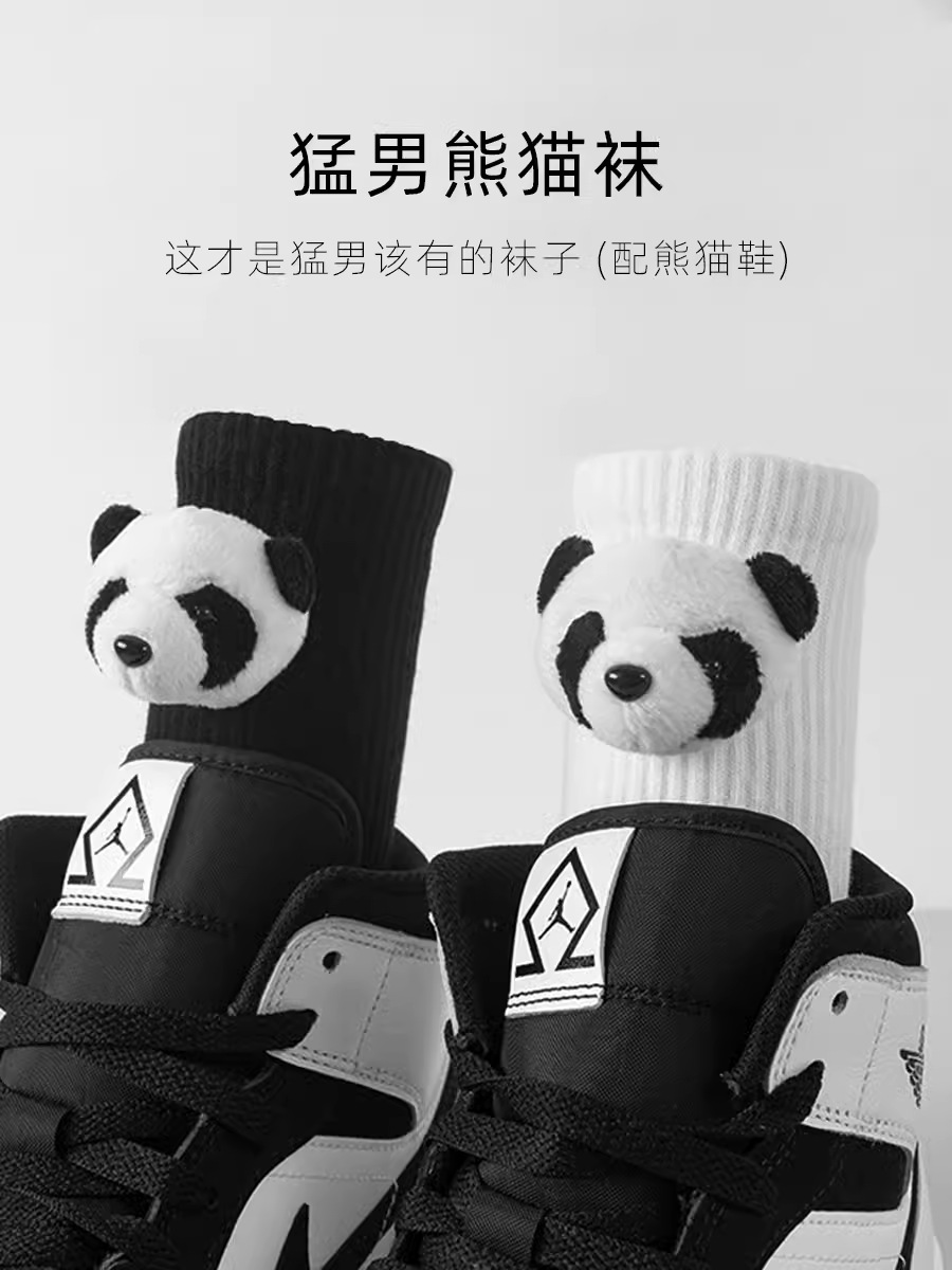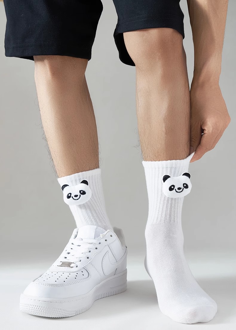 인터넷 인기 강아지 귀여운 팬더 인형 양말 여성용 코마사면 흑백 중간 길이 한국 인스타 감성 귀여운 어린이용