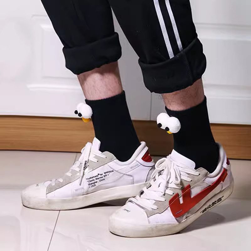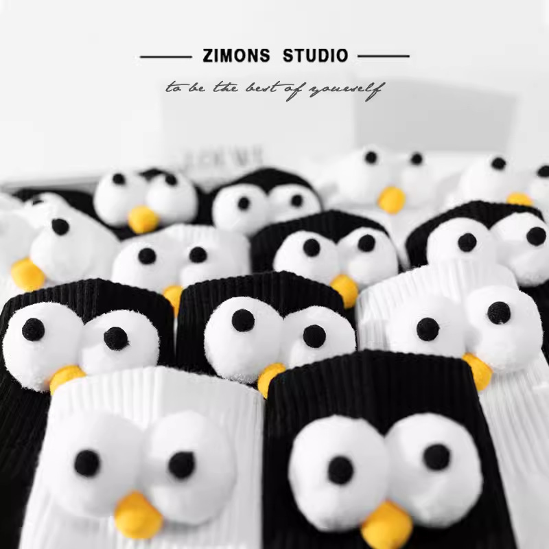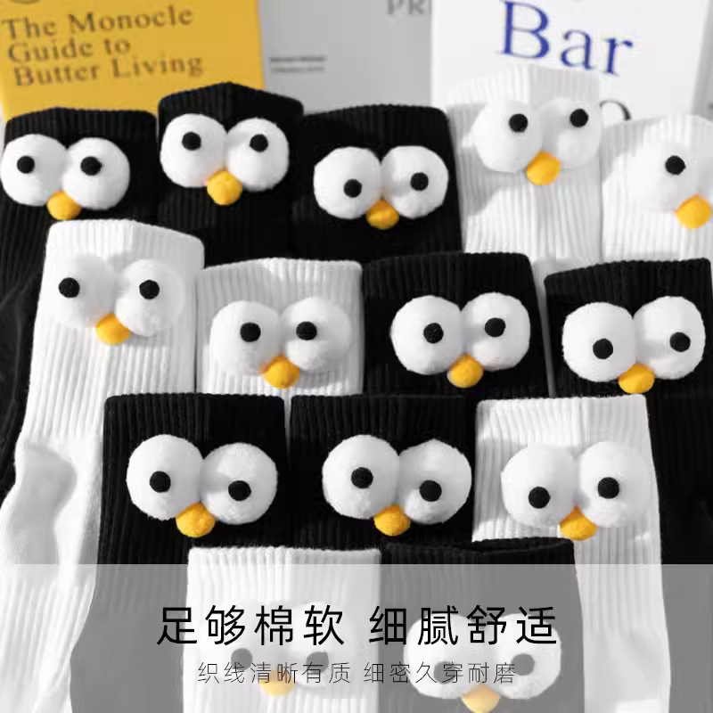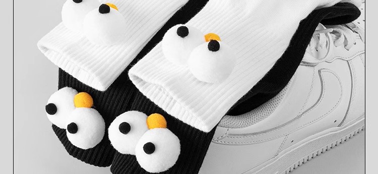 인터넷 인기 강아지 귀여운 팬더 인형 양말 여성용 코마사면 흑백 중간 길이 한국 인스타 감성 귀여운 어린이용스토어 가기