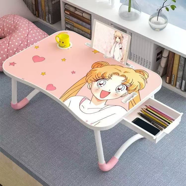 맞춤형 설치가 필요 없는 침대 접이식 테이블, 만화 캐릭터 컴퓨터 소형 테이블, 창가 침실 기숙사 학습 책상, 해외배송스토어 가기