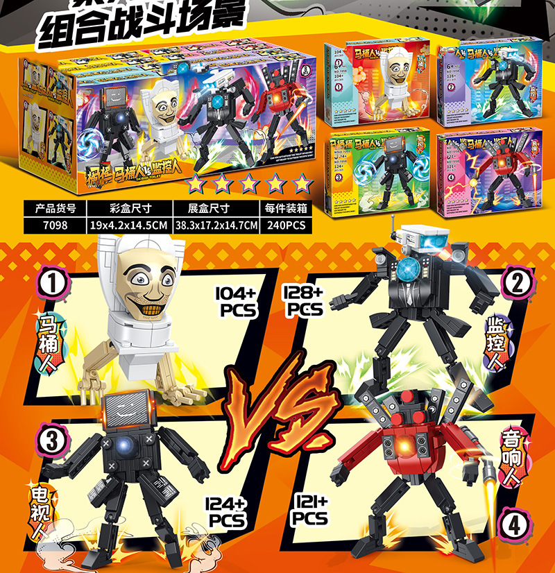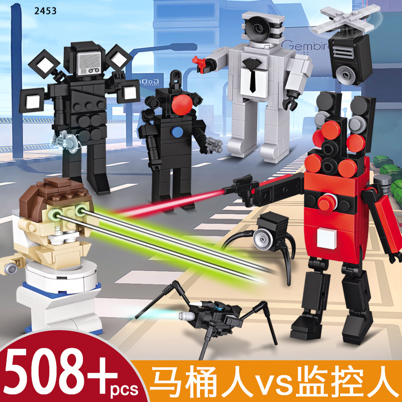 7098 국경 간 화장실 남자 vs 모니터 맨 빌딩 블록 Skibidi 화장실 시리즈 소년 빌딩 블록 조립 장난감스토어 가기