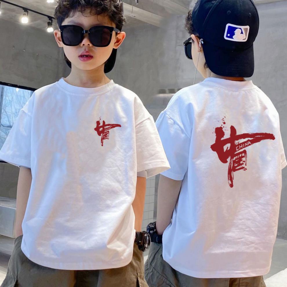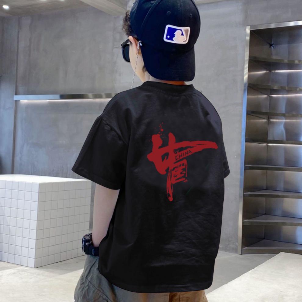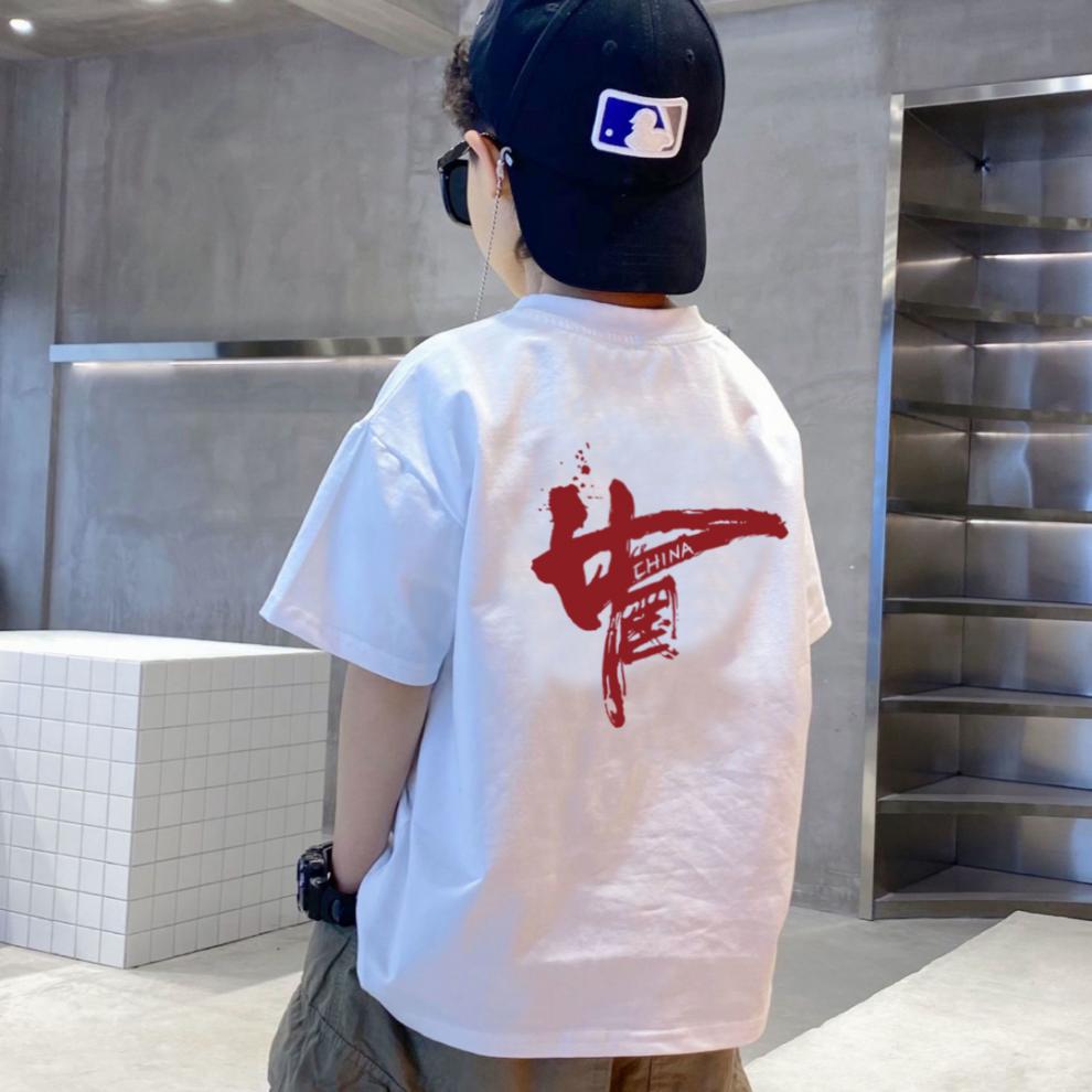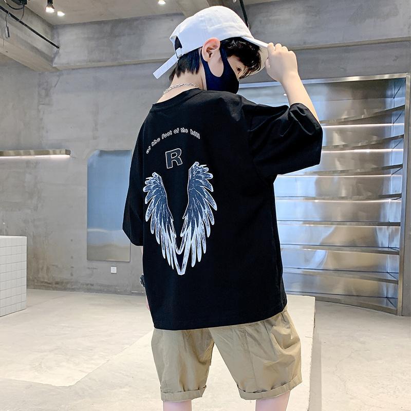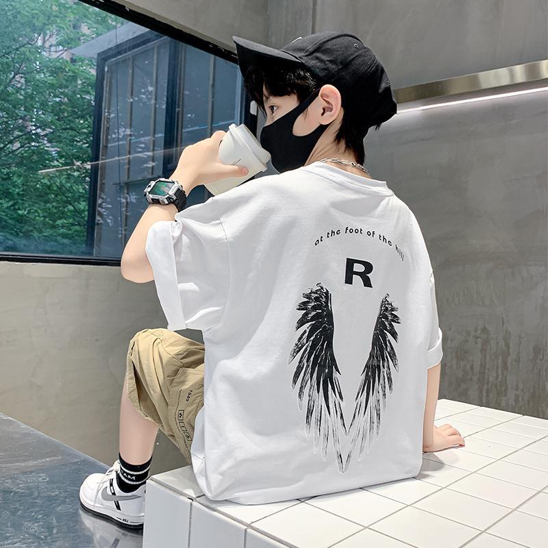 (24) 100 면화 소년 반소매 티셔츠 여름 어린이 큰 소년 느슨한 외국 스타일 짧은 소매