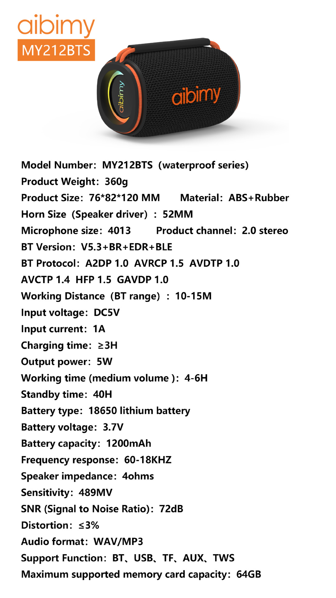 Ebimi 무선 방수 블루투스 오디오 TWS 시리즈 212BT 서브 우퍼 조명 휴대용 오디오