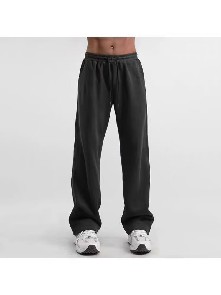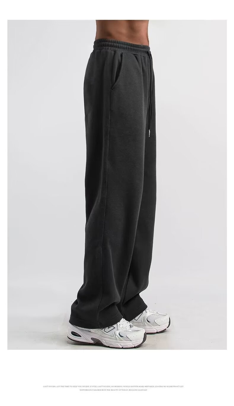 헤비 니트 캐주얼 바지 남자 일본식 레트로 올드 스타일 펜던트 스타일 드로스트링 가을 스포츠 바지 스트레이트 레그 바지 남성용 스웨트 팬츠