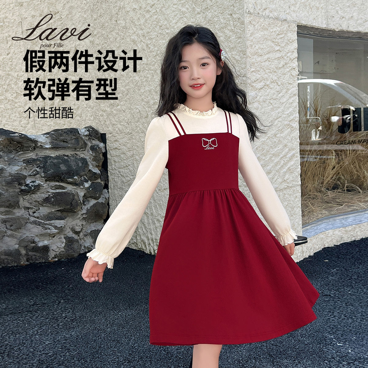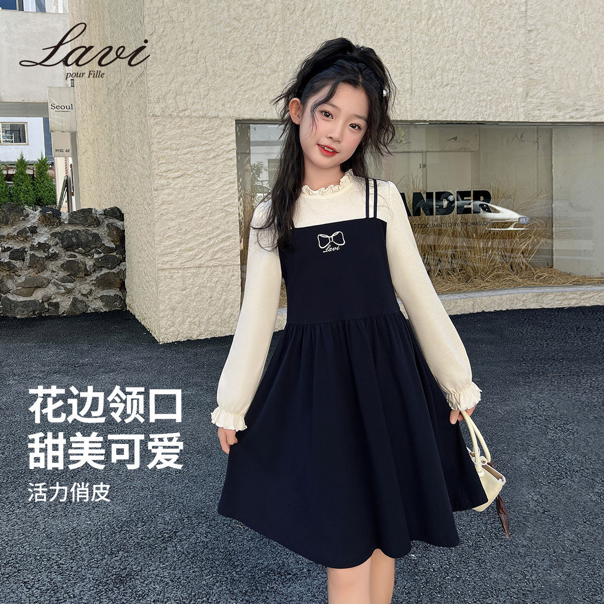 LAVI 봄 신상 여아 긴팔 원피스 아동 투피스 스타일 달콤한 원피스 중대형 어린이 공주 드레스