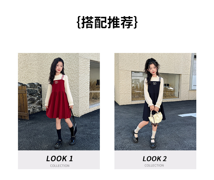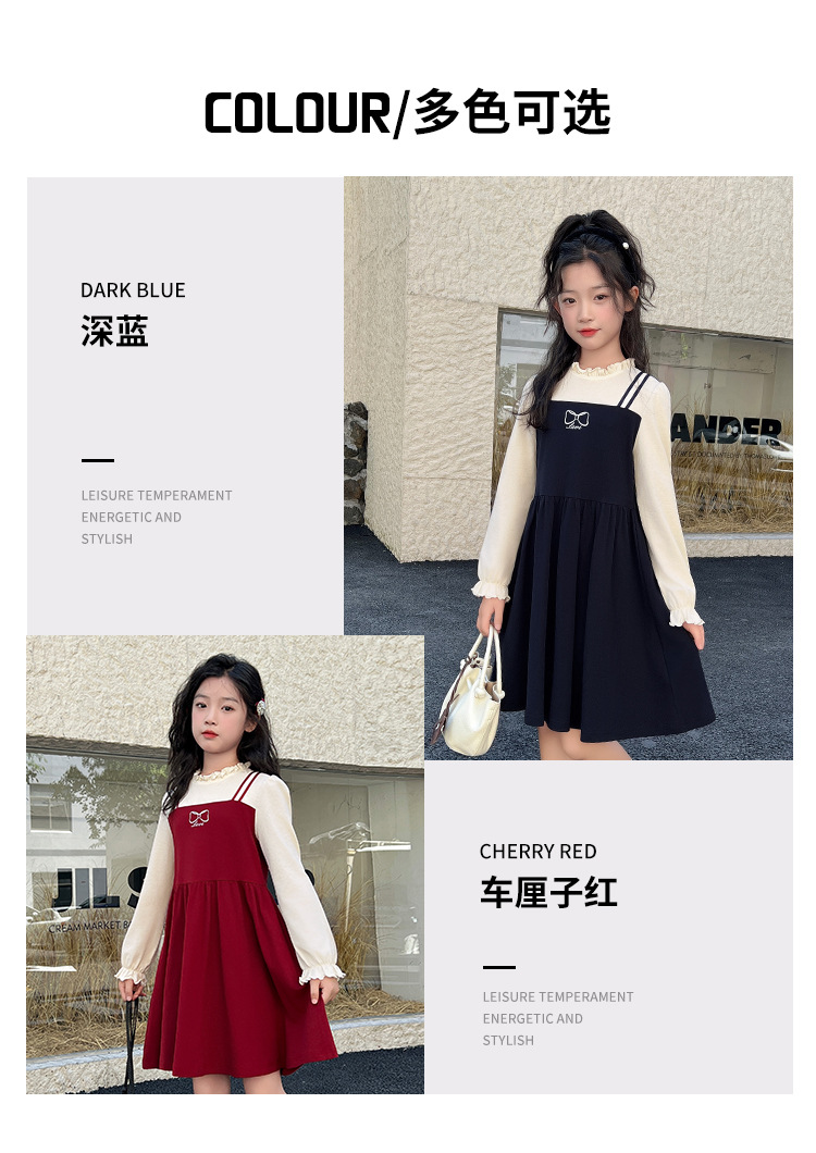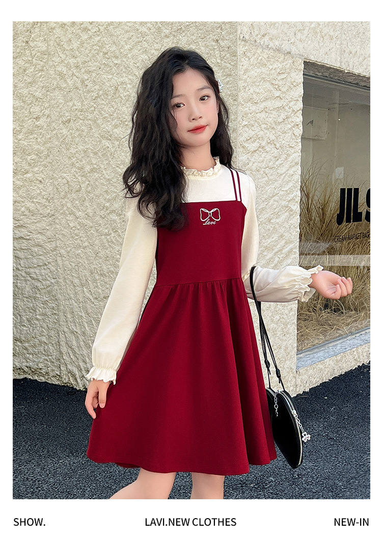 LAVI 봄 신상 여아 긴팔 원피스 아동 투피스 스타일 달콤한 원피스 중대형 어린이 공주 드레스스토어 가기