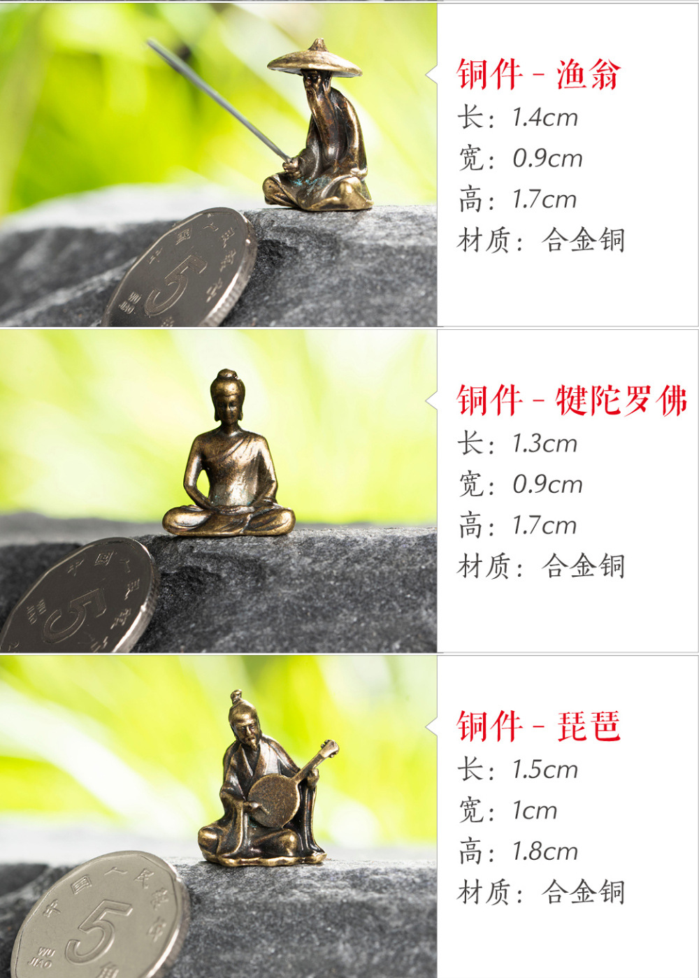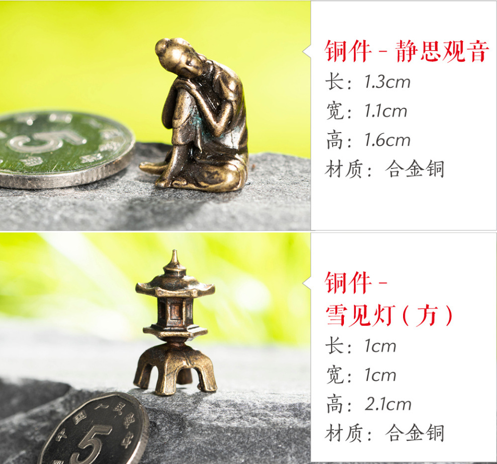 마이크로 풍경 청동 장식품 중국 부처 정밀 캐스트 조경 다도 향기로운 행사 선 모스 브로커리 분재 모래 테이블 장식스토어 가기