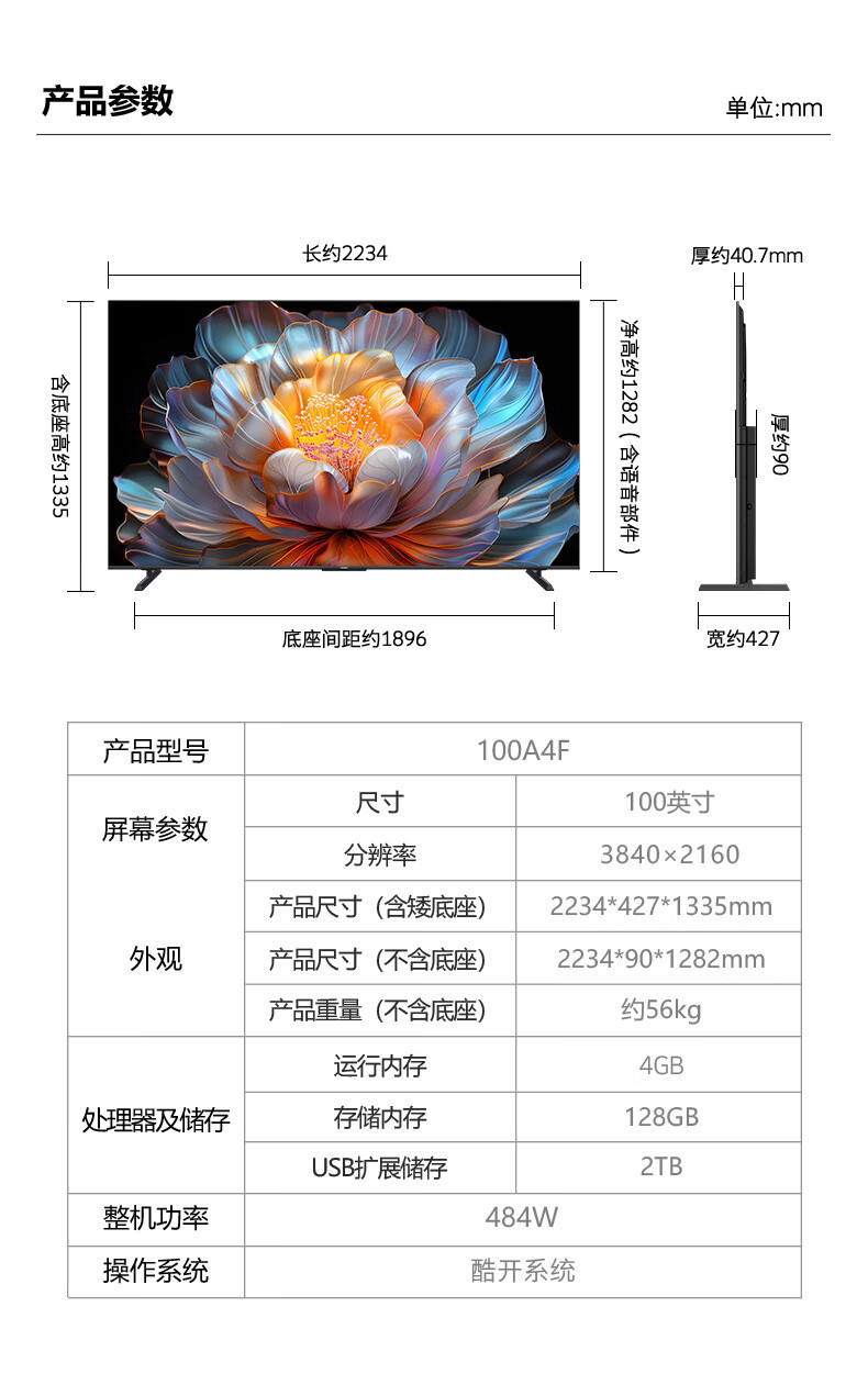 Skyworth TV 100A4F 100 인치 TV 미니 led 거대한 화면 대형 화면 LCD 4K 게임스토어 가기