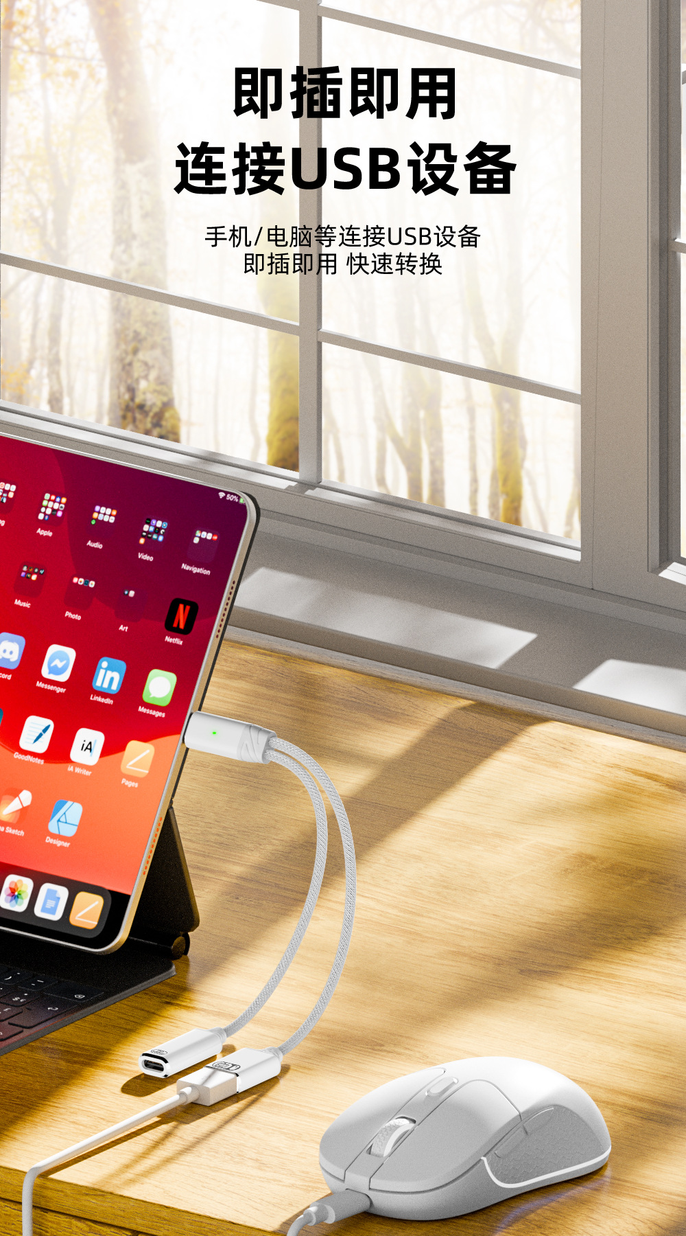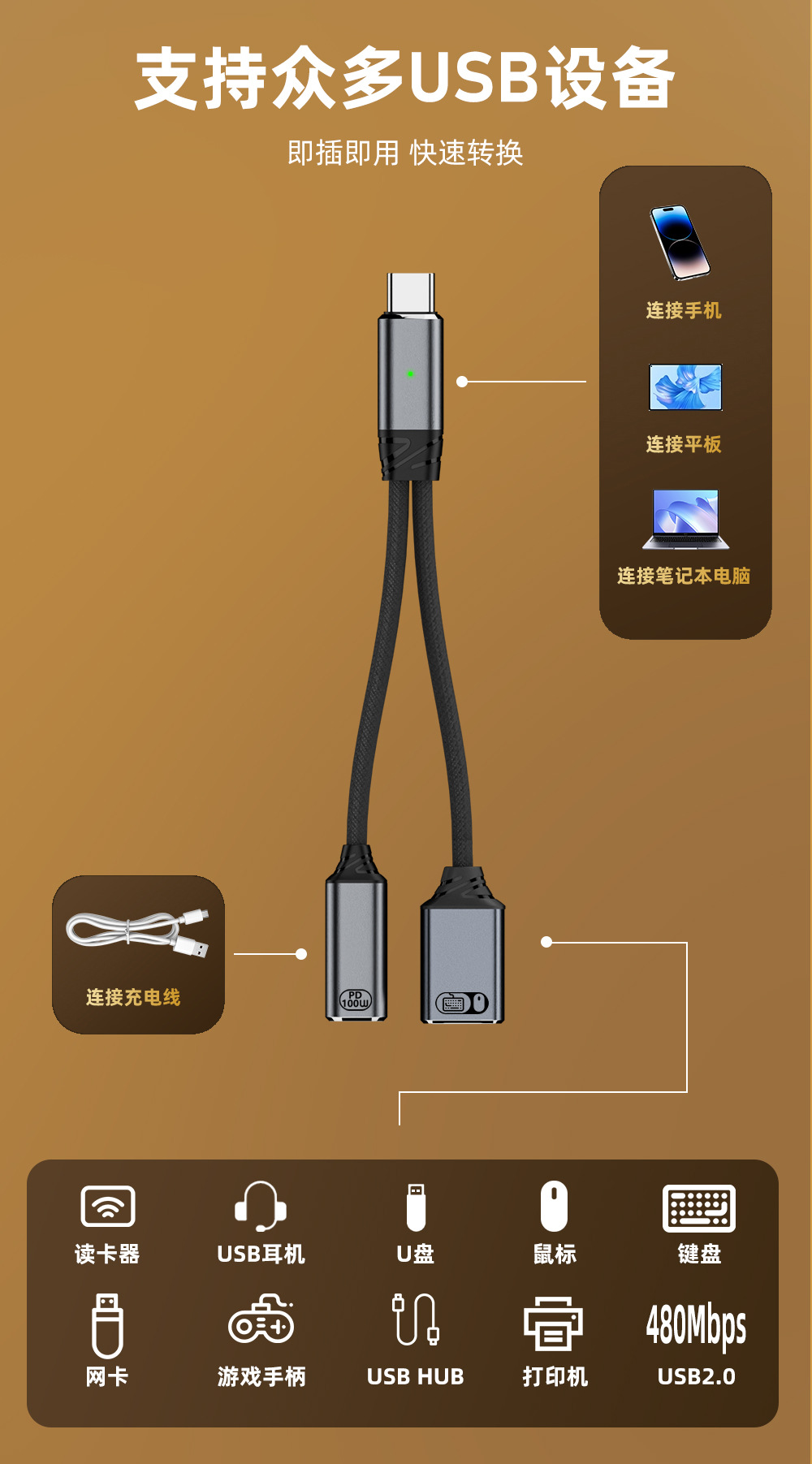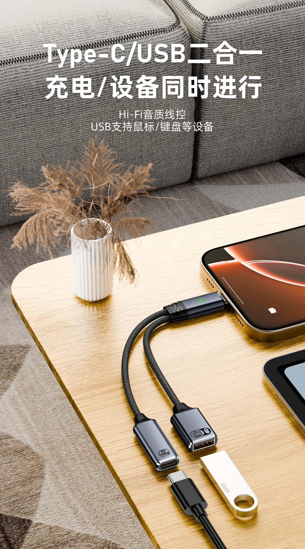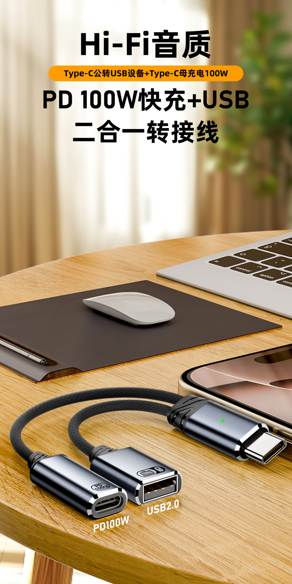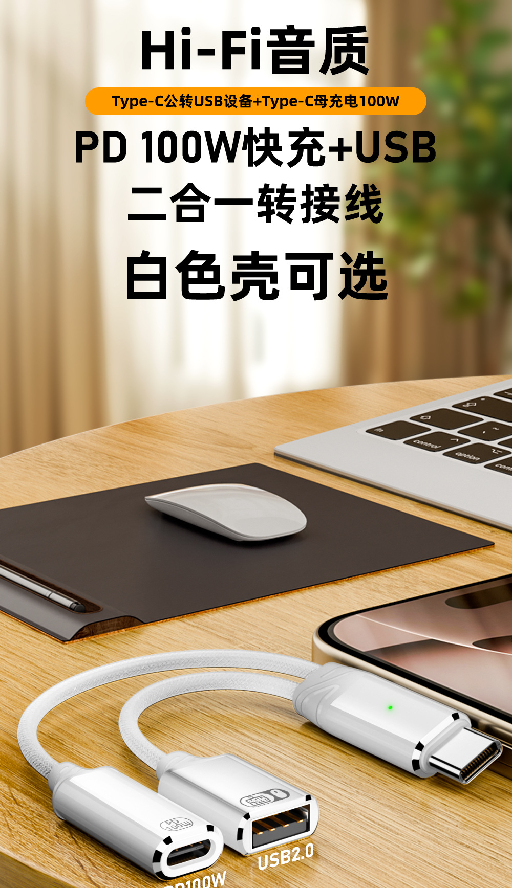 타입 C 1-2 확장 도크 100W 고속 충전 어댑터 케이블 USB OTG 변환기 U 디스크 마우스 연결용스토어 가기