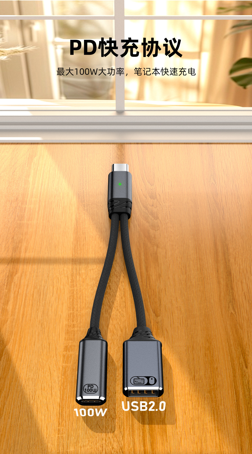 타입 C 1-2 확장 도크 100W 고속 충전 어댑터 케이블 USB OTG 변환기 U 디스크 마우스 연결용