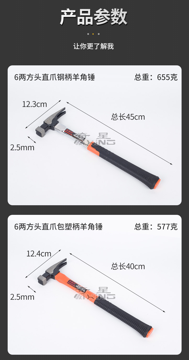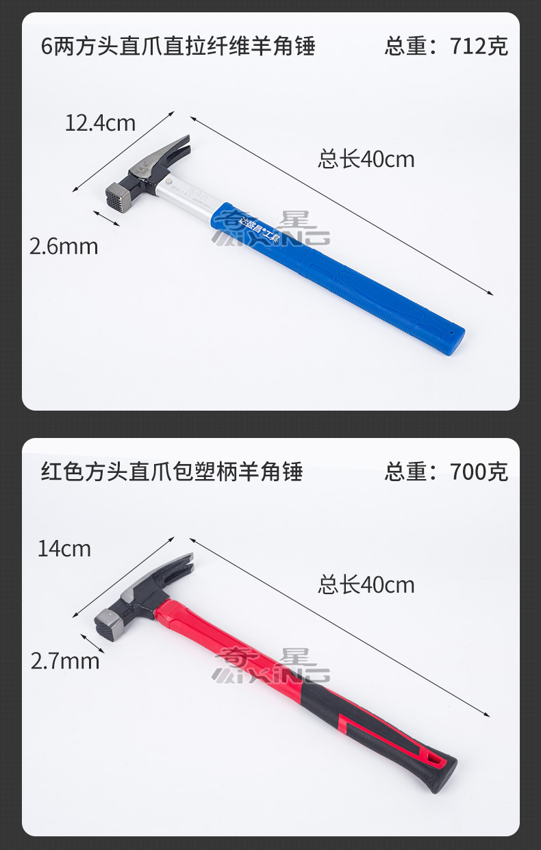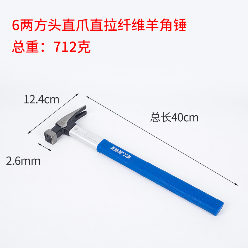 • 0.3kg 스퀘어 헤드 스트레이트 클로 스트레이트 풀 섬유 클로 해머