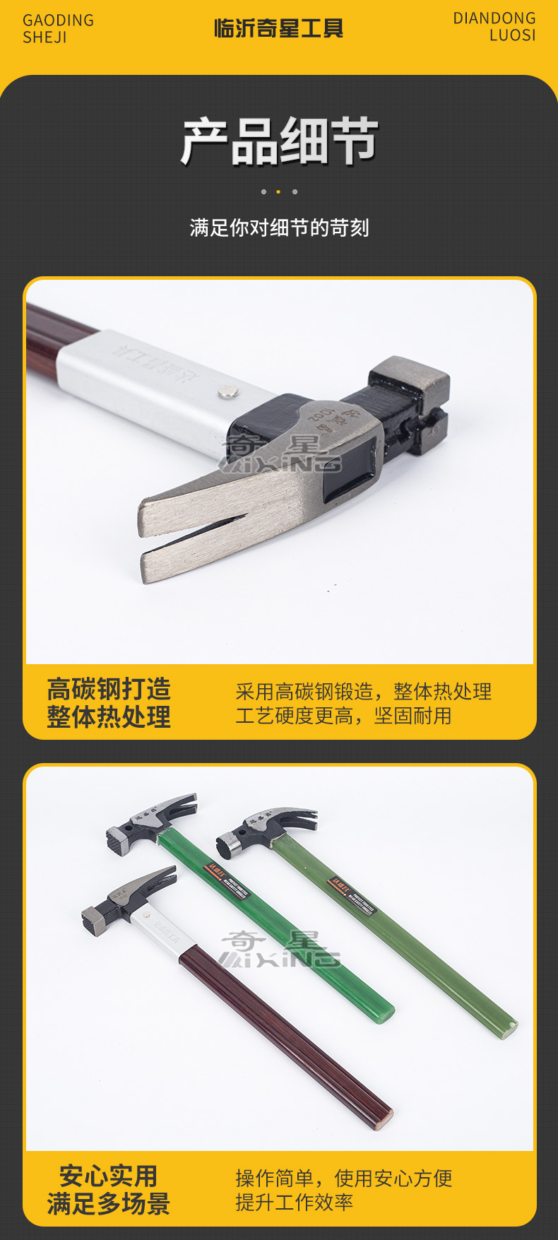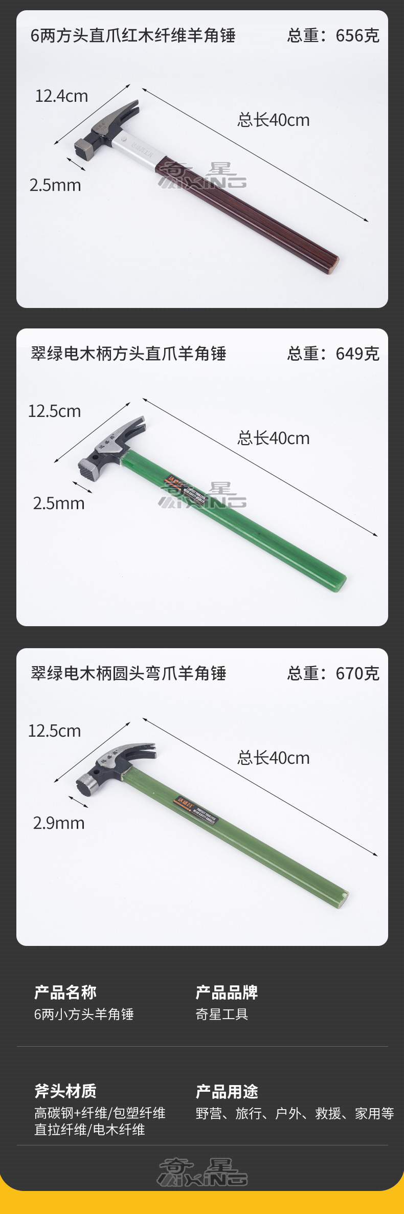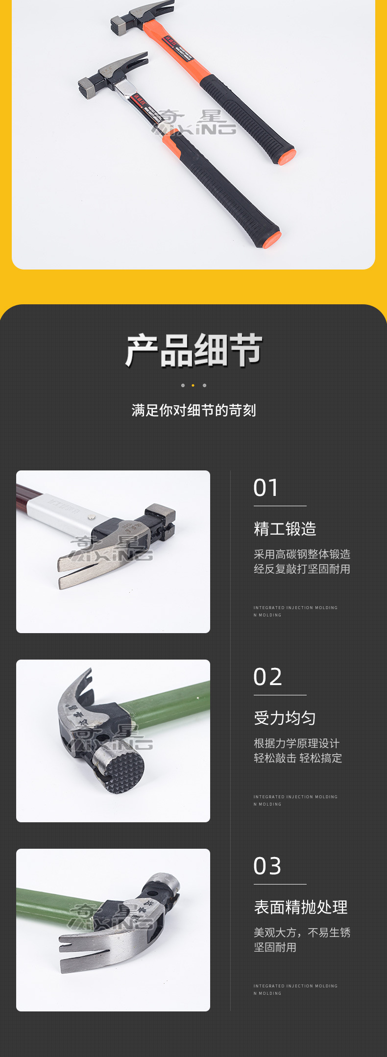 • 0.3kg 스퀘어 헤드 스트레이트 클로 스트레이트 풀 섬유 클로 해머