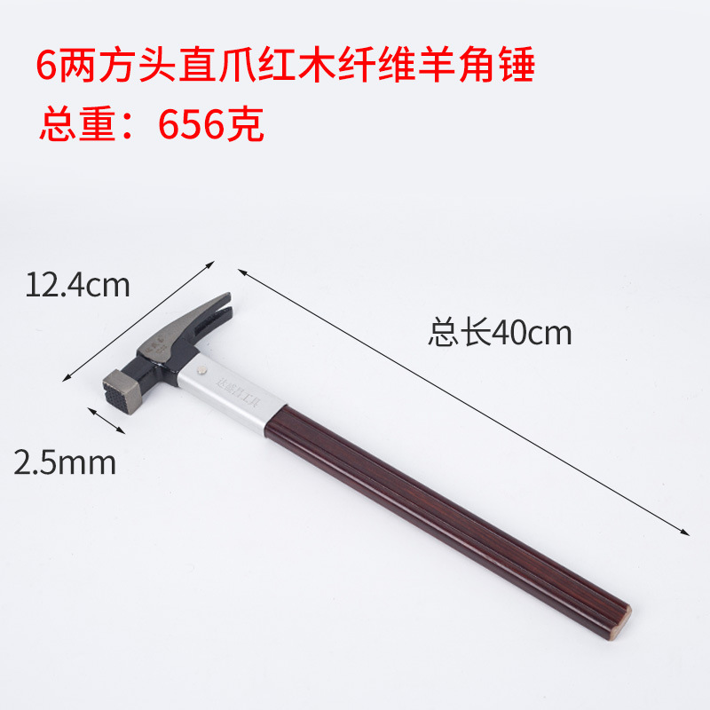 • 0.3kg 스퀘어 헤드 스트레이트 클로 로즈우드 섬유 클로 해머