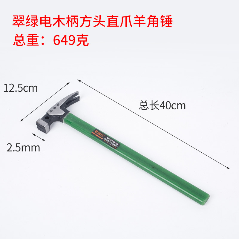 • 에메랄드 그린 베이클라이트 손잡이 사각 헤드 스트레이트 클로 클로 해머
