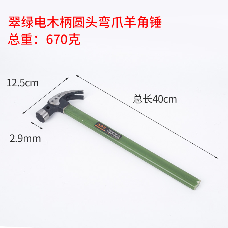• 에메랄드 그린 베이클라이트 손잡이 둥근 머리 곡선 클로 해머