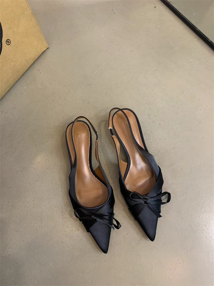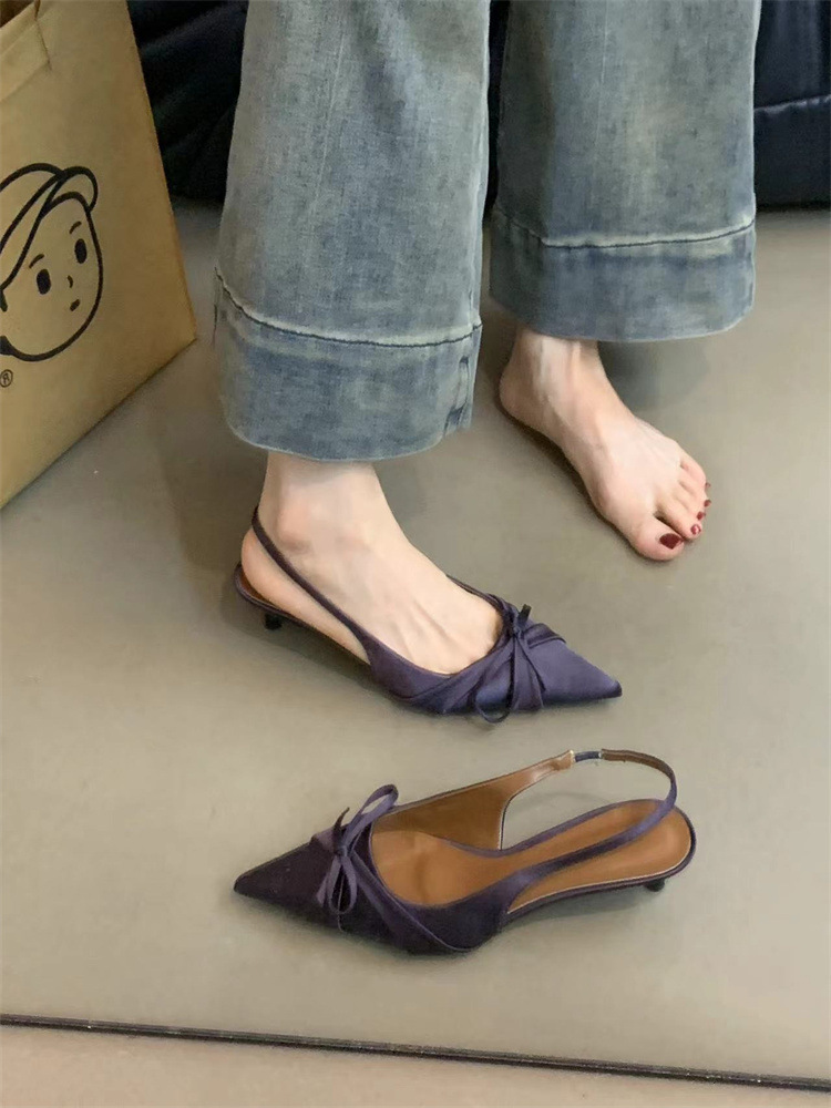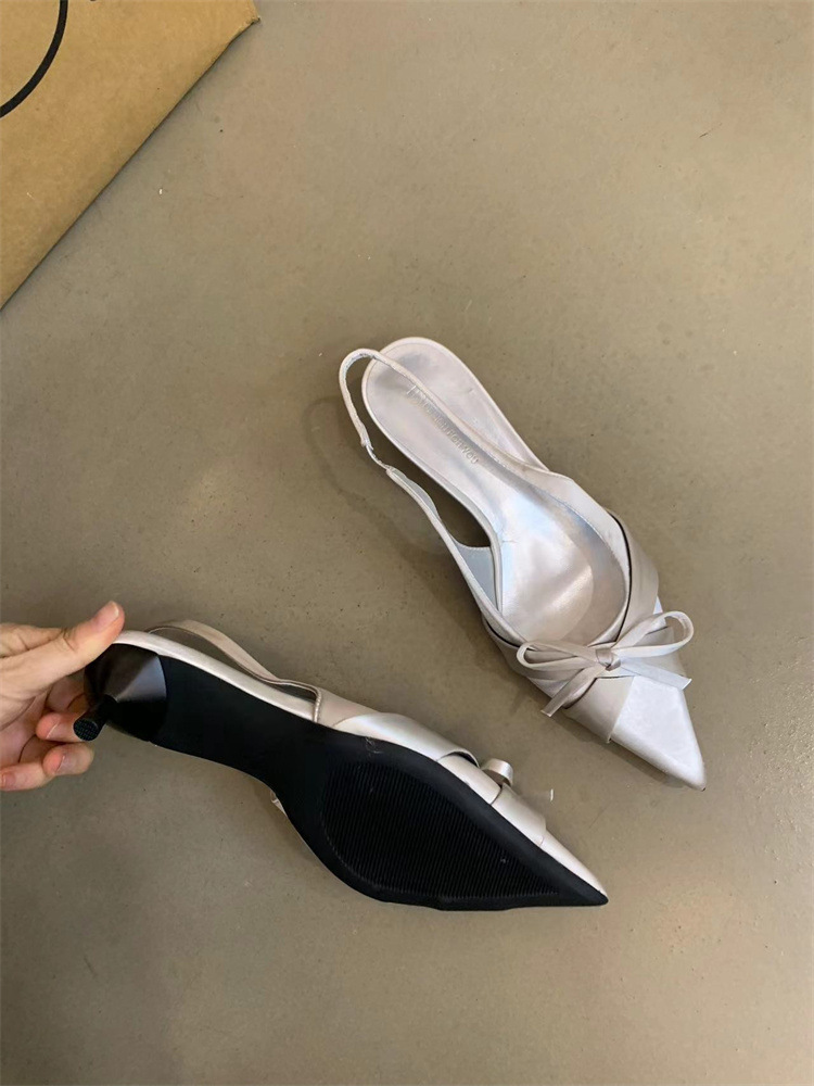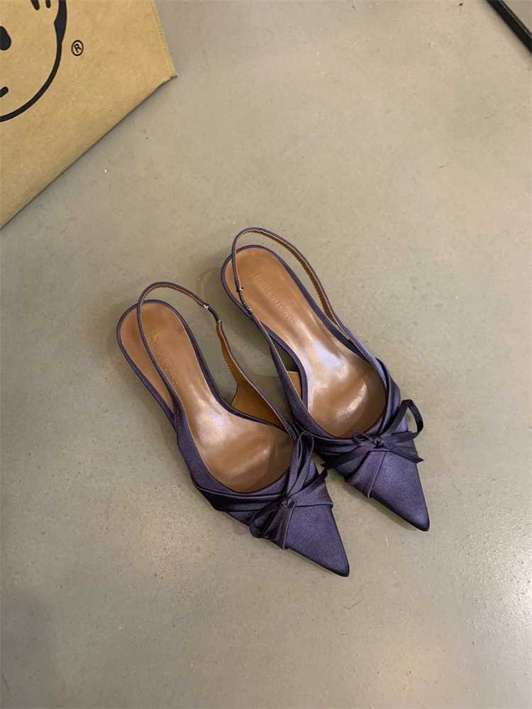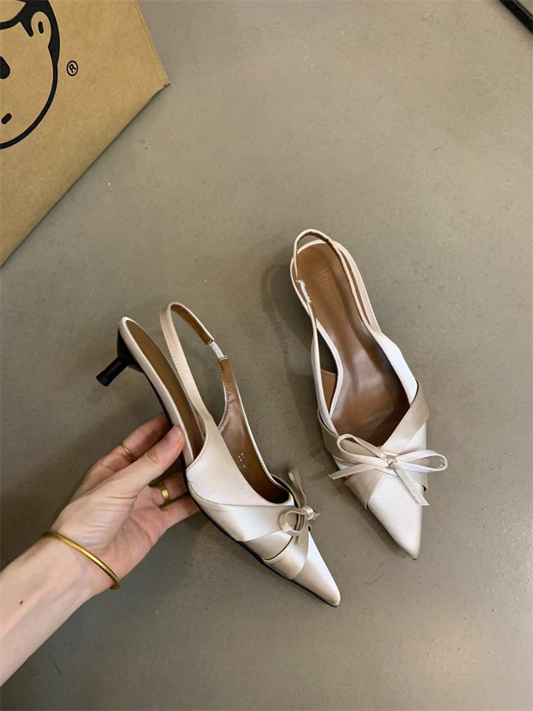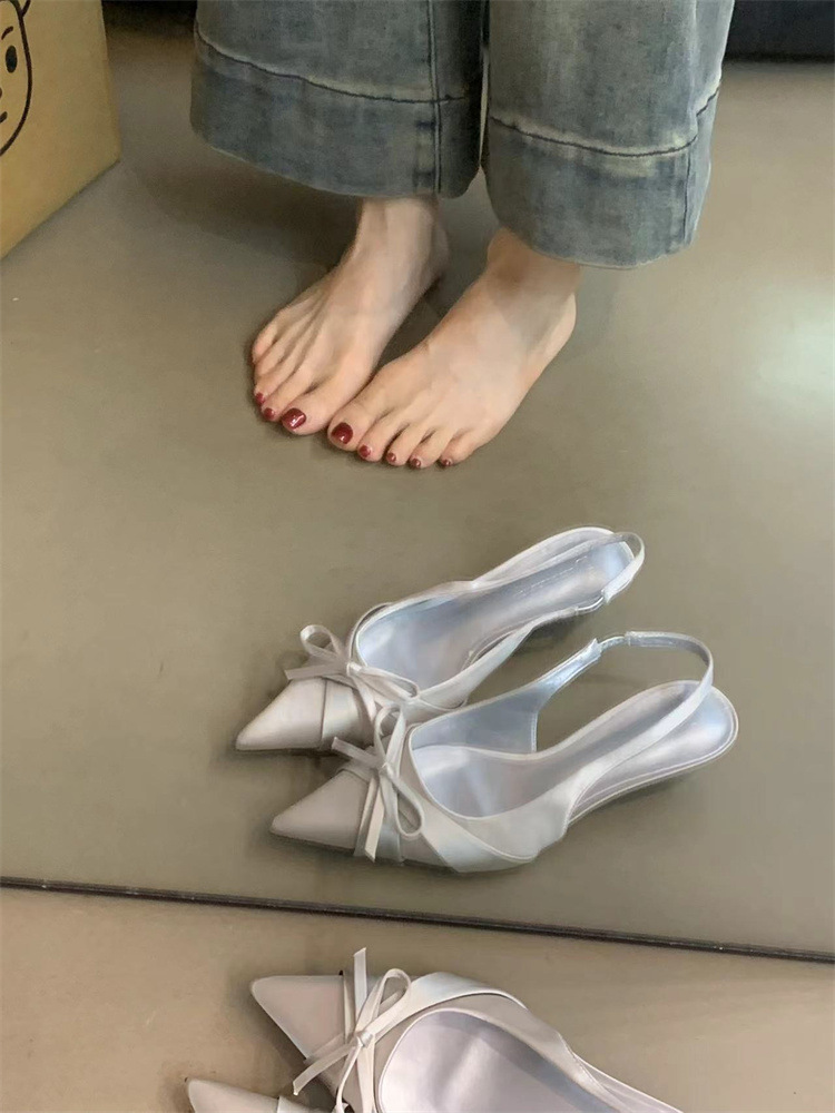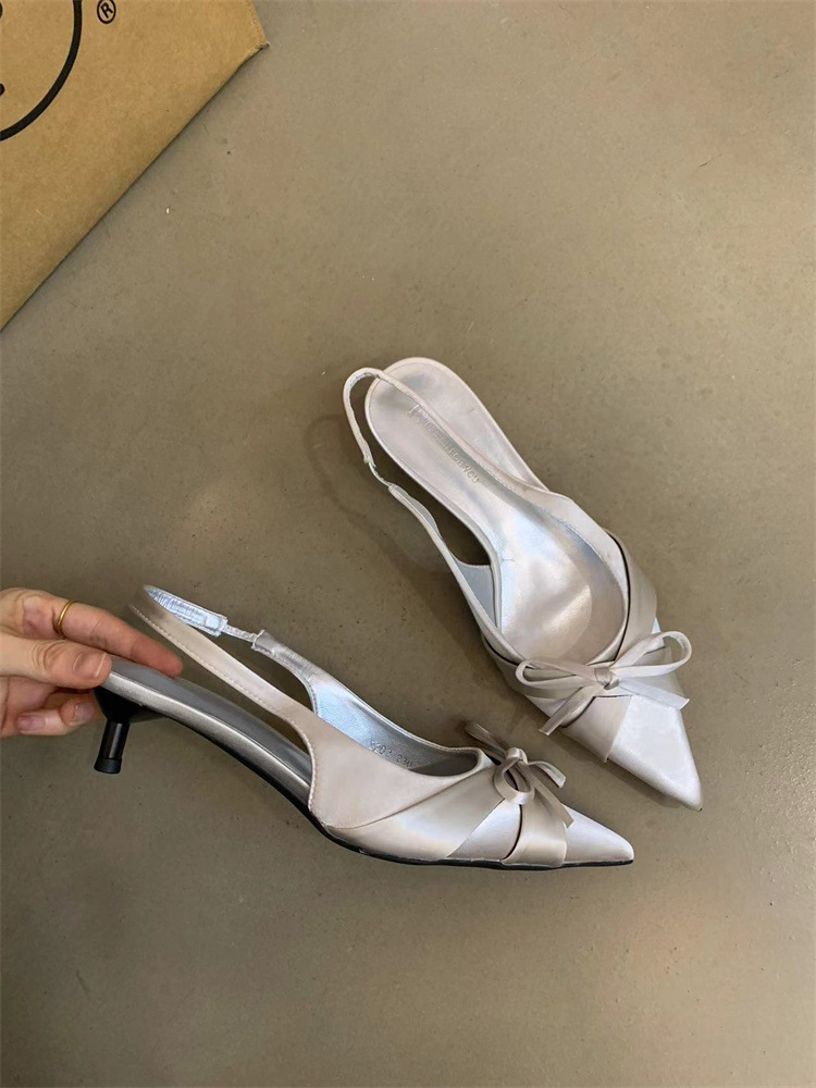 니치 하이힐 여성화 2024 봄 가을 새로운 스타일 프렌치 스타일 우아한 리본 뾰족한 발가락 얕은 굽 샌들