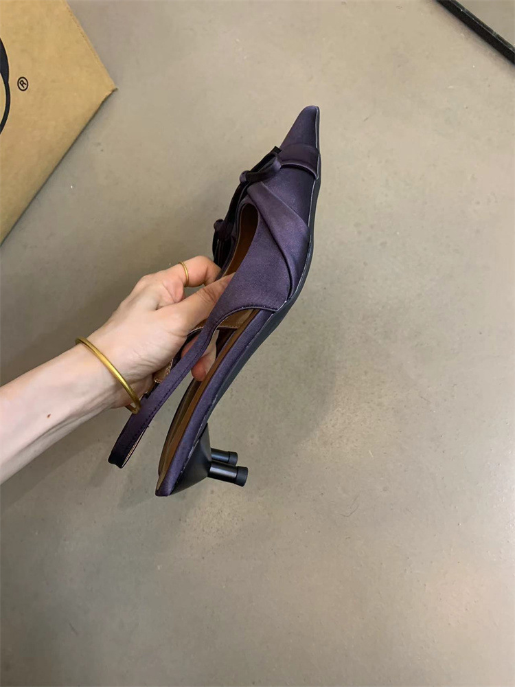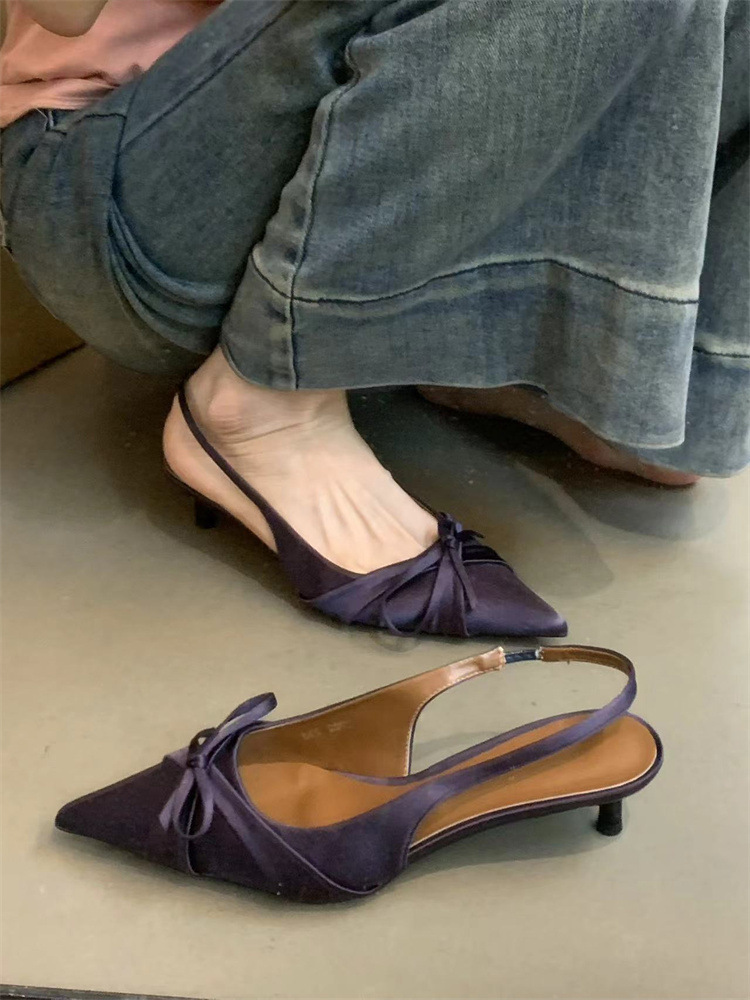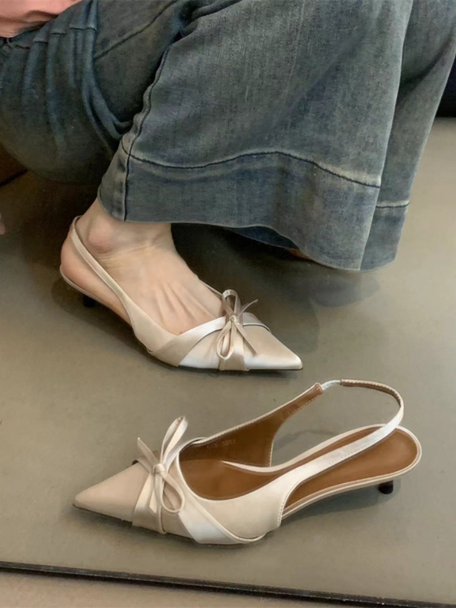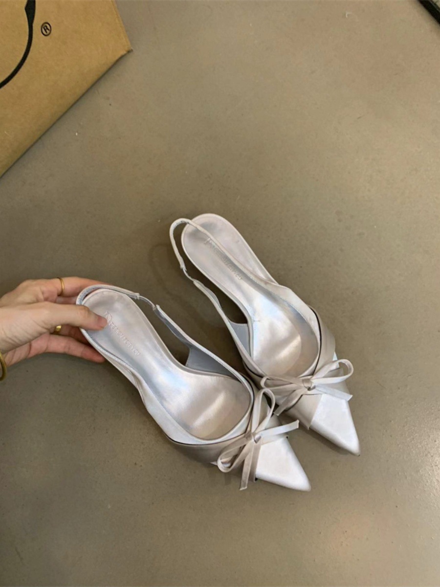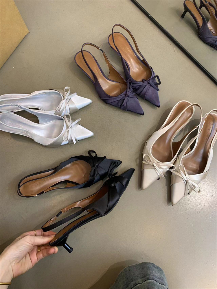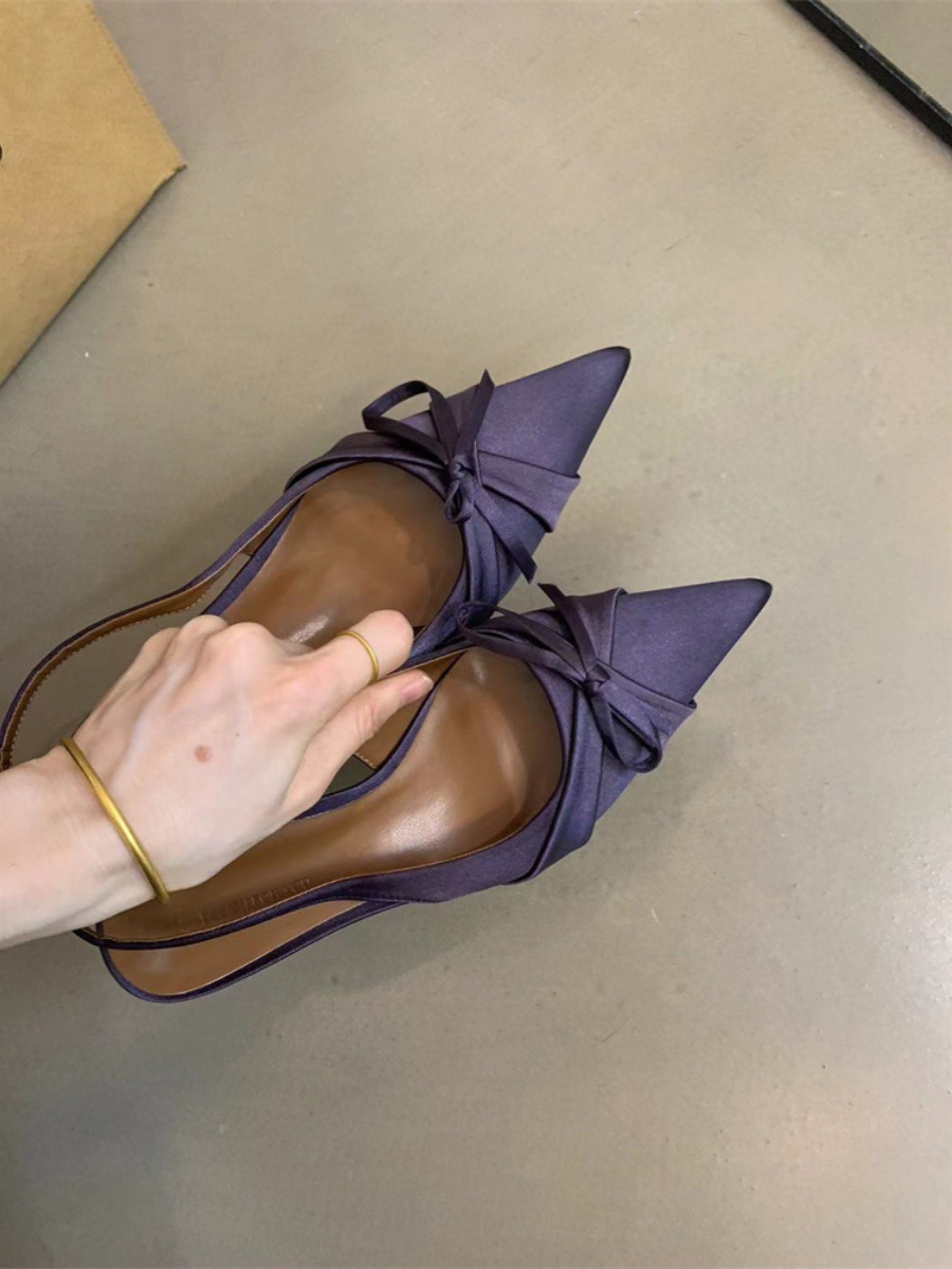 니치 하이힐 여성화 2024 봄 가을 새로운 스타일 프렌치 스타일 우아한 리본 뾰족한 발가락 얕은 굽 샌들