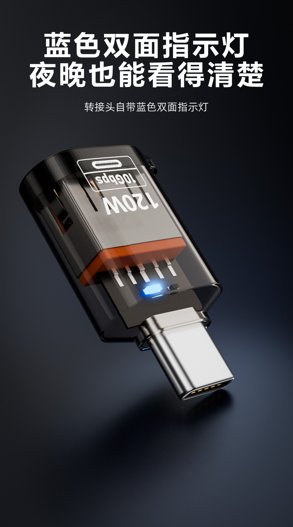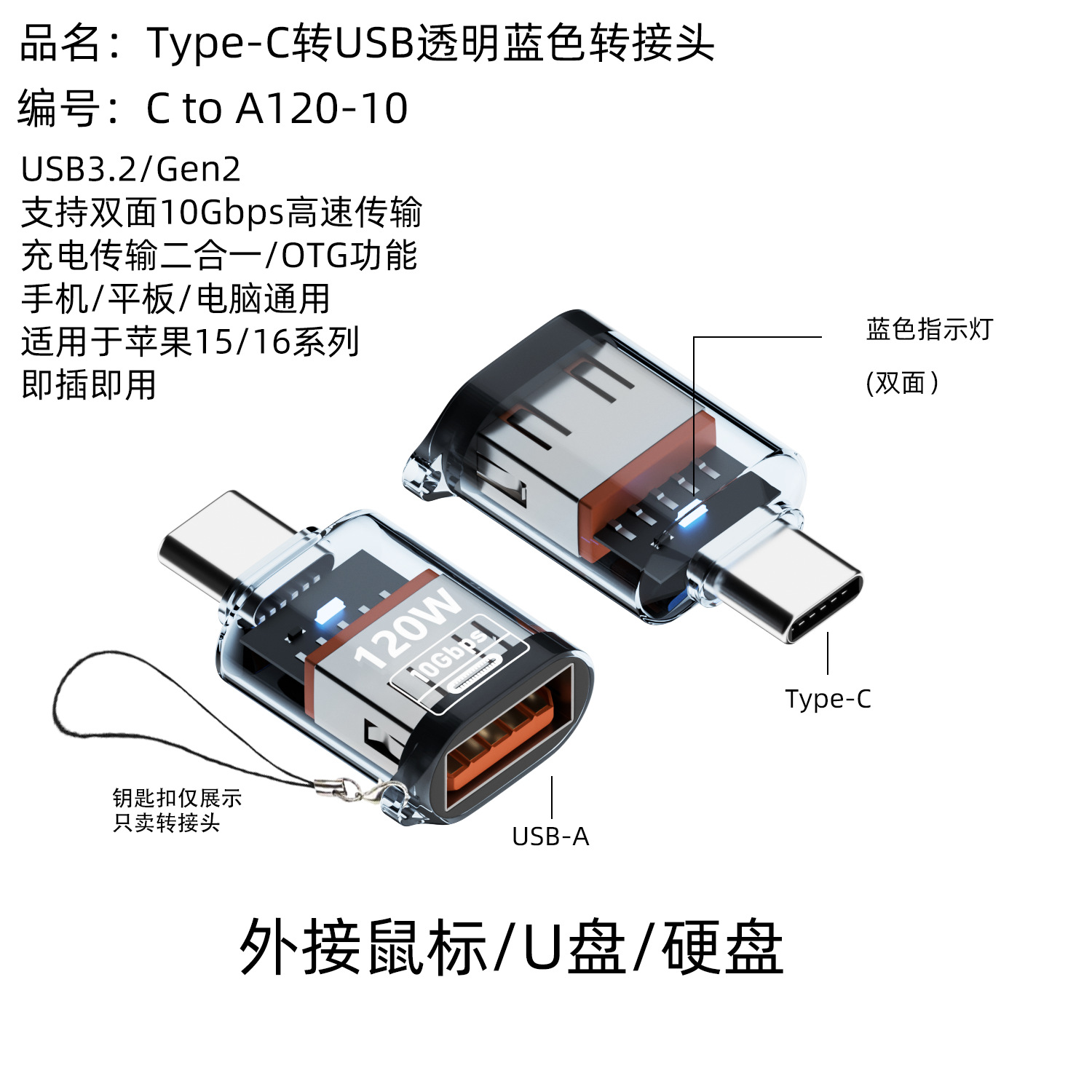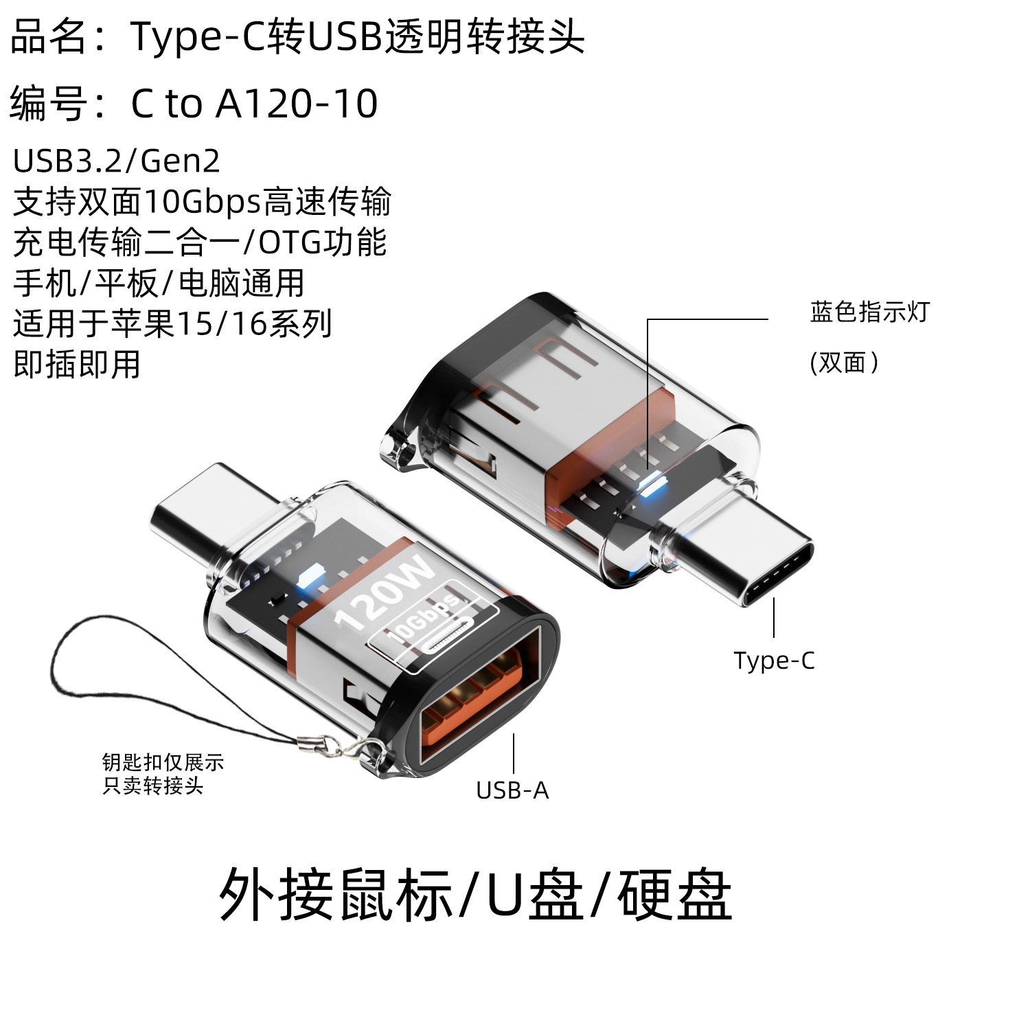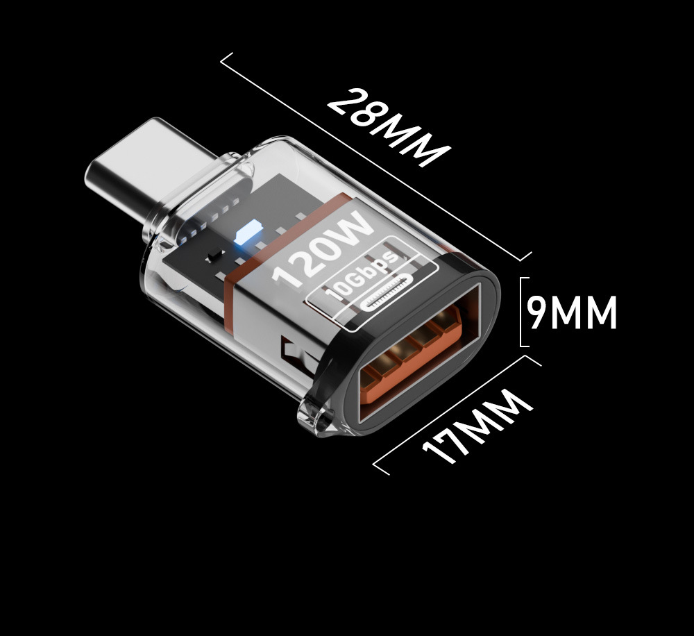 USB 어댑터 유형-c 혁명 빛 OTG 어댑터 gen2 어댑터가있는 여성 10G120W 투명 쉘스토어 가기