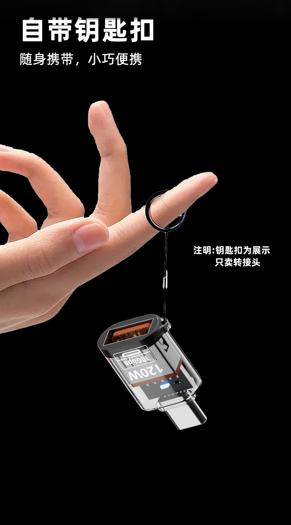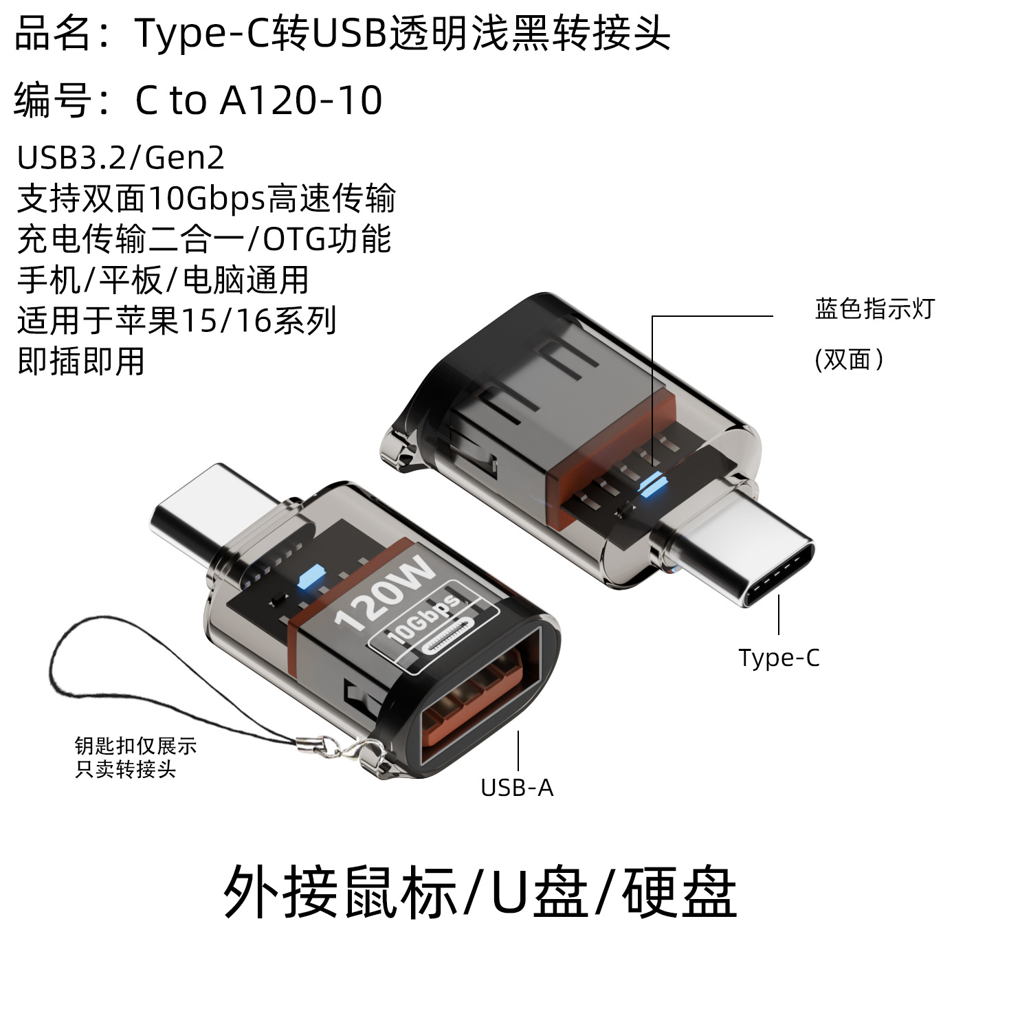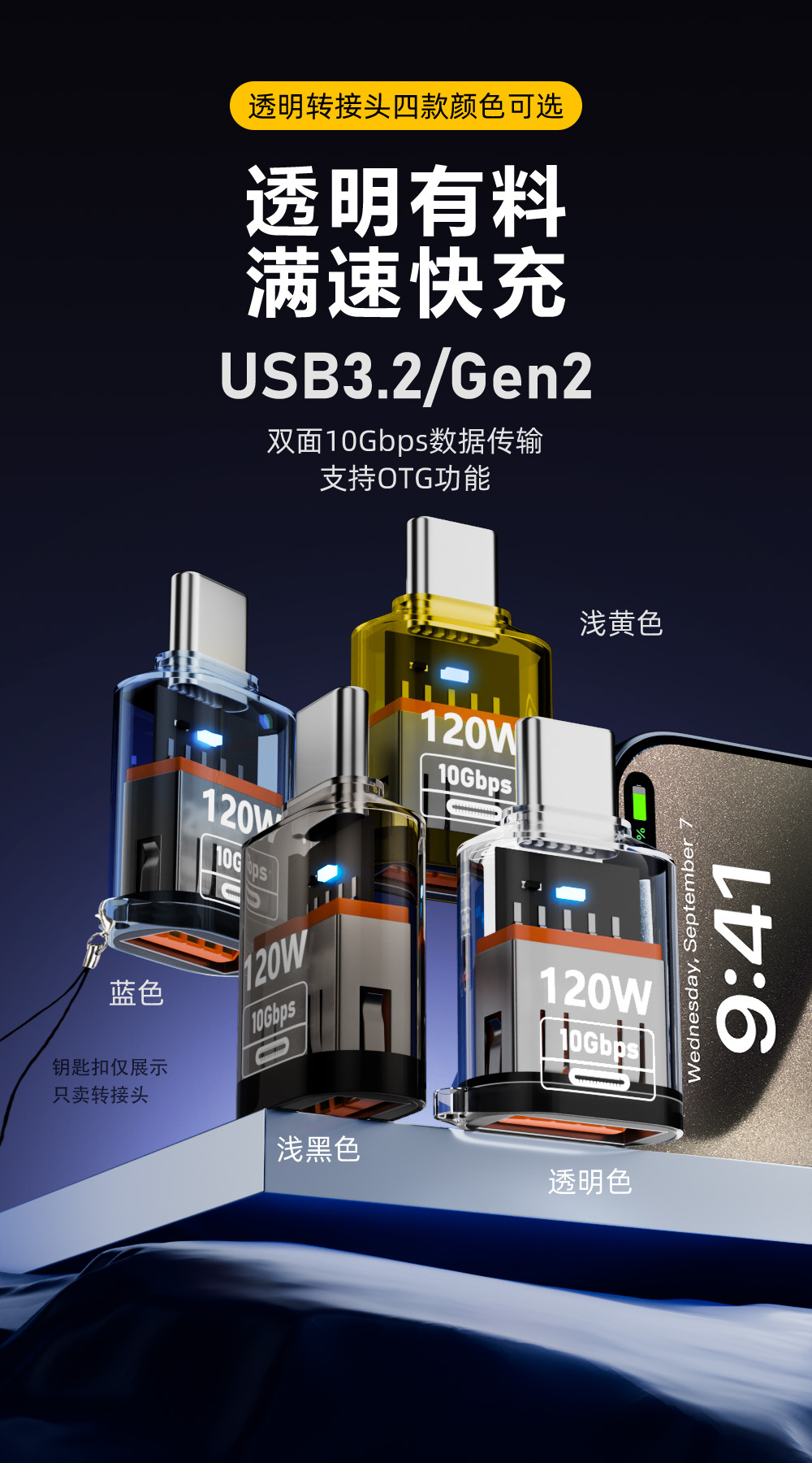 USB 어댑터 유형-c 혁명 빛 OTG 어댑터 gen2 어댑터가있는 여성 10G120W 투명 쉘스토어 가기