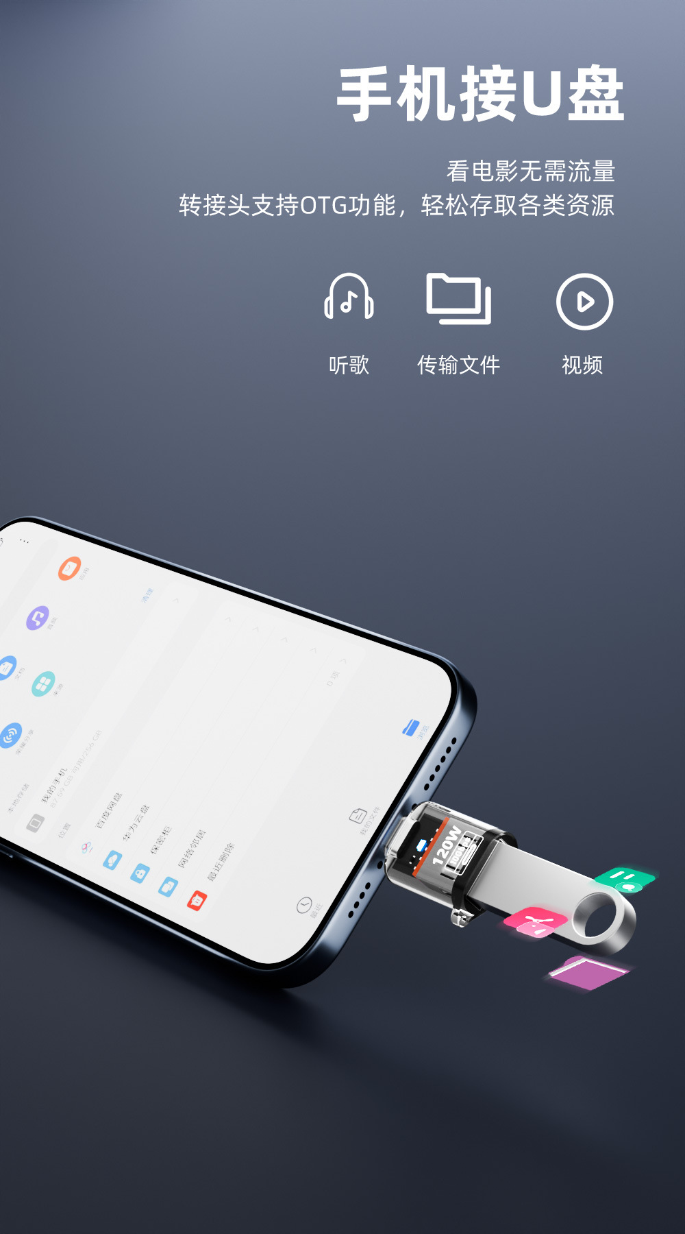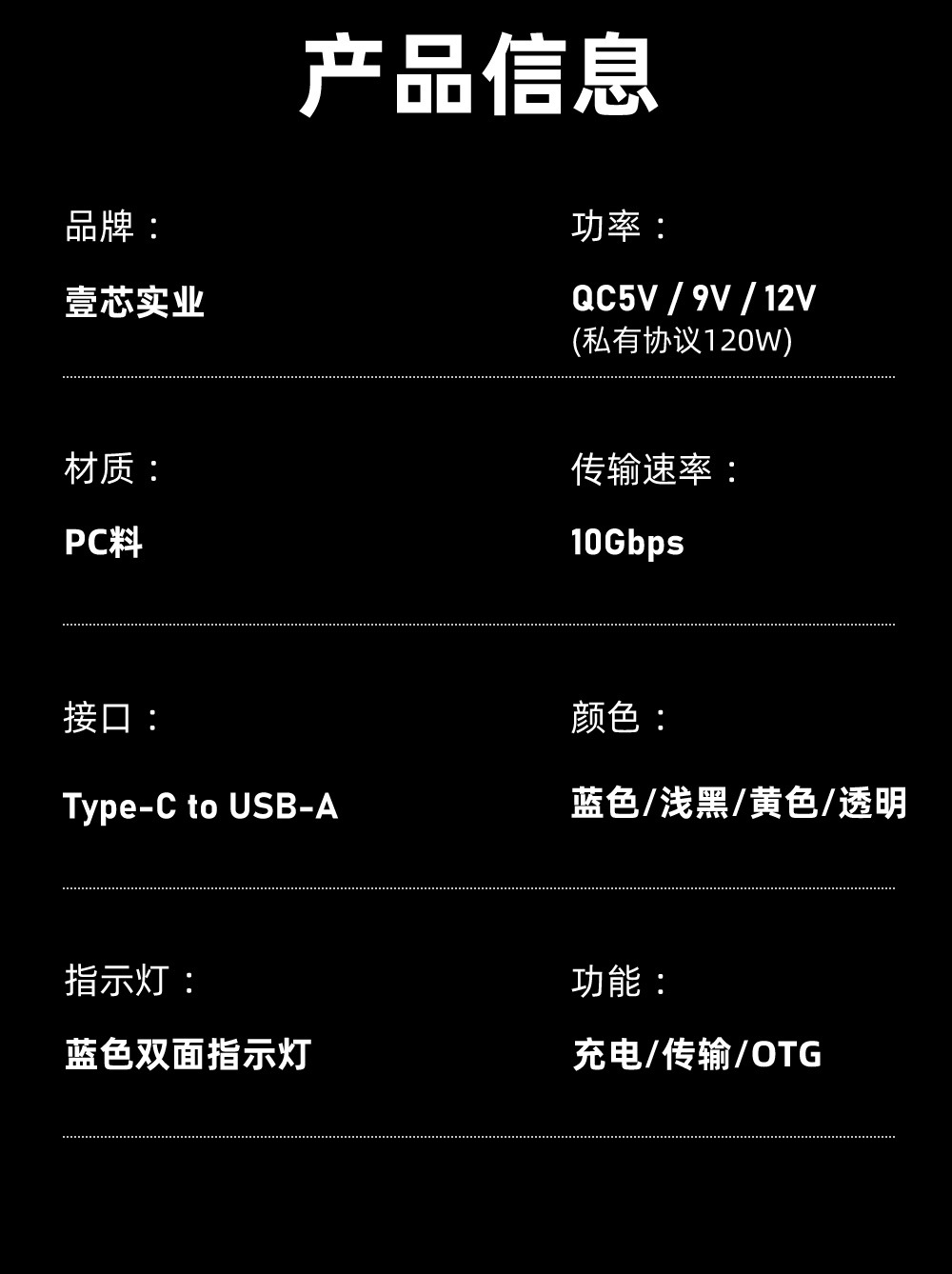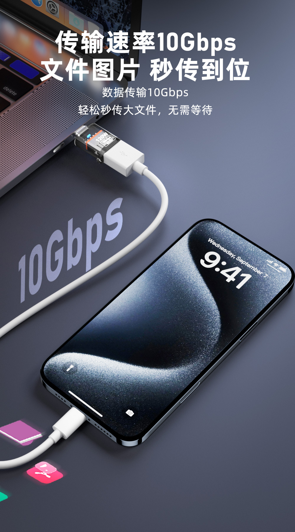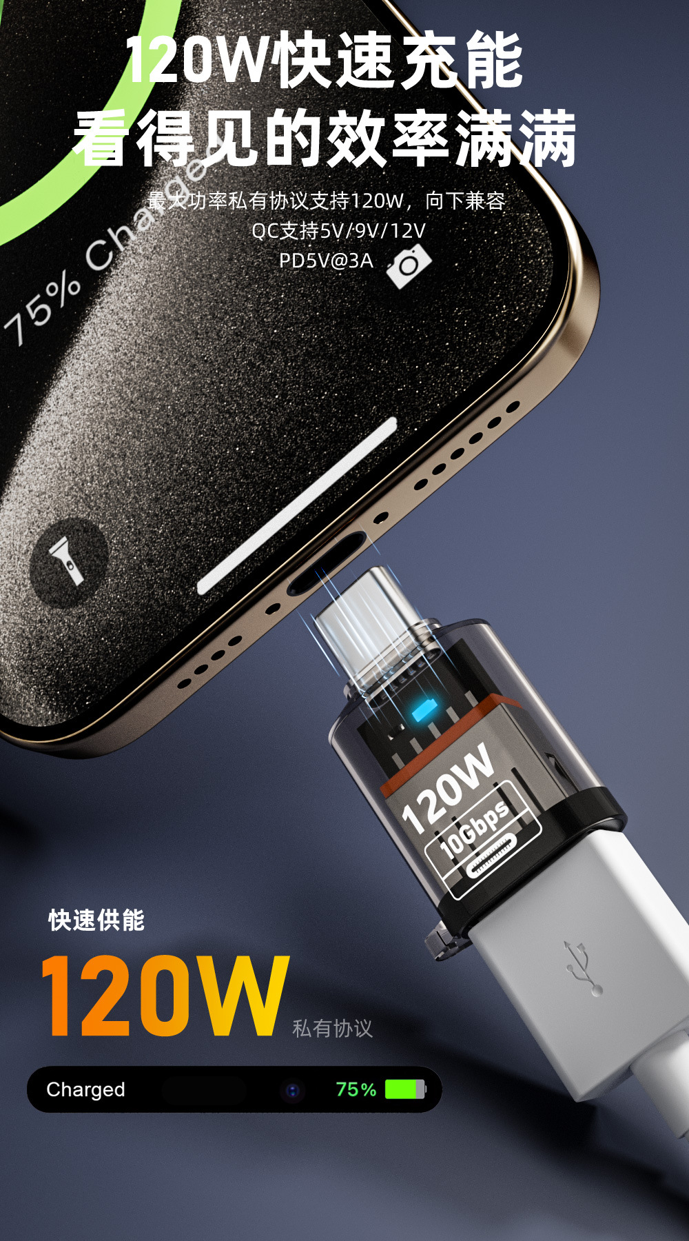 USB 어댑터 유형-c 혁명 빛 OTG 어댑터 gen2 어댑터가있는 여성 10G120W 투명 쉘스토어 가기