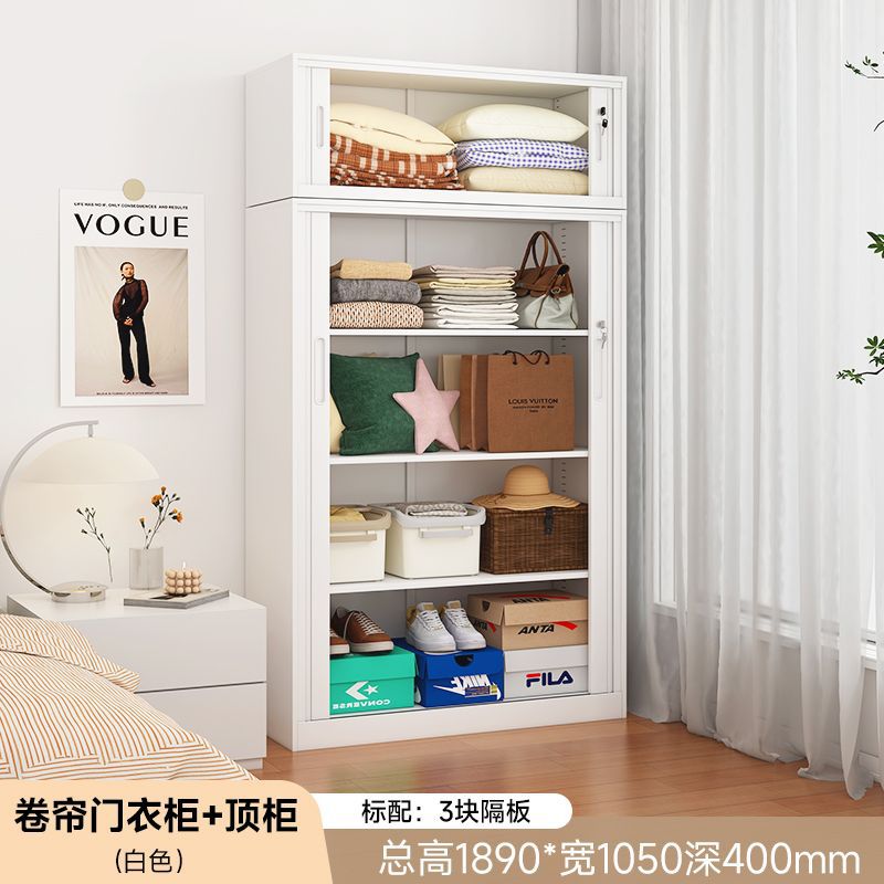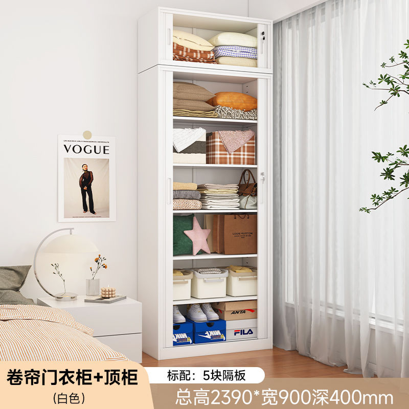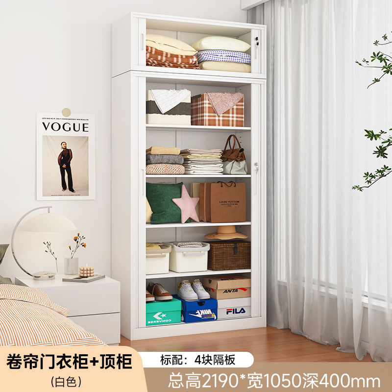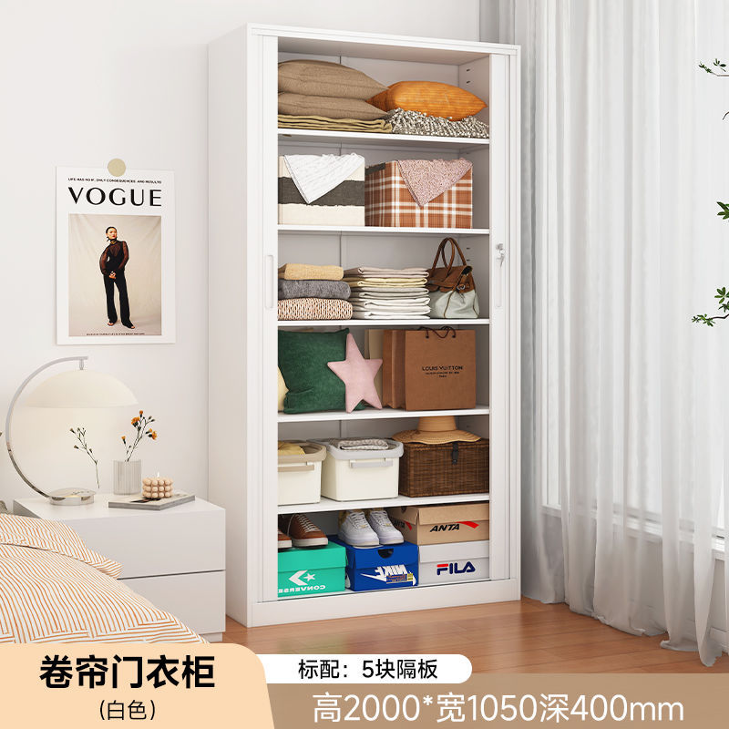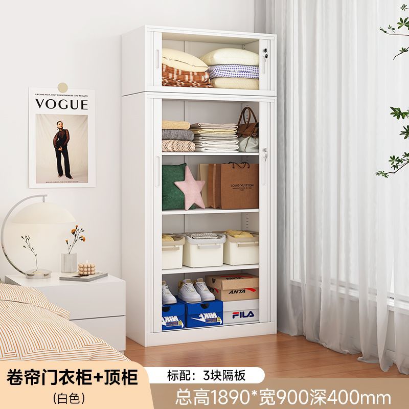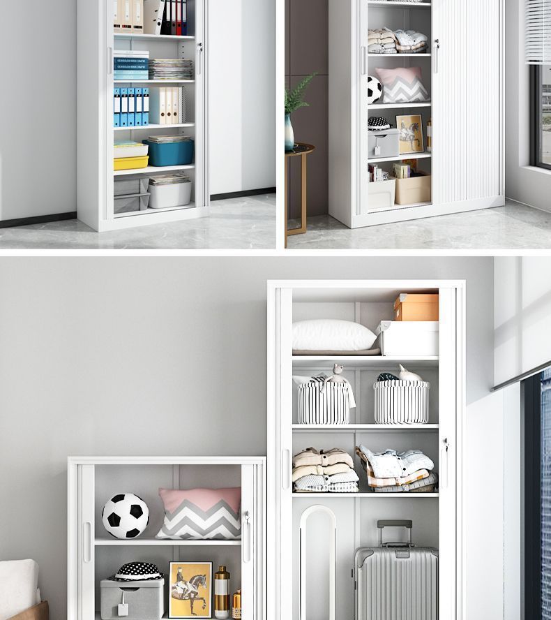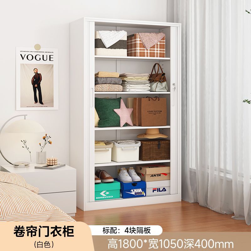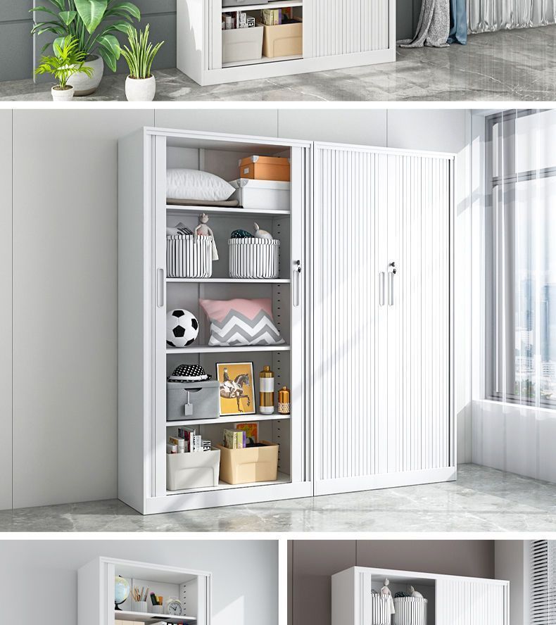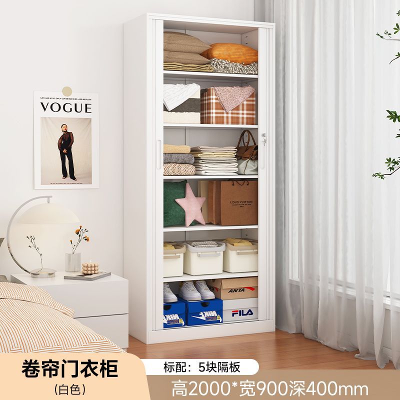 가정용 롤링 도어 스토리지 캐비닛 선 스크린 및 방습 철 옷장 대용량 공간 절약 푸시 풀 롤링 도어 스토리지 캐비닛