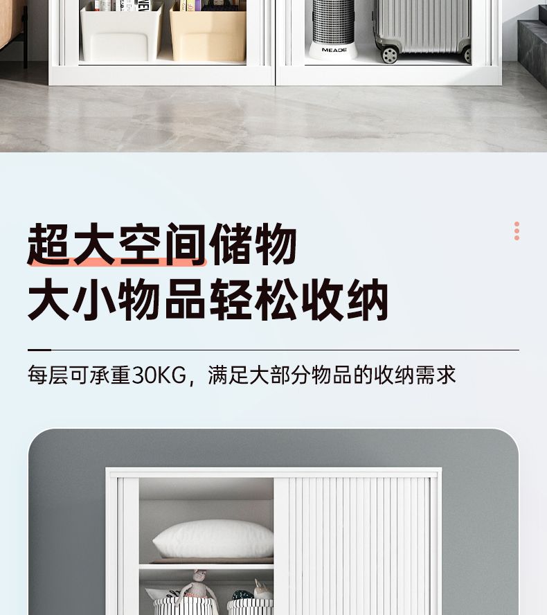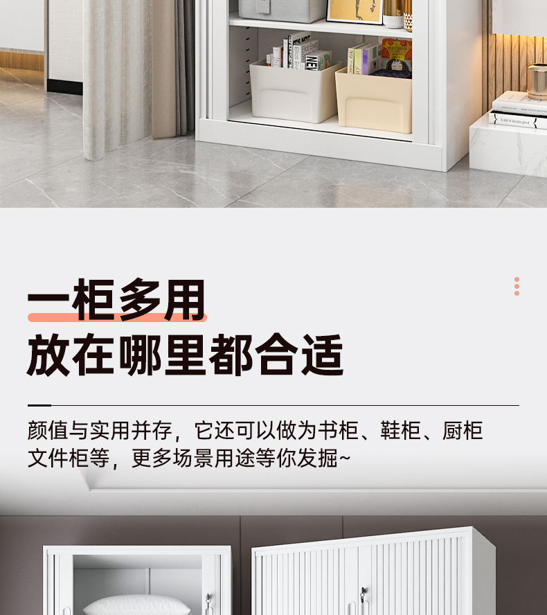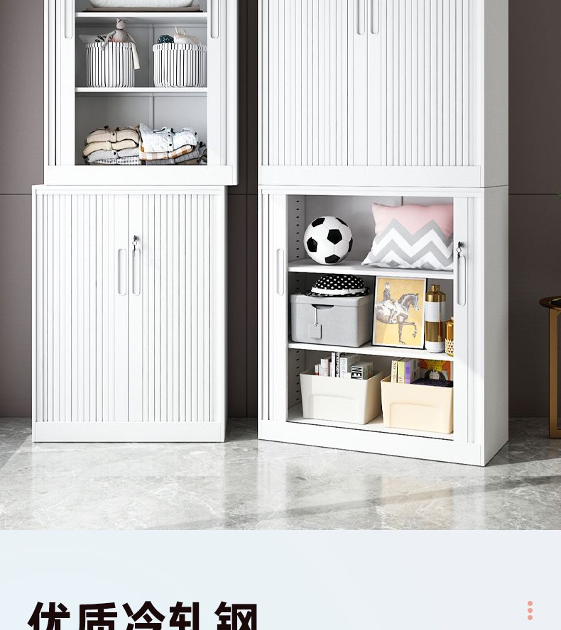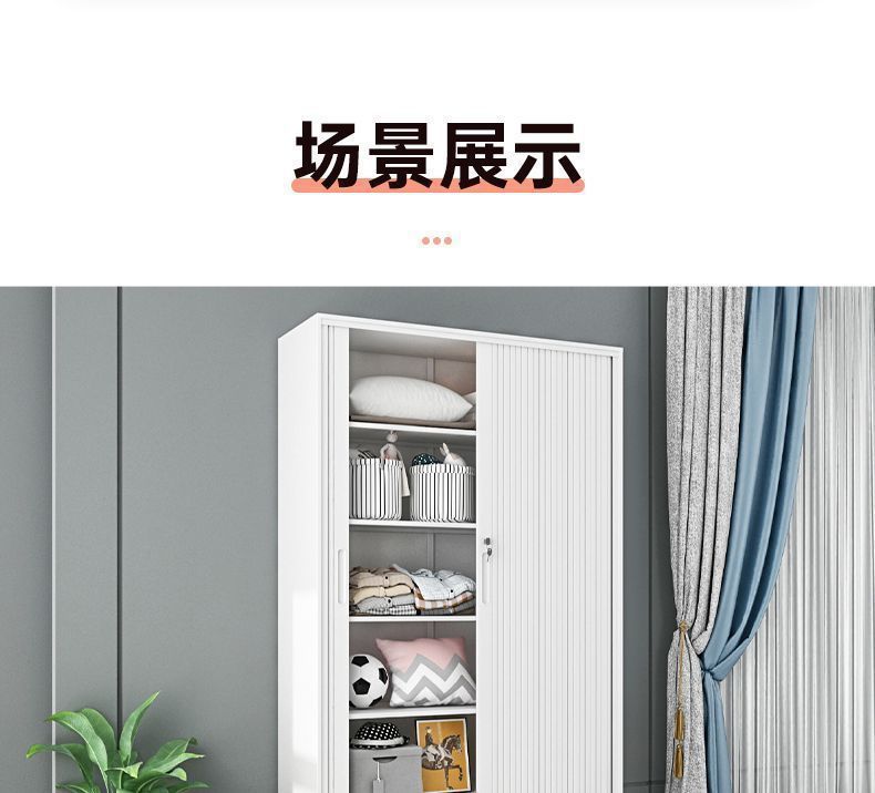 가정용 롤링 도어 스토리지 캐비닛 선 스크린 및 방습 철 옷장 대용량 공간 절약 푸시 풀 롤링 도어 스토리지 캐비닛스토어 가기